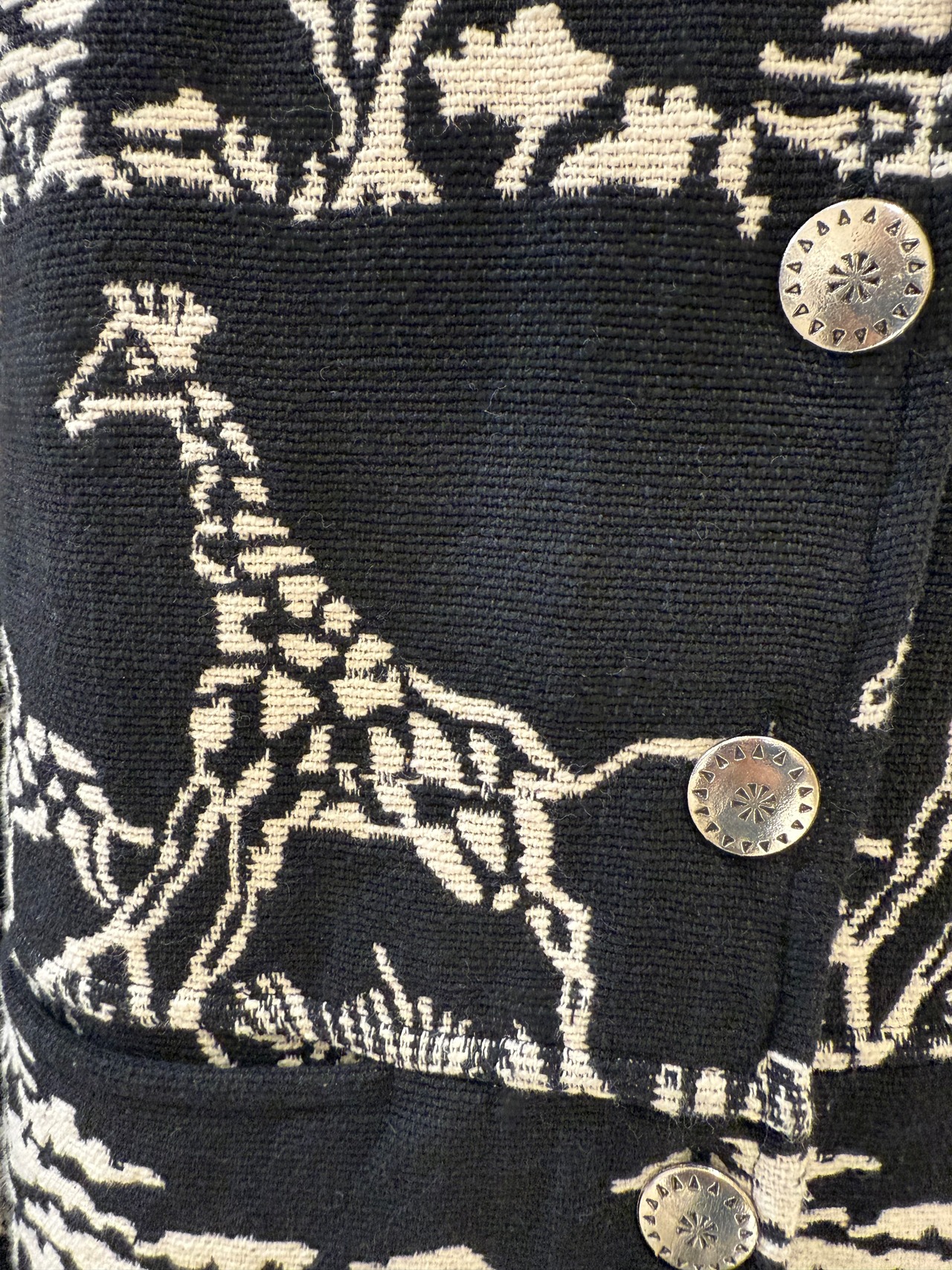 ざっくりとしたタペストリー生地にはキリンや象の親子がデザインされ、少しホッコリとした気分になれそうです。