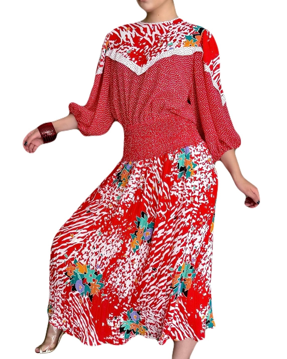 Susan Freis 朱赤プリントワンピース