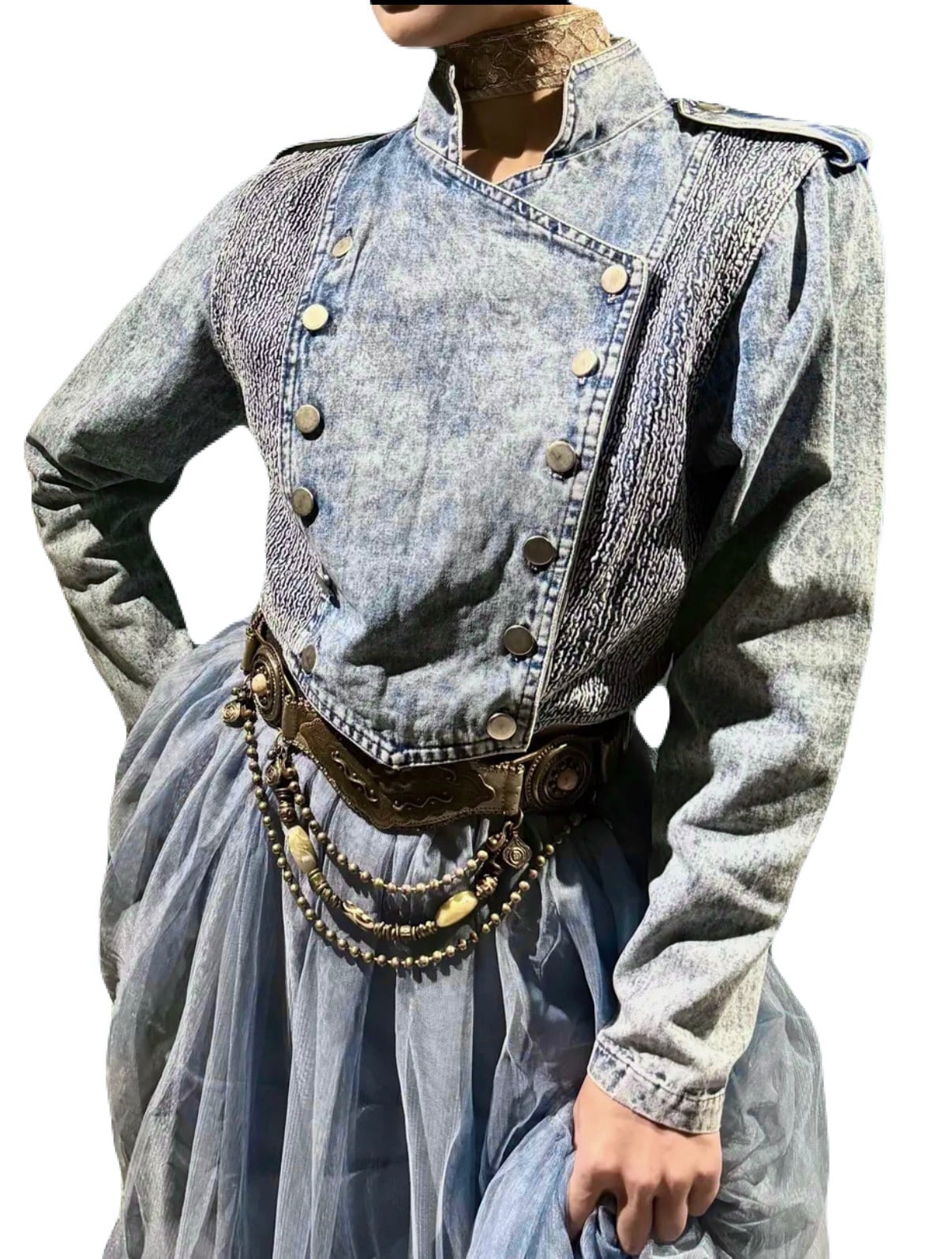 ナポレオンジャケットからインスパイアされた凛々しさがたまらないケミカルデニムジャケット。