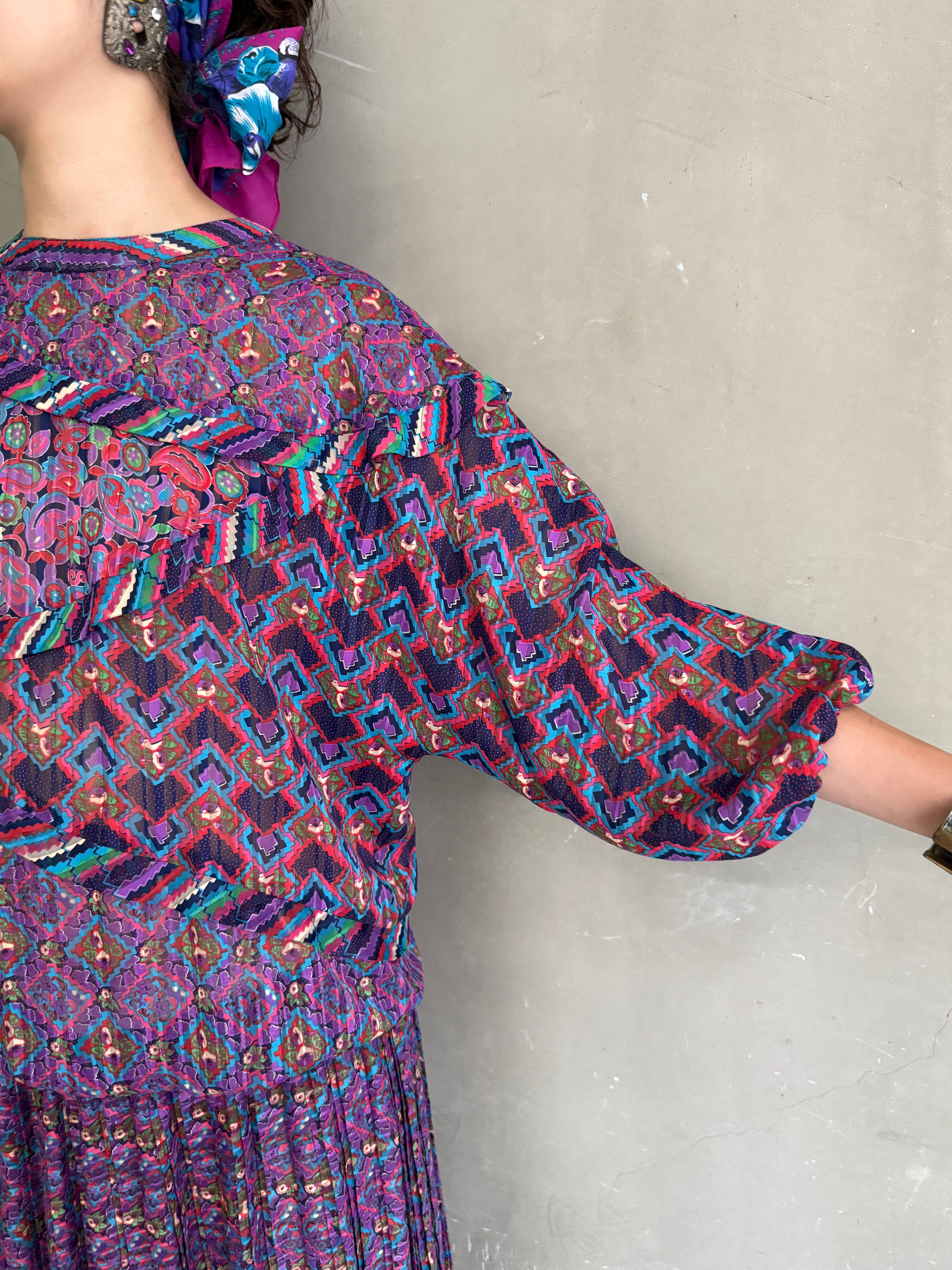 Dianeらしさのある色彩。80’sな色柄ですが、シアーな生地により、透明感がプラスされたワンピース。