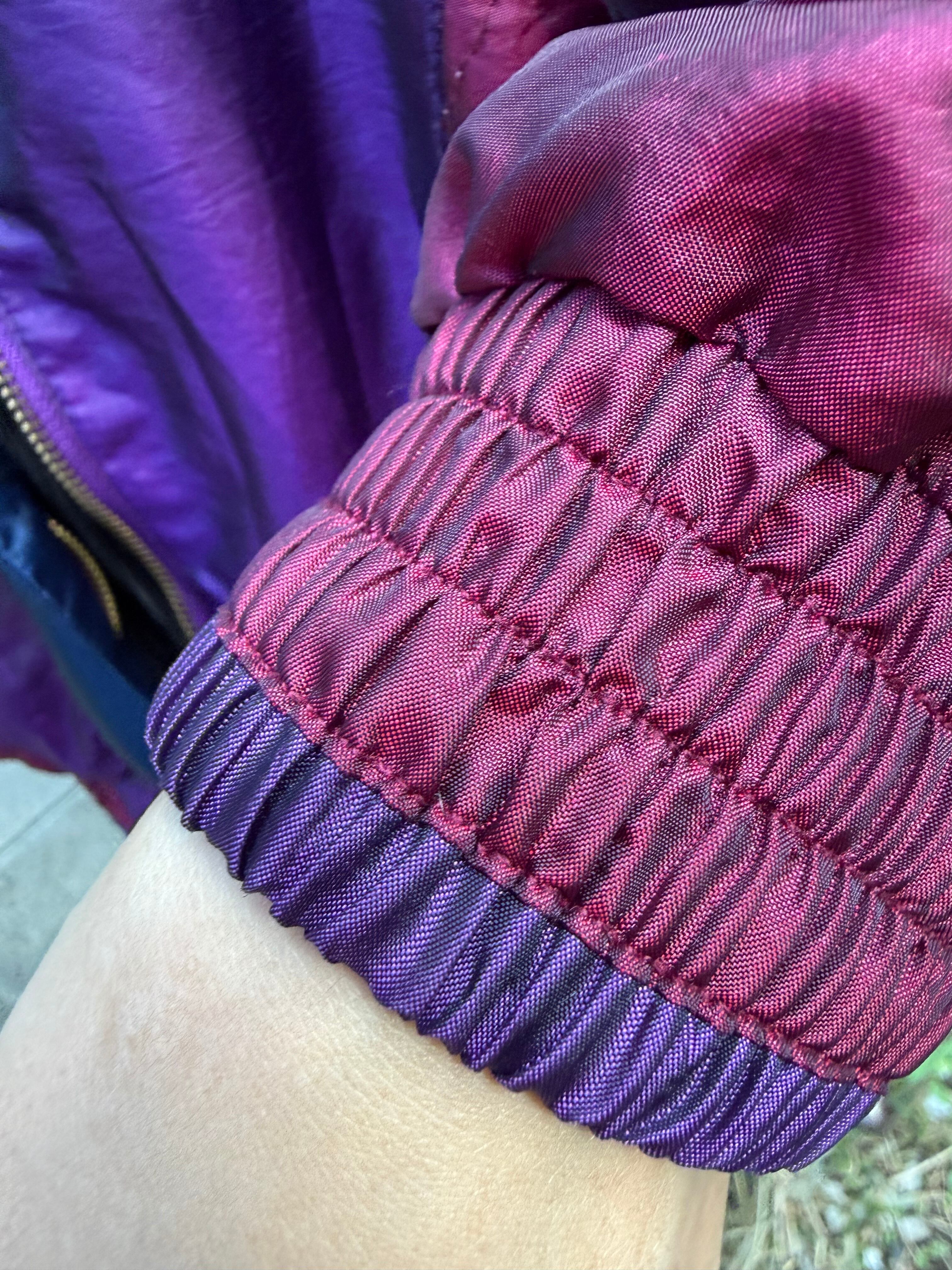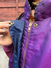 80’sならではの素敵なパワフルカラーに、両肩のベロア。ベロアにはボタニカルがプリントされ、ロマンティックさが素敵にミックスしたヴィンテージブルゾンです。