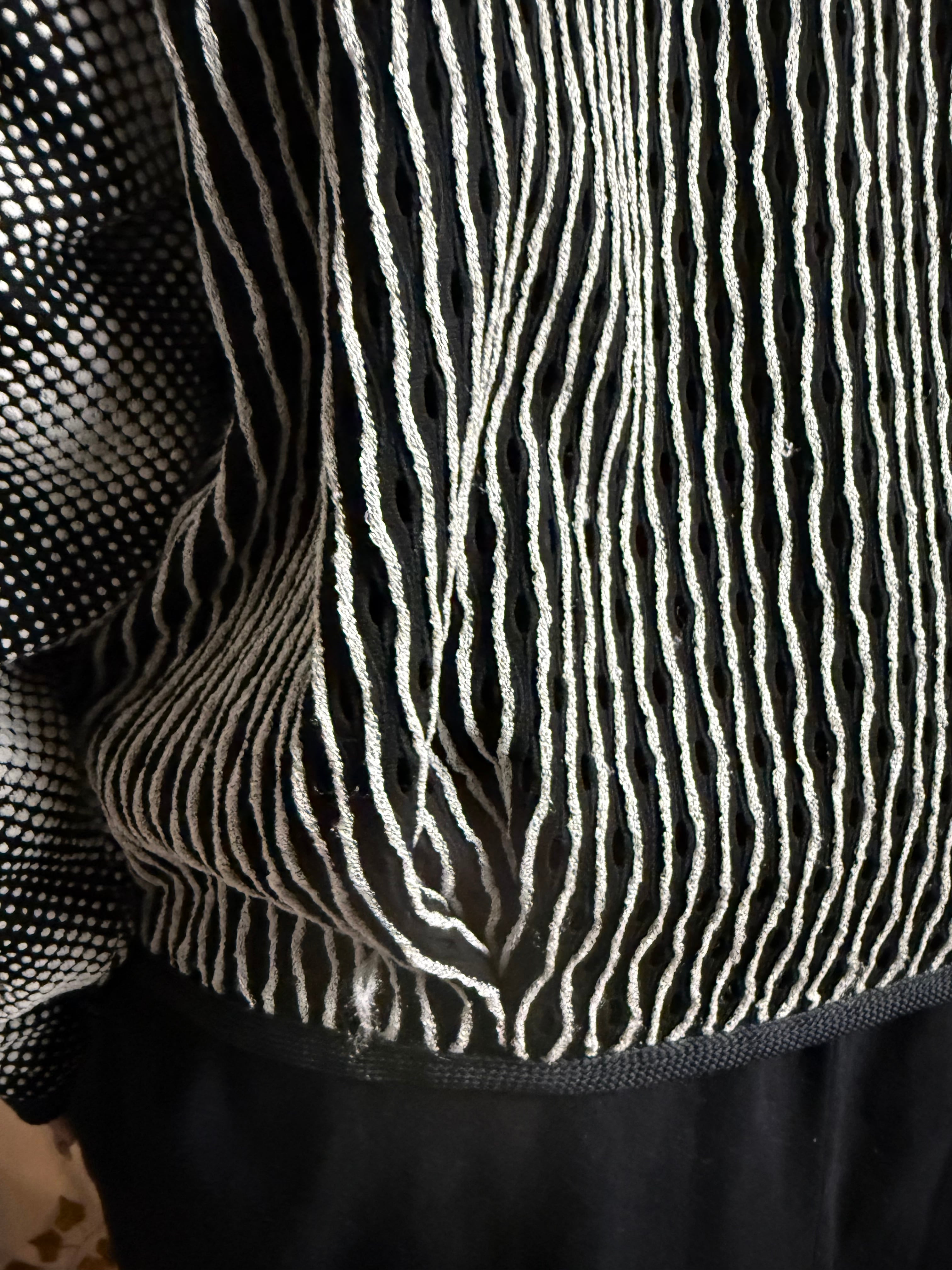 3Dアートのような幾何学やウエーブデザインが織りなす、コンテンポラリーアートを纏う...そんな一枚です。