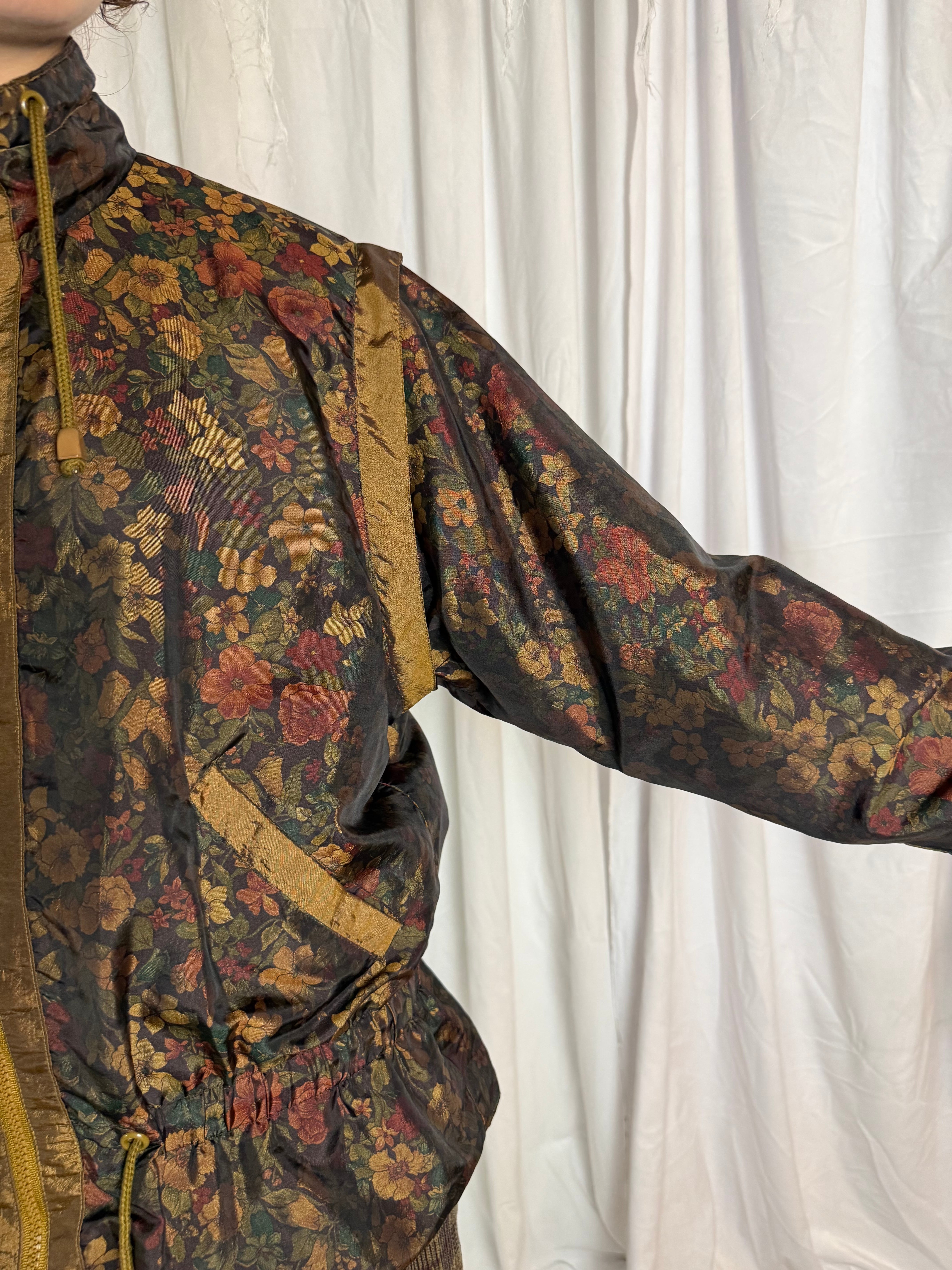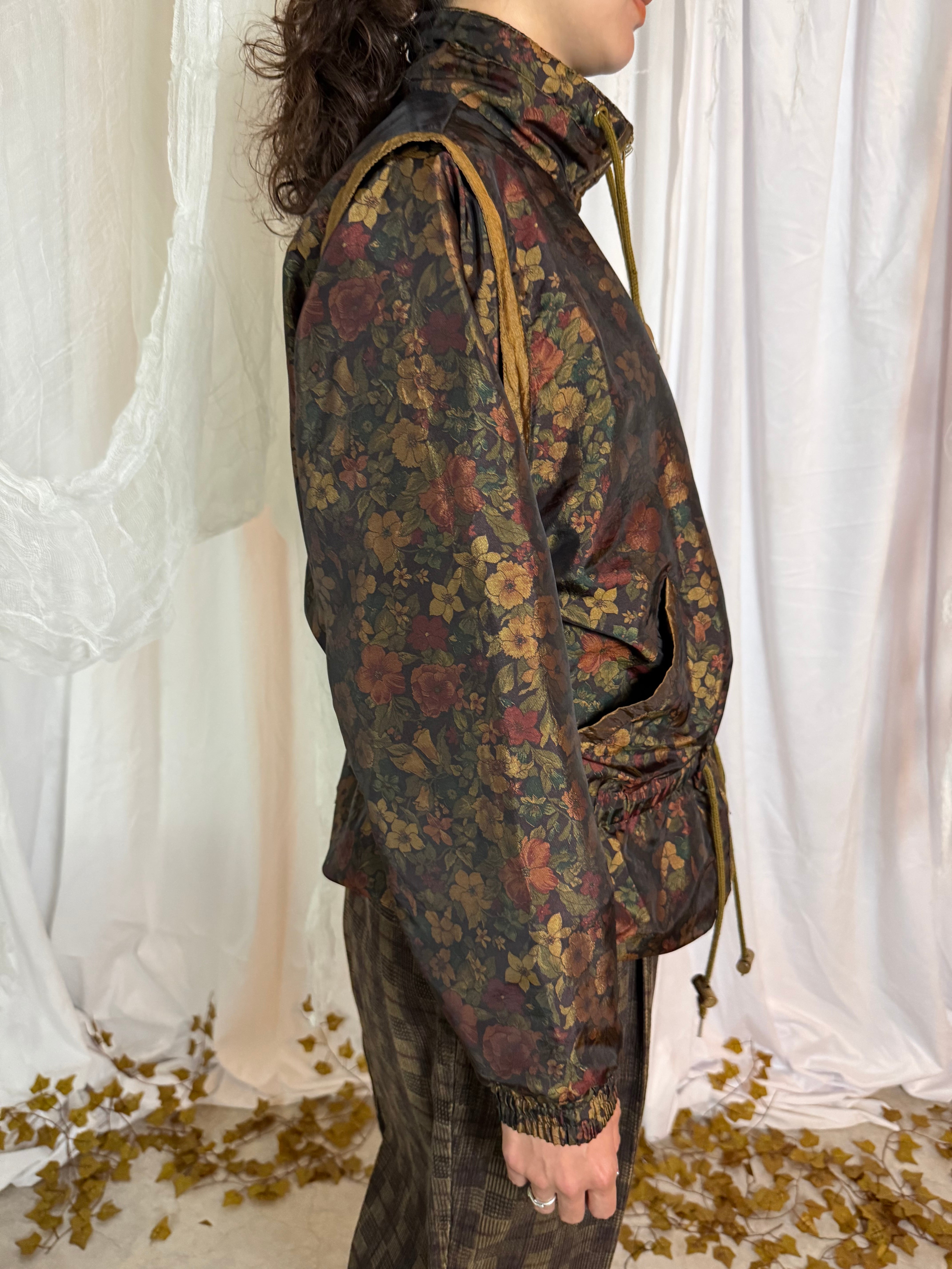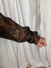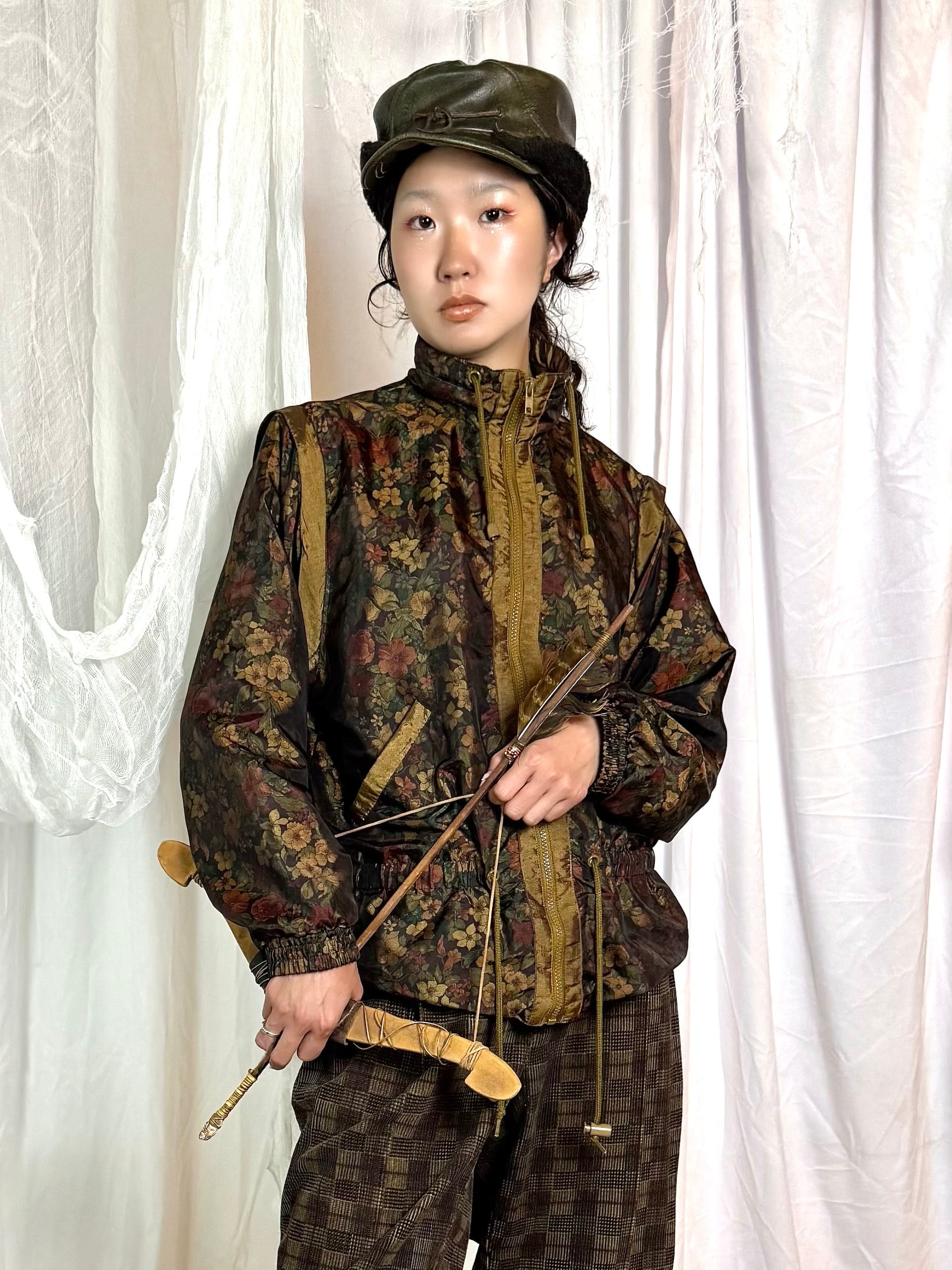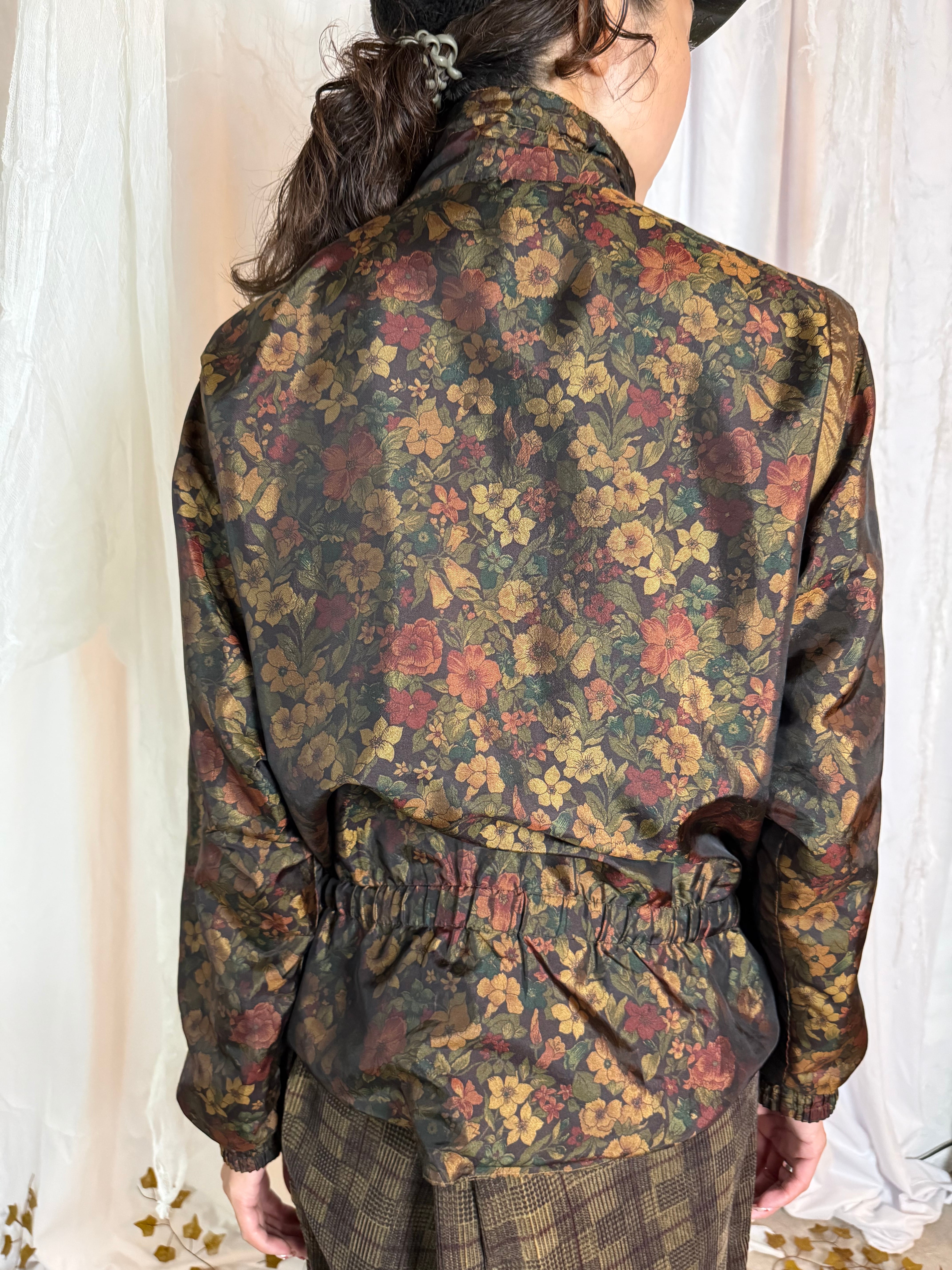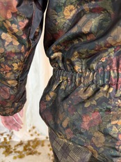 クラシックなカラーリングと、アンティーク感のあるフラワーがとても魅力的なヴィンテージライトブルゾン。