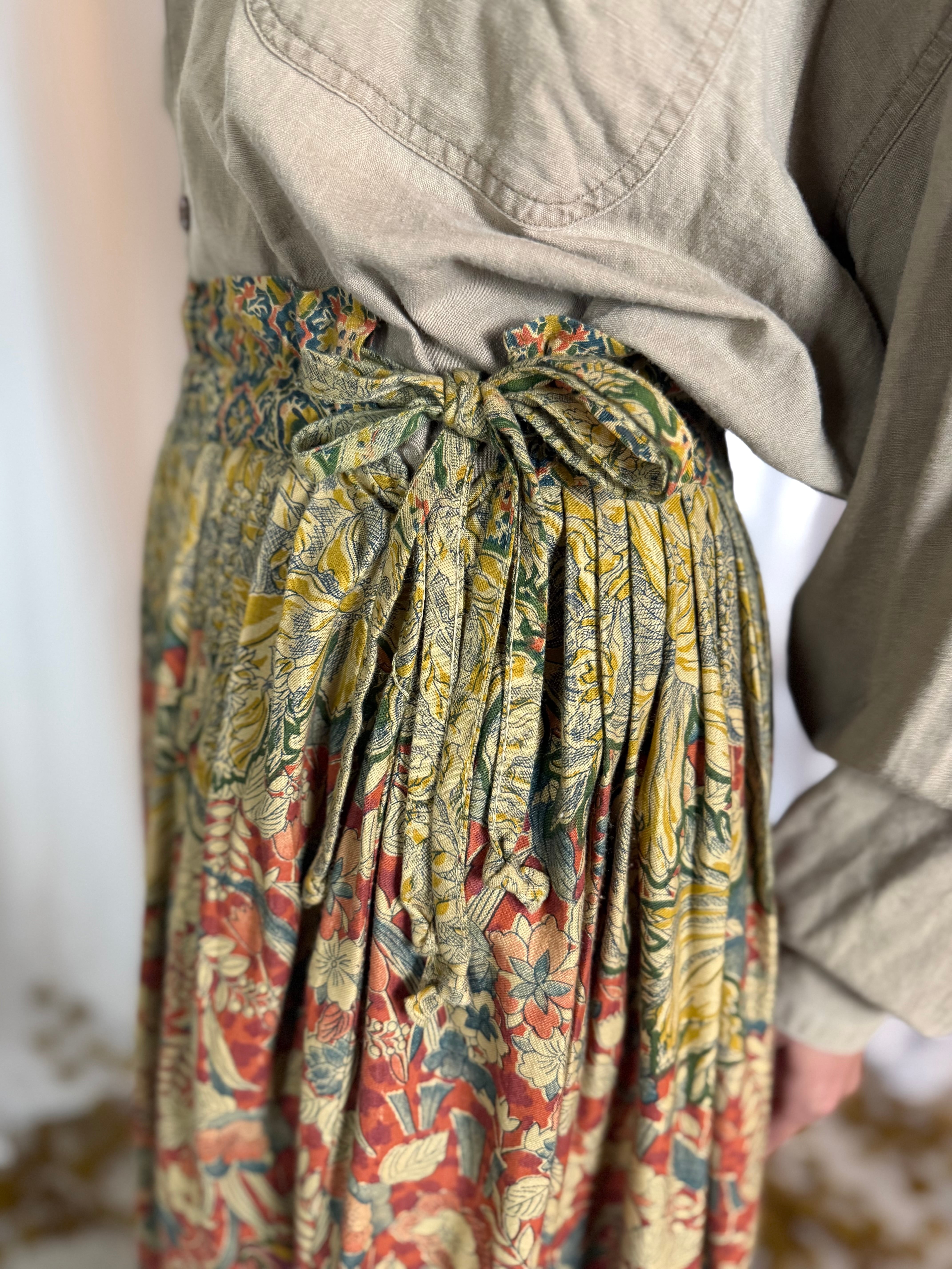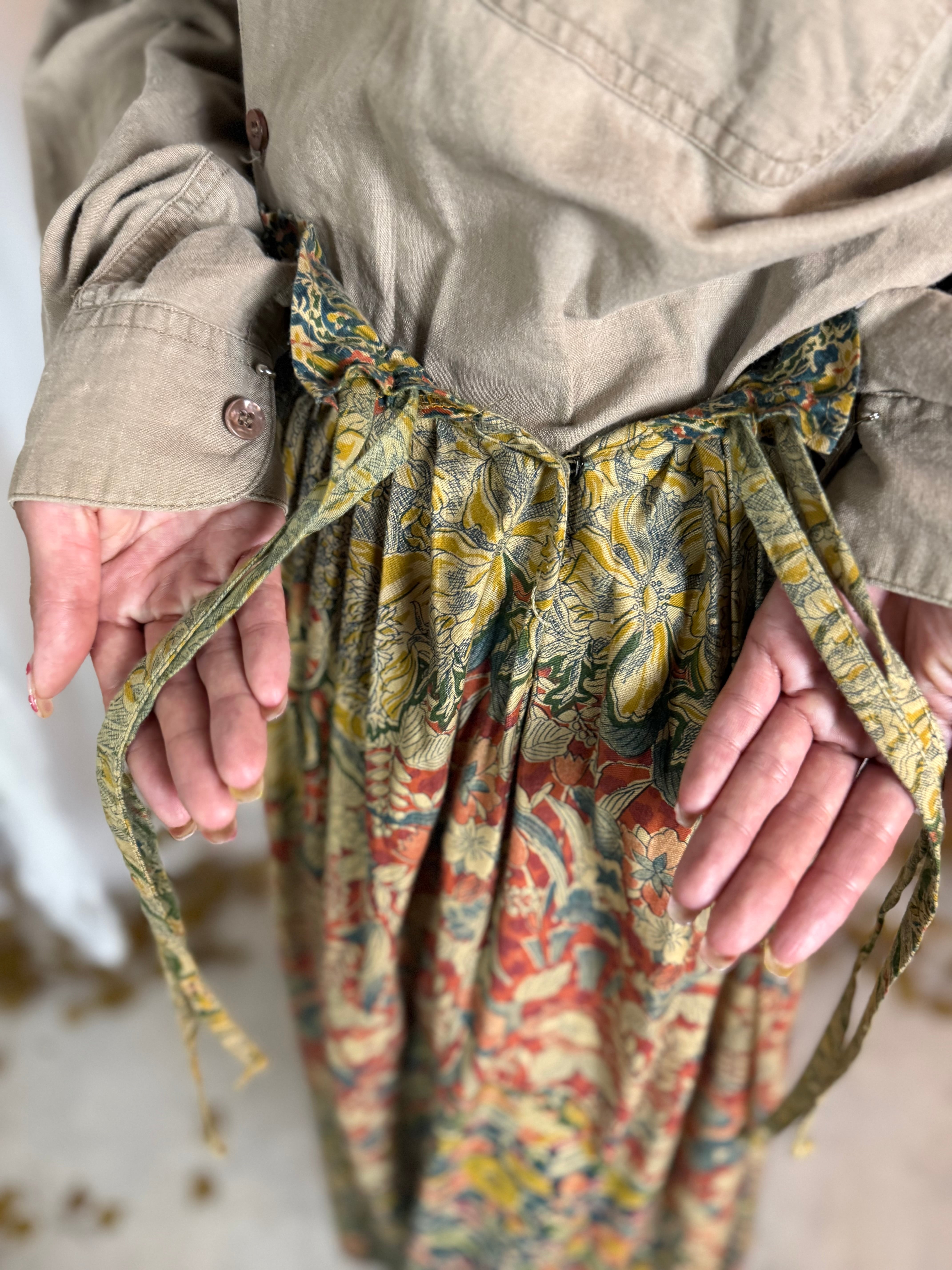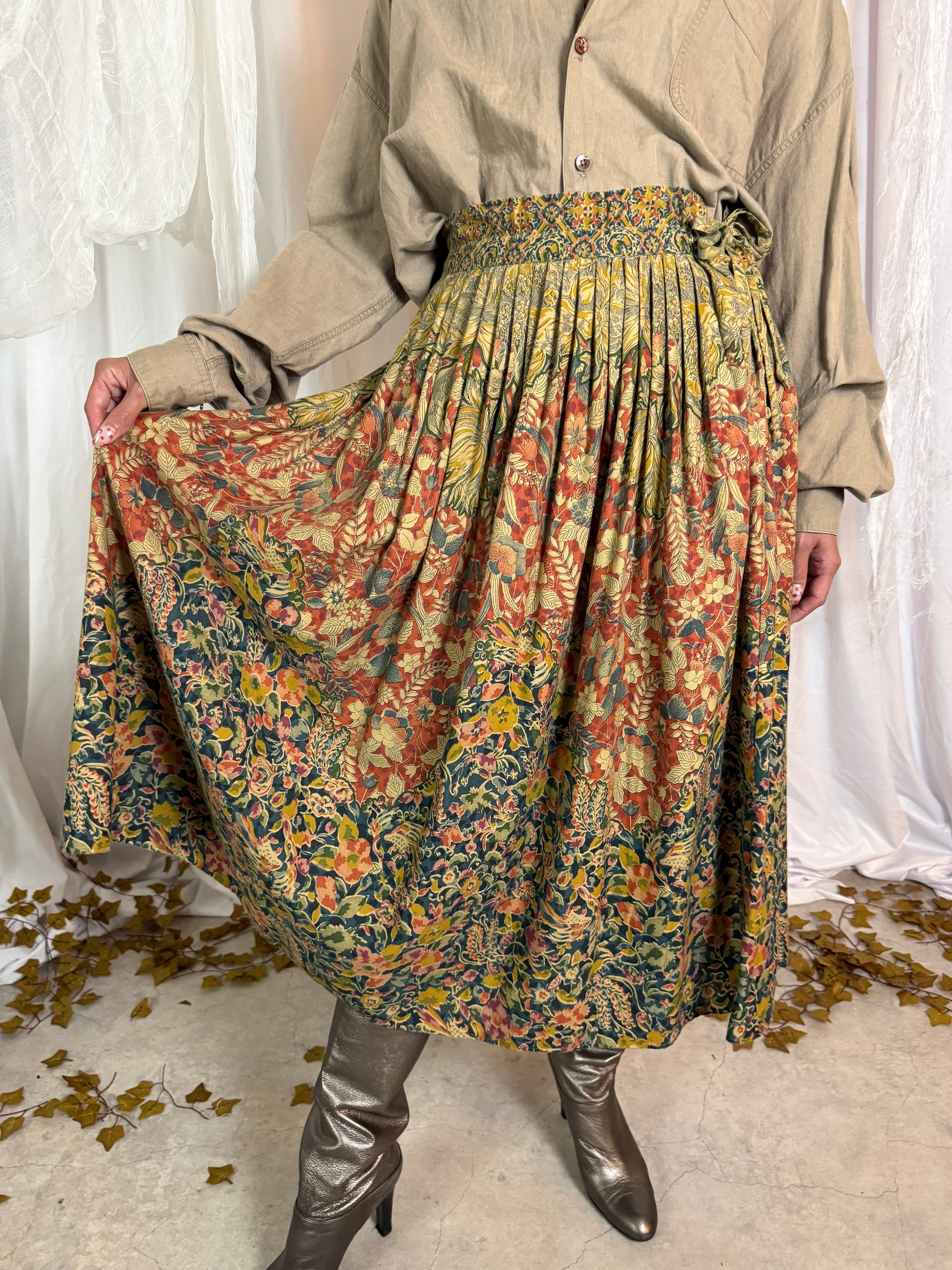 落ち葉を想うような秋色のグラデーションが美しい、ヴィンテージフラワープリントスカート。