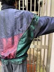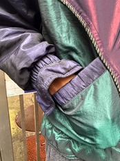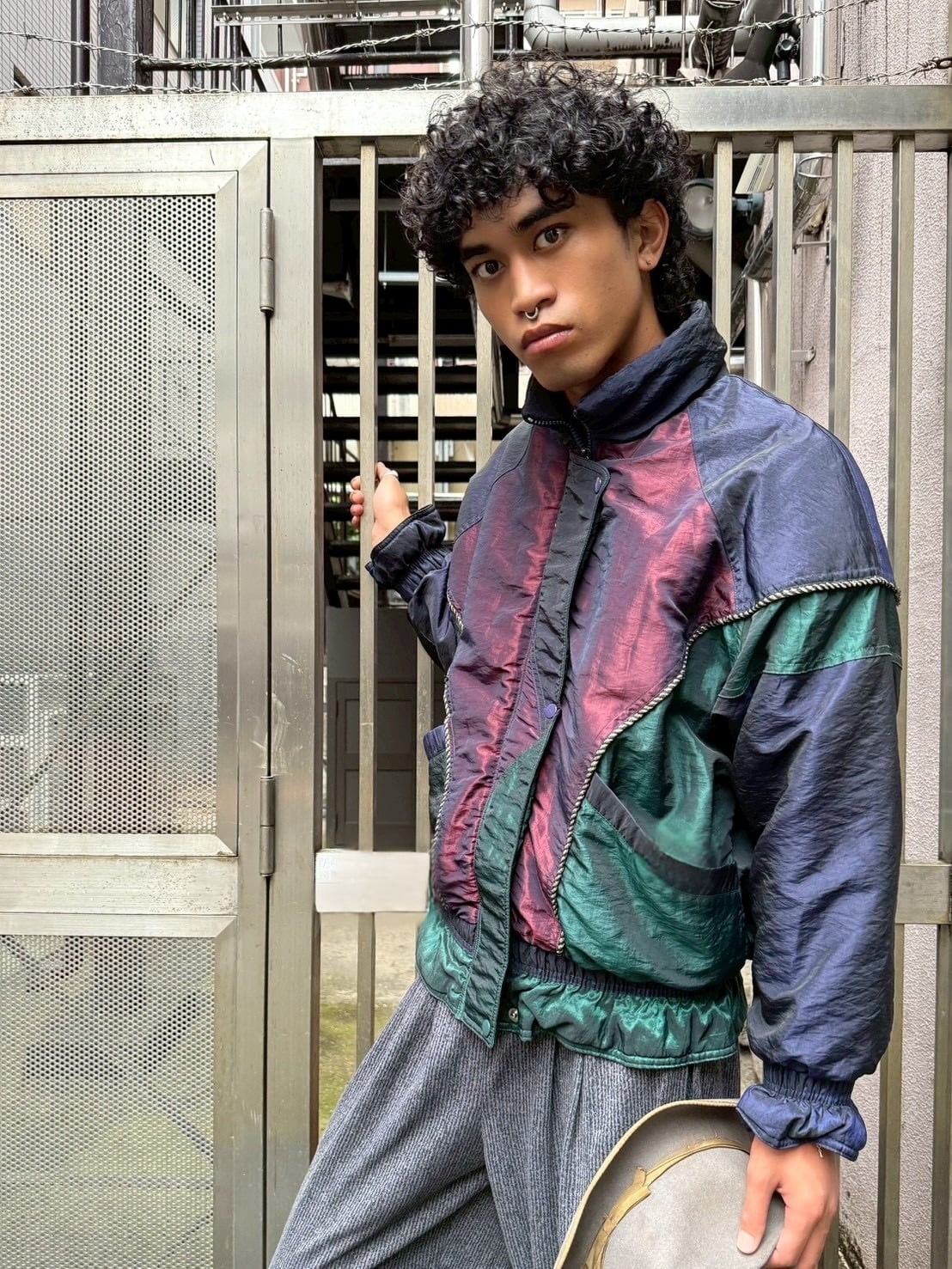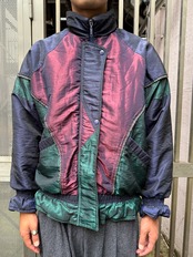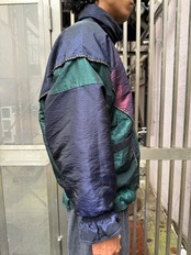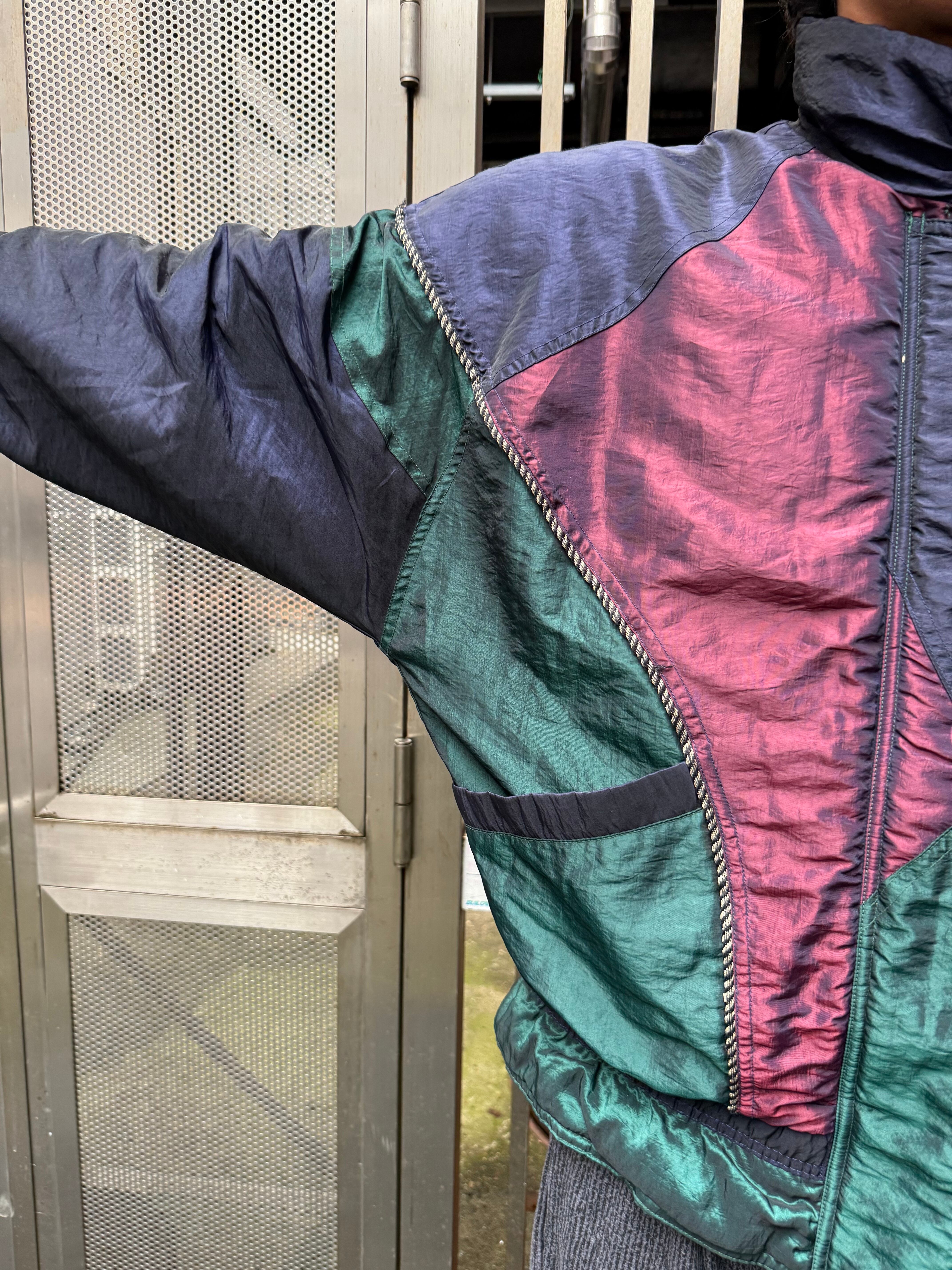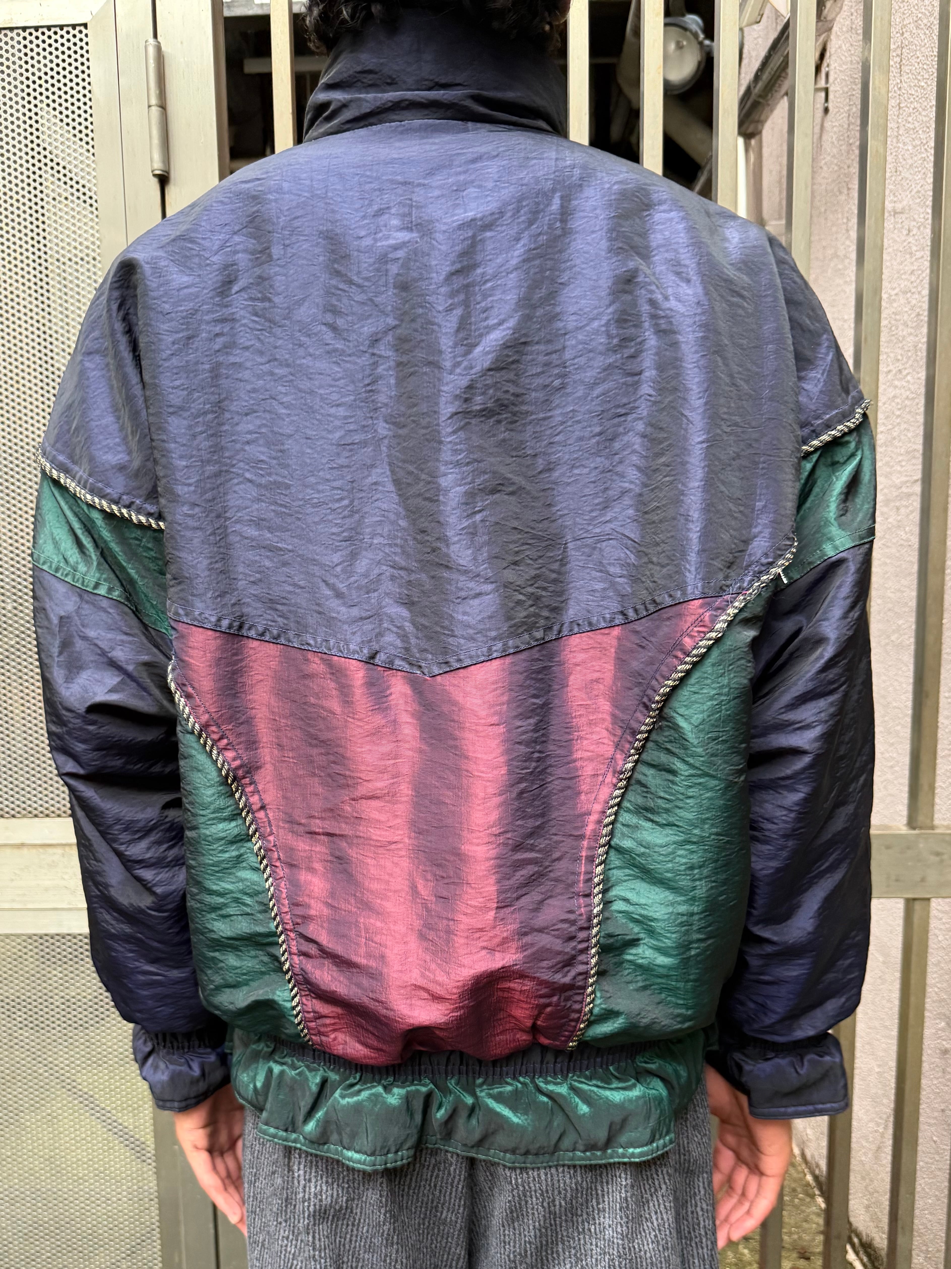 ニュアンスのあるカラーブロックが魅力の80’sブルゾン。動きや角度により微妙な光を受けて落ち着きのある色彩を放つ玉虫のテキスタイルがとても素敵です。