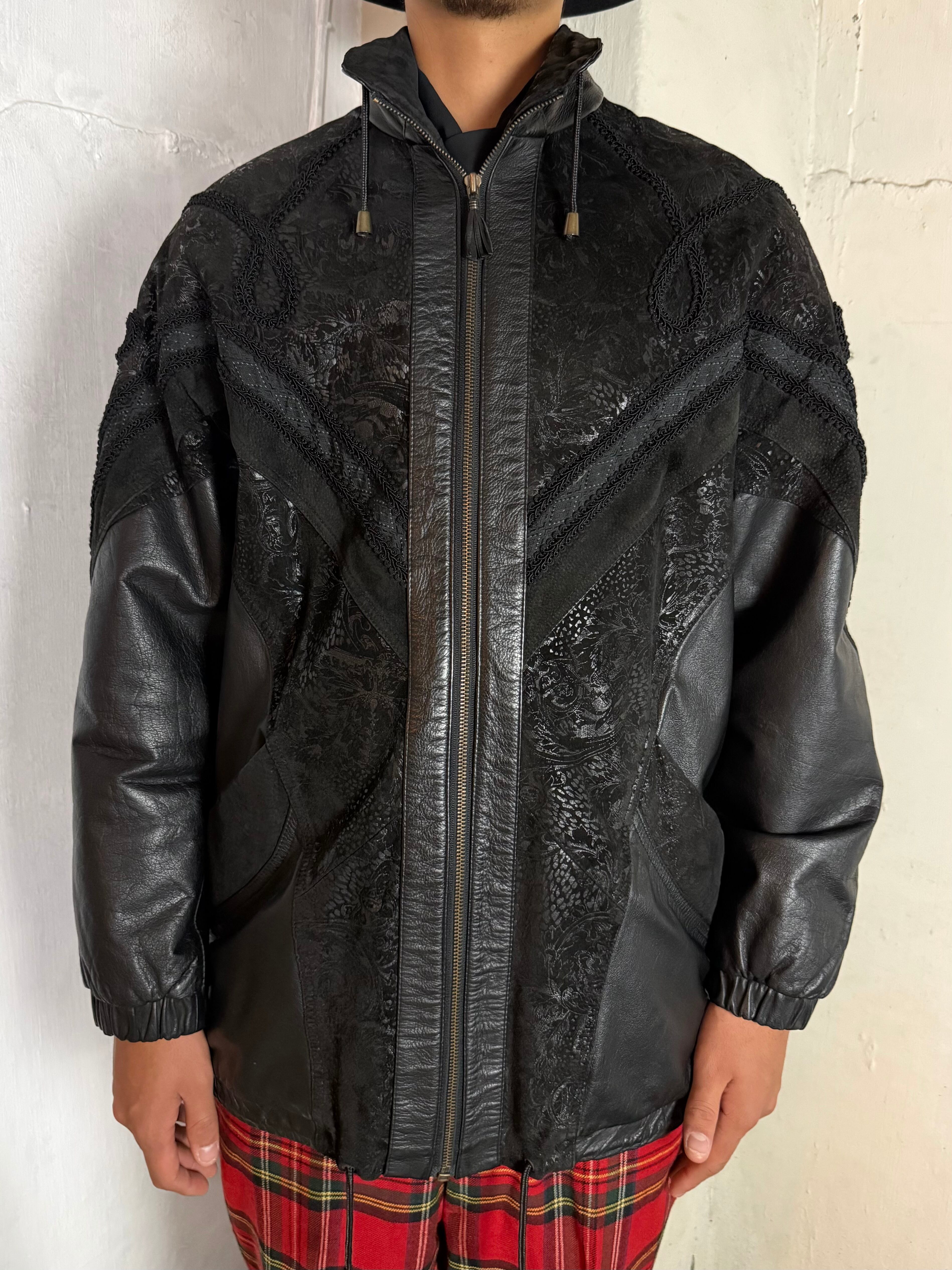 プリントレザーにクラシックなブレード遣いがお洒落な80’sレザーブルゾン。