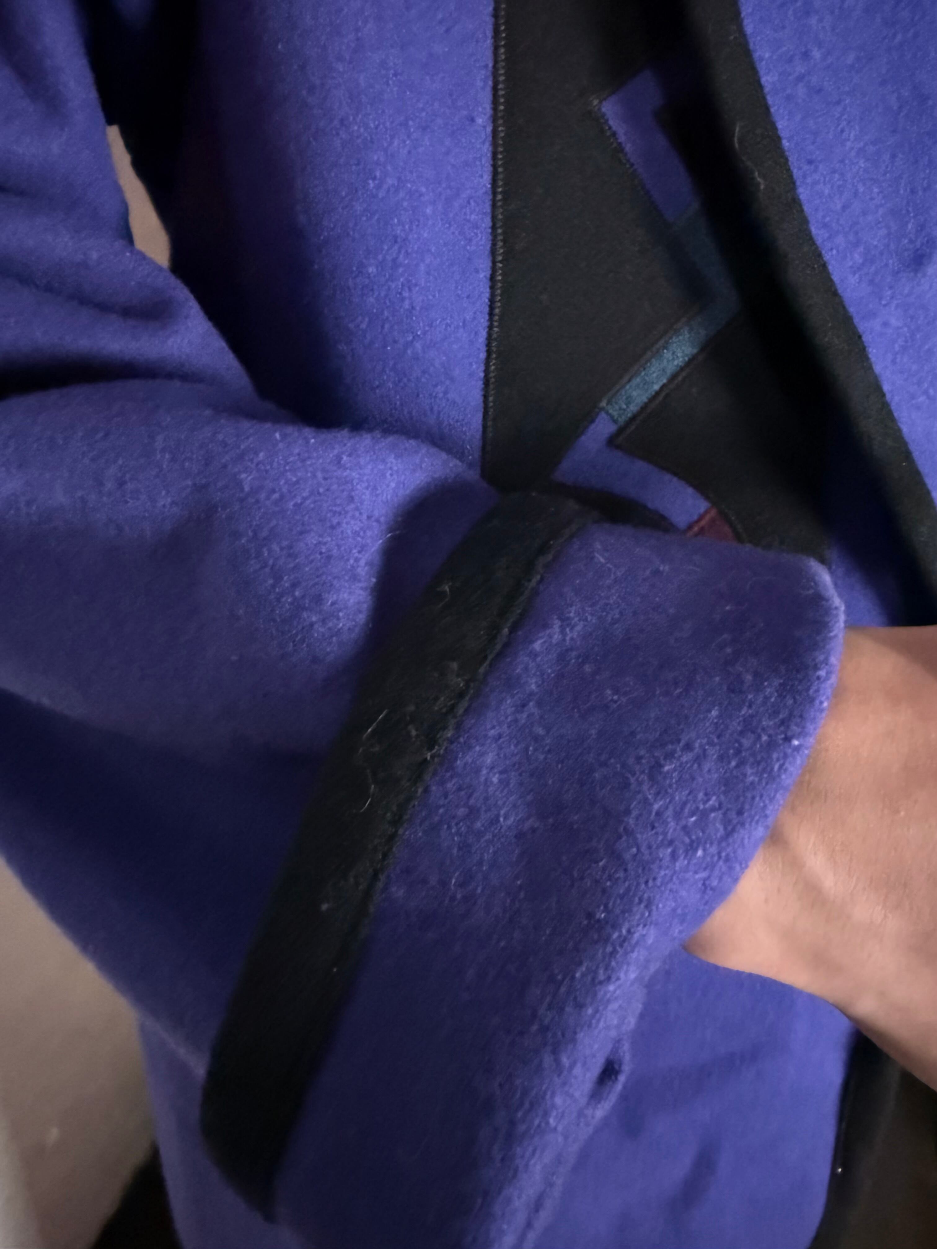 ショールカラーのローブのようなデザインで、ウールならではの温かみと、リラックスさも感じさせるられます。
