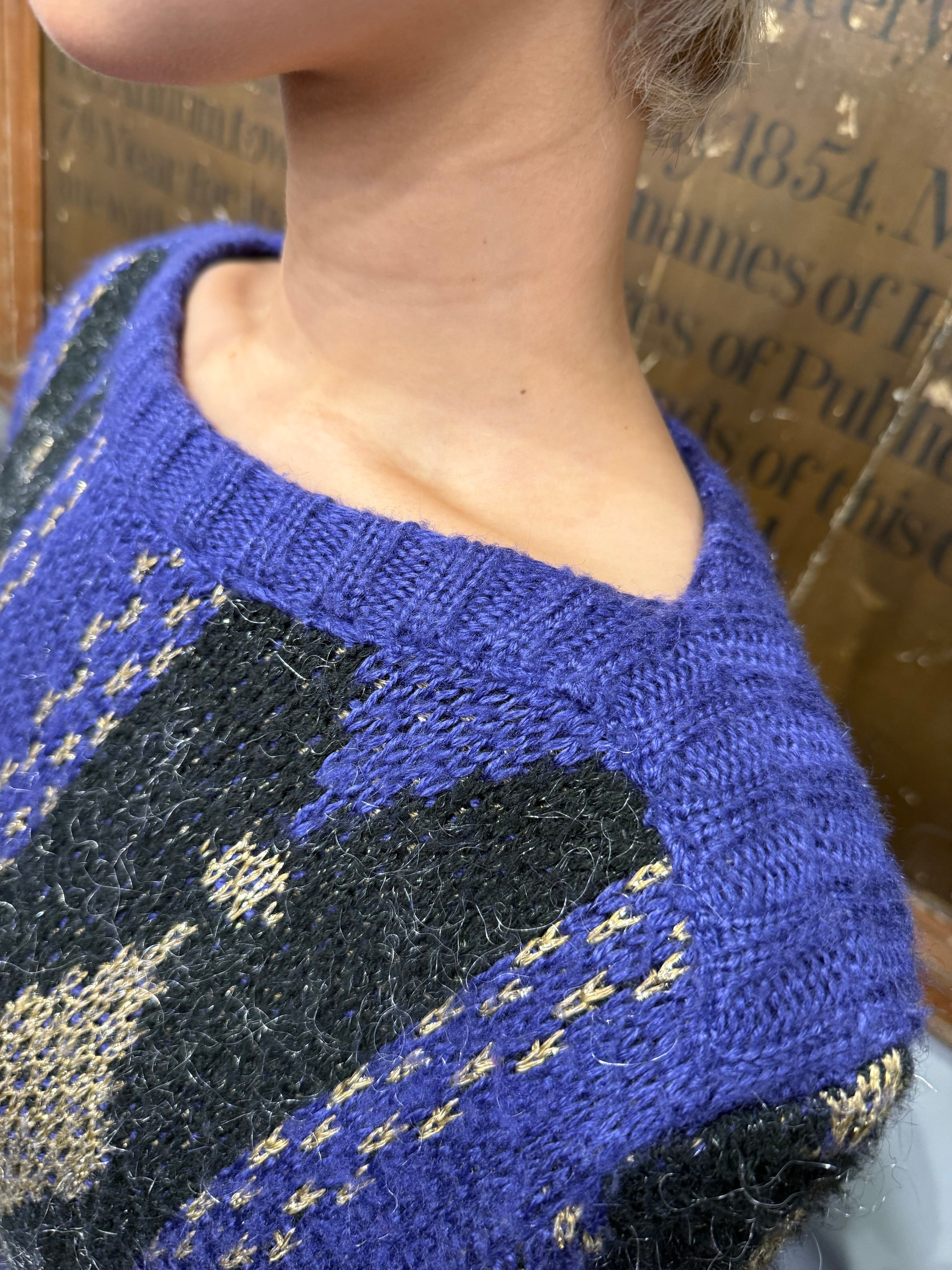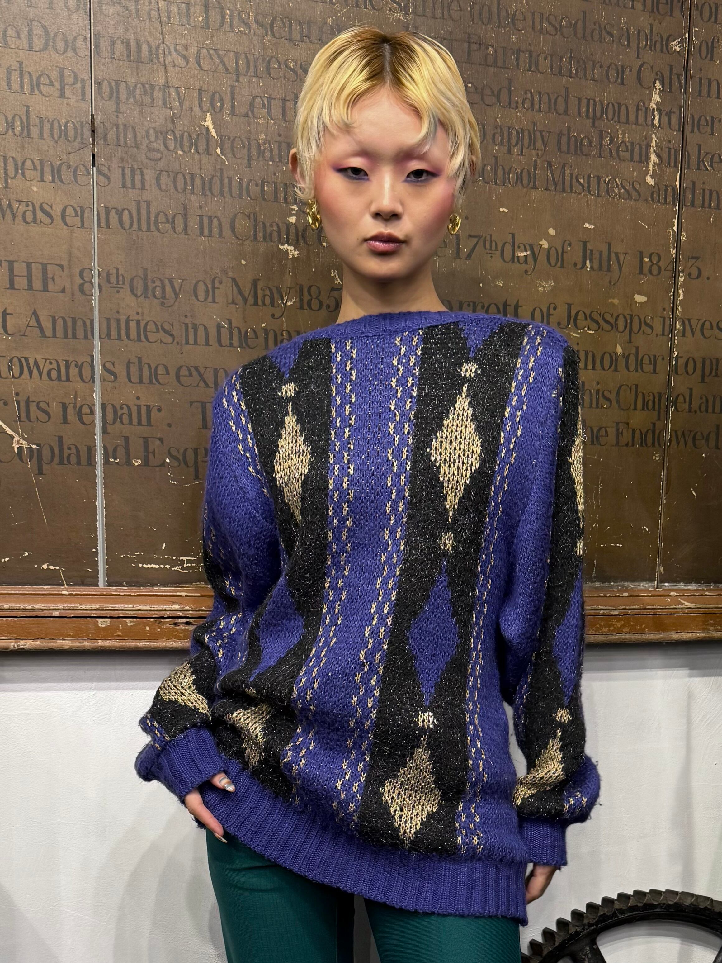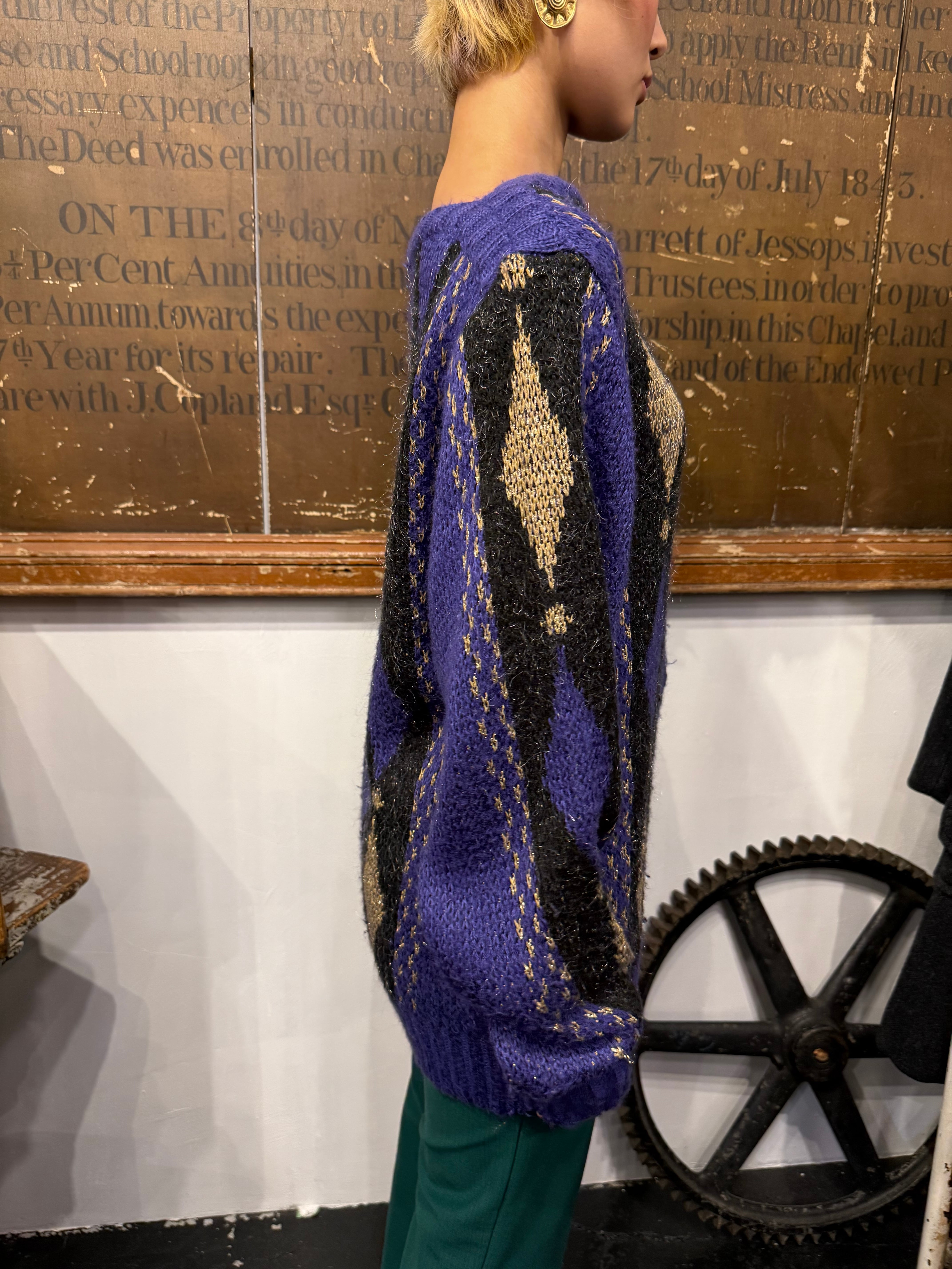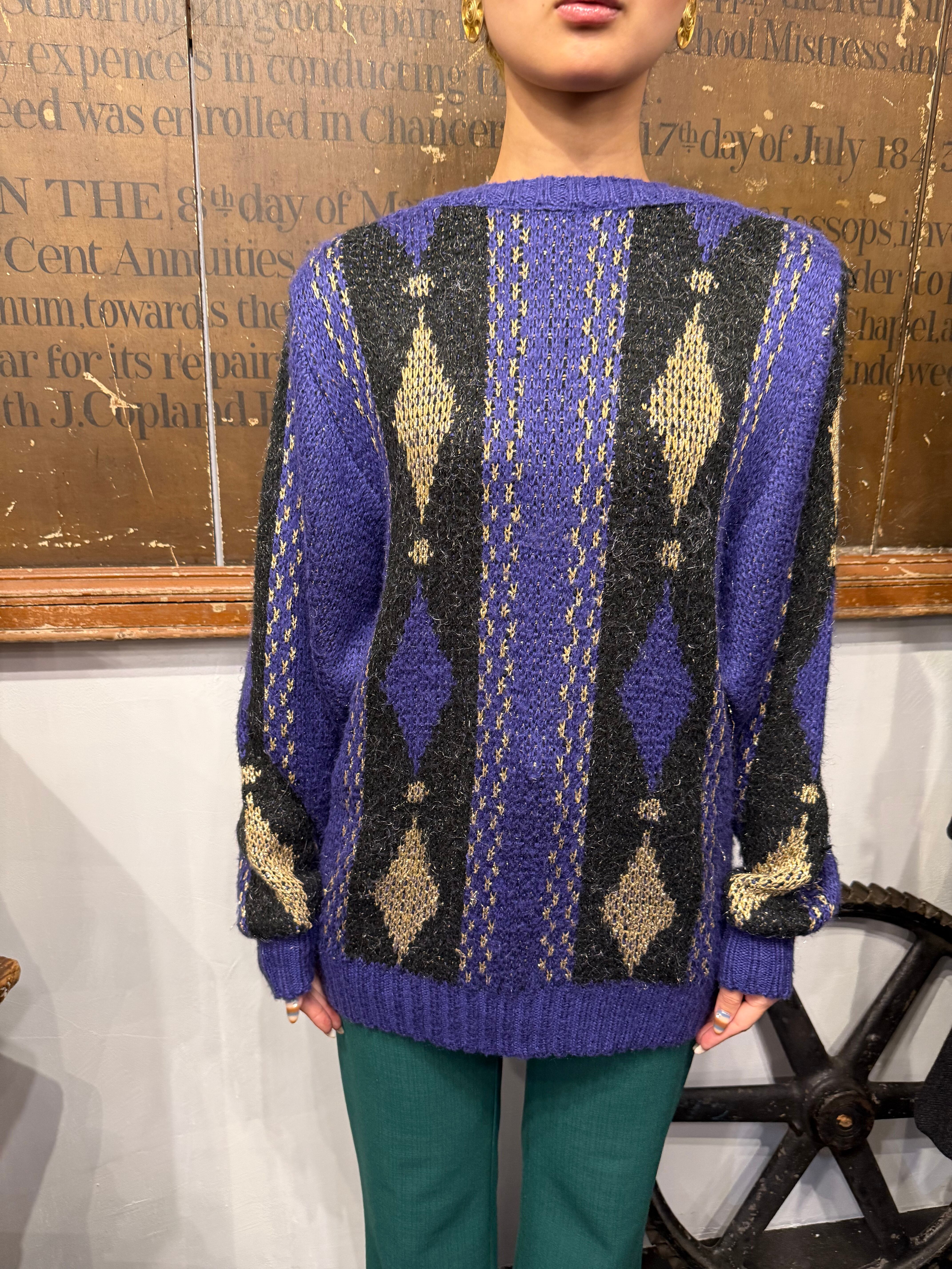美しいパープルとアンティーク感のあるゴールドが印象的何ヴィンテージセーター。