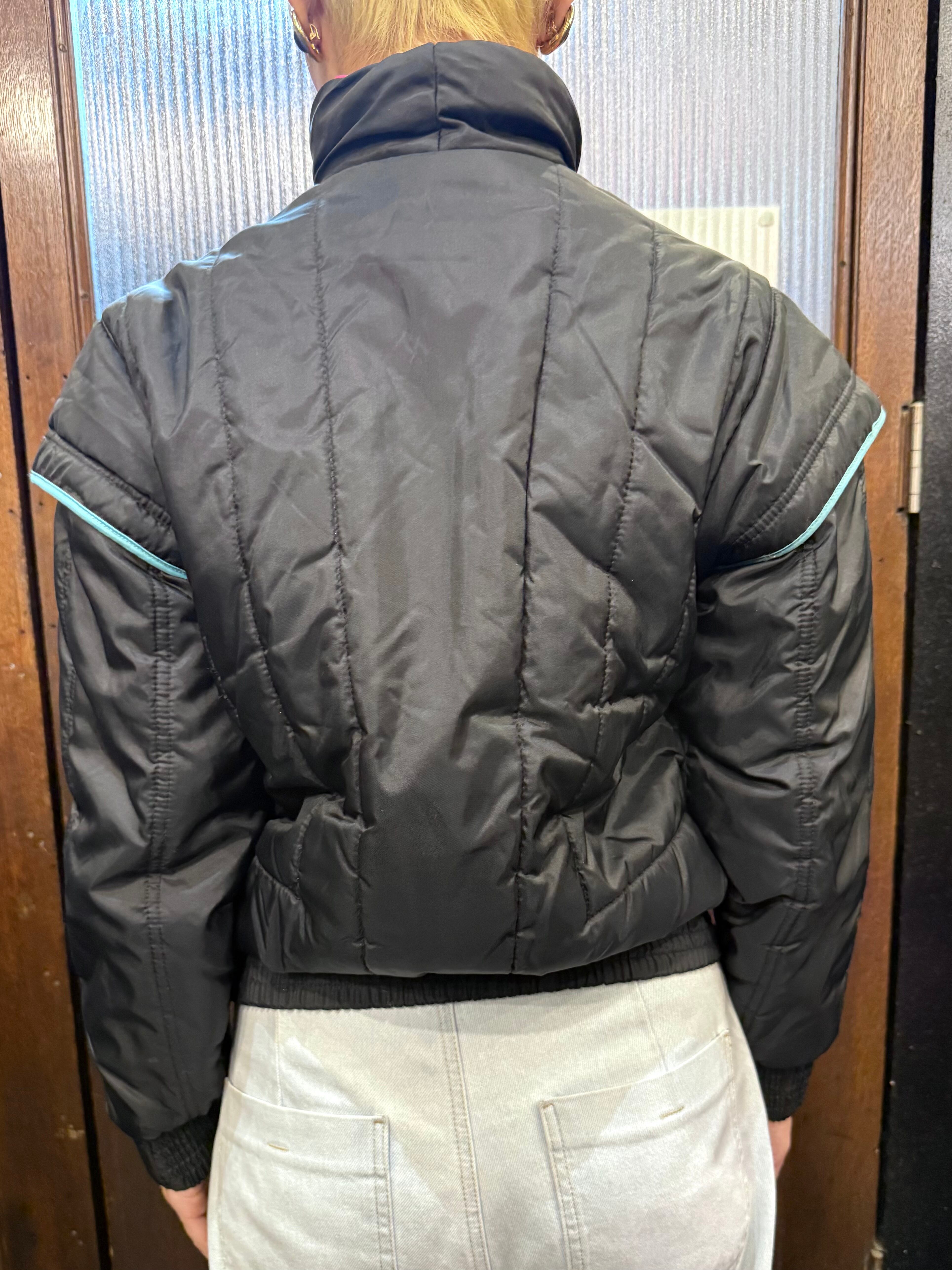 カフスの半分がシャーリングになっていたり、肩を捲るとうごきやすさのある伸縮性のあるニット遣いになっていたりと、デザイン制機能性に優れています。