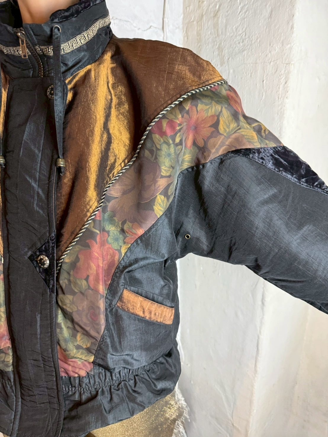 カジュアルブルゾンながら、クラシックロマンティックなフラワーが美しい中綿入りブルゾン。