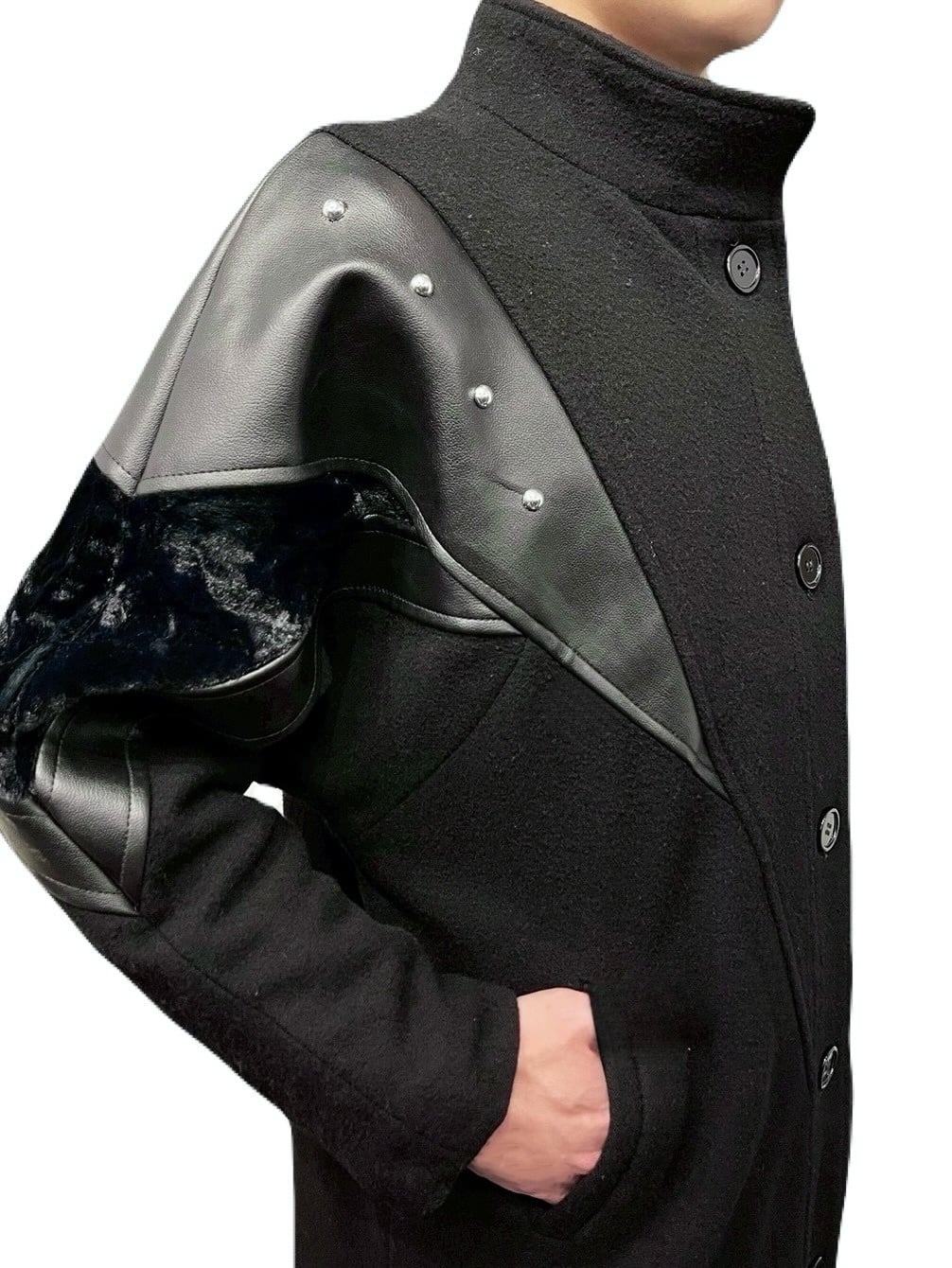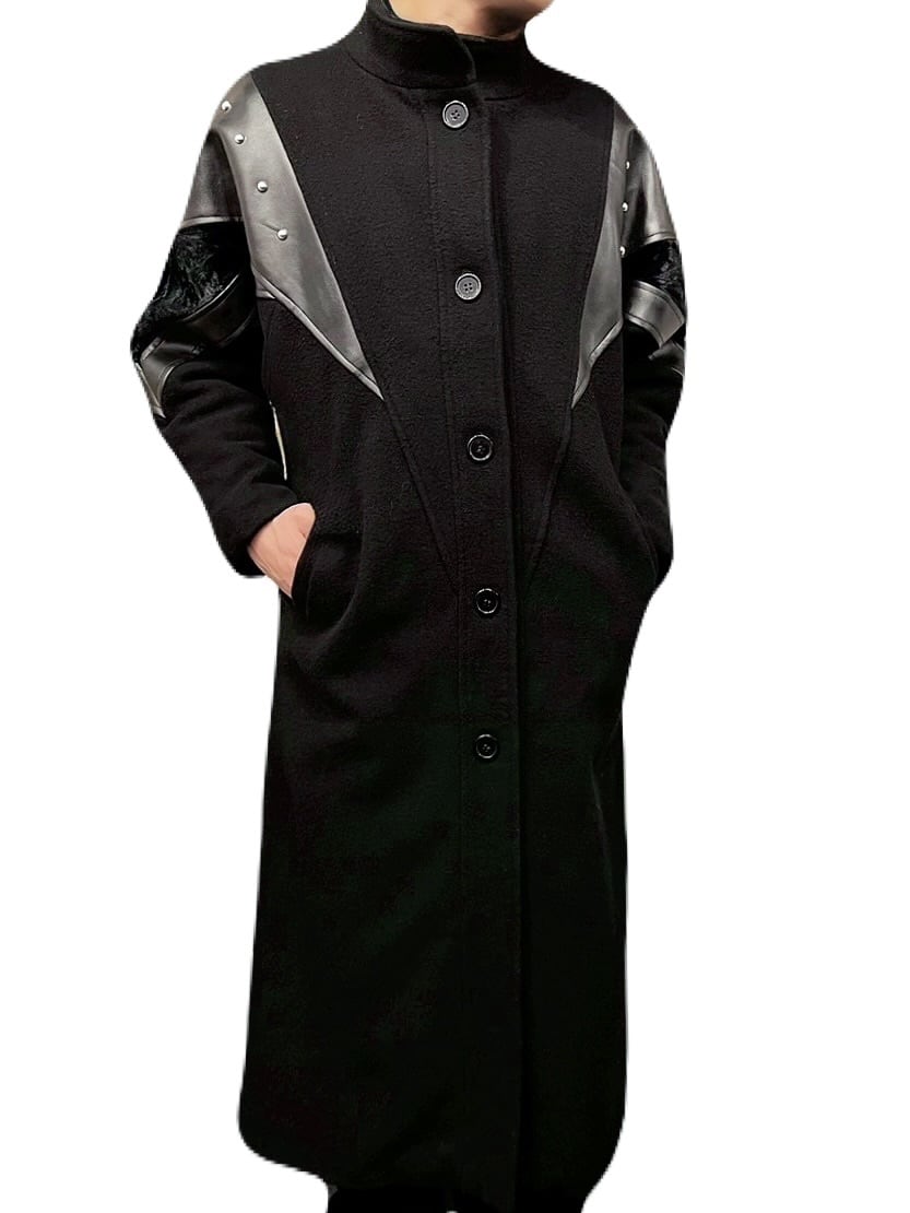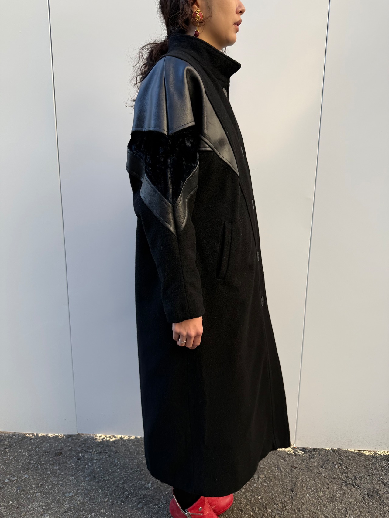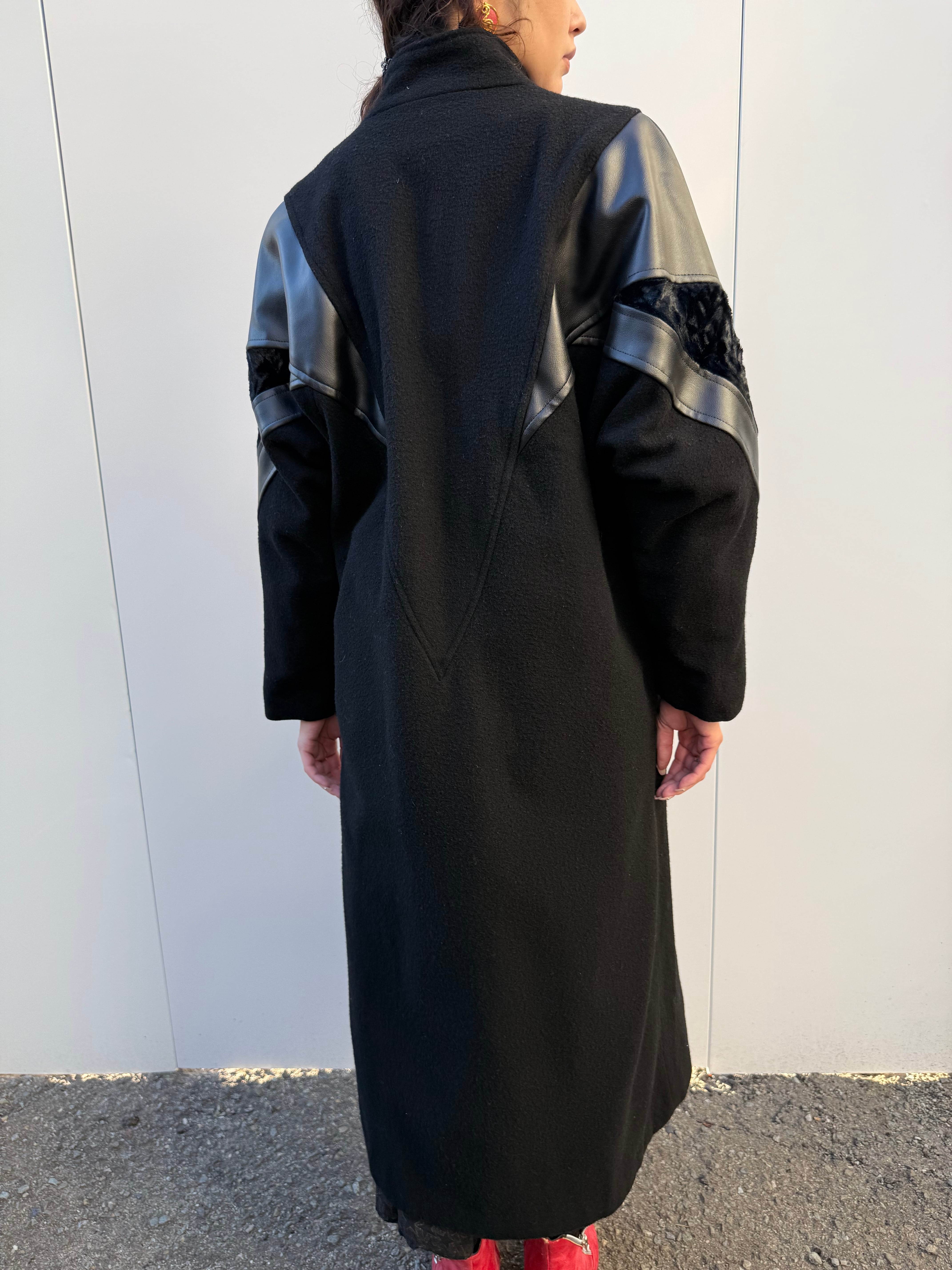 80'sレザートリムウールコート