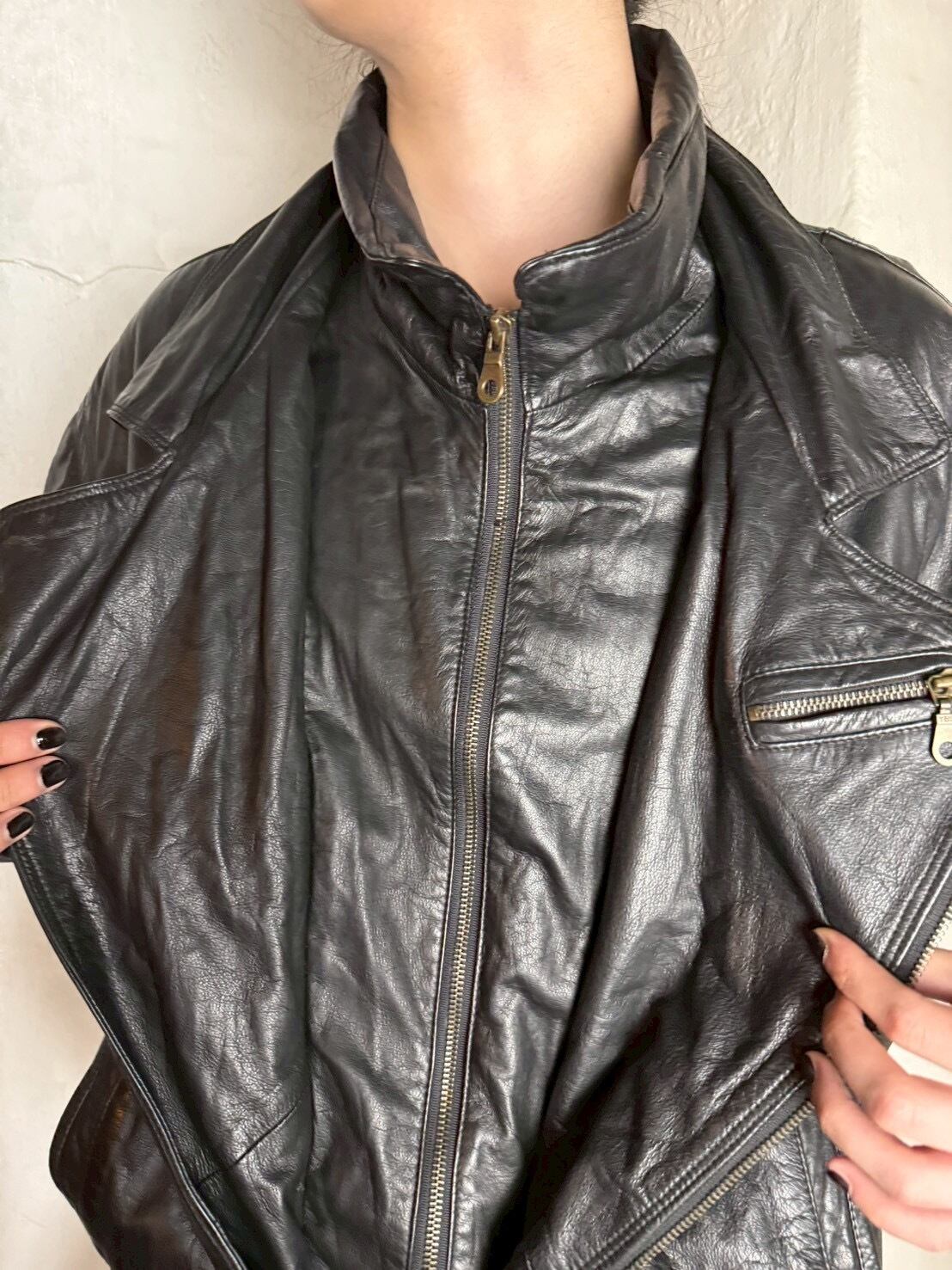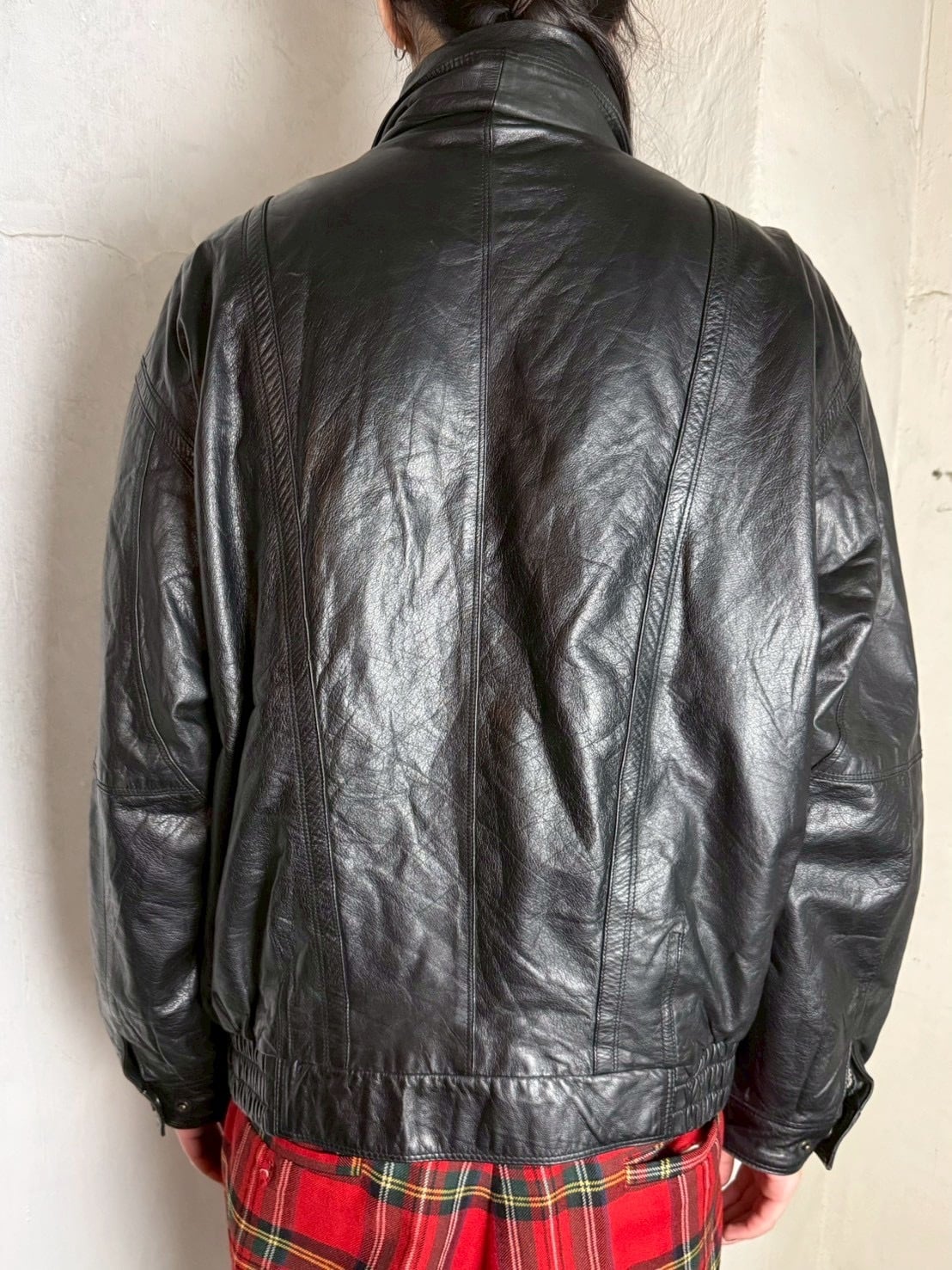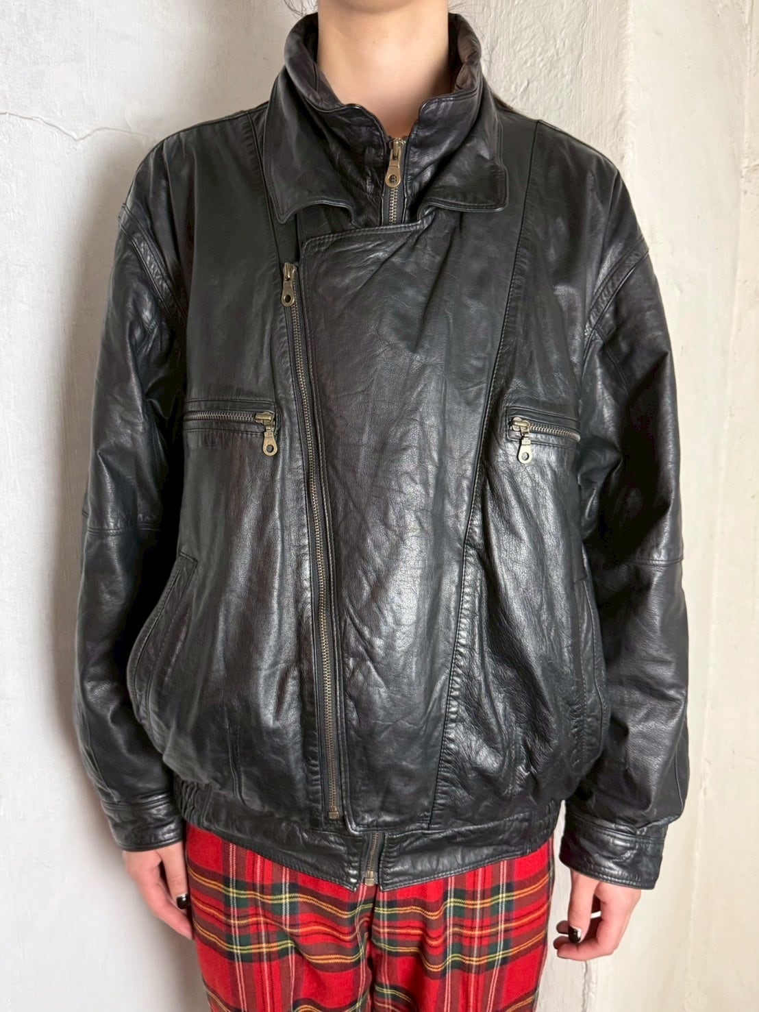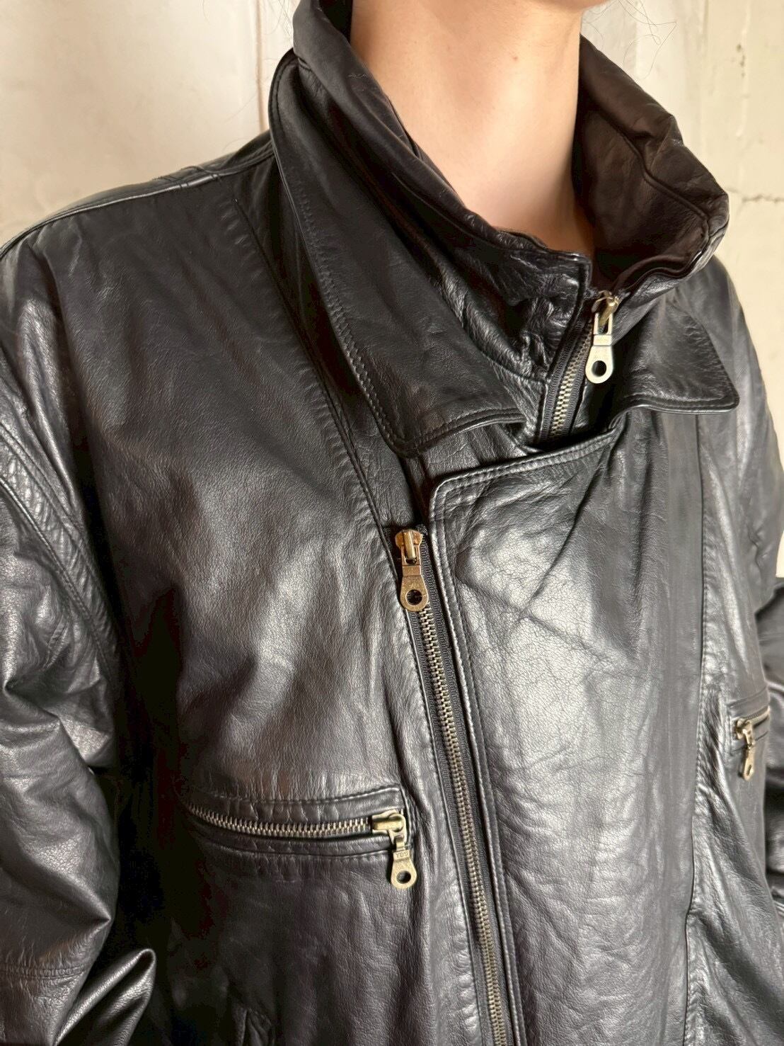 90’sの柔らかなレザージャケット。ネックの高いダブルカラーデザインが目を惹きます。