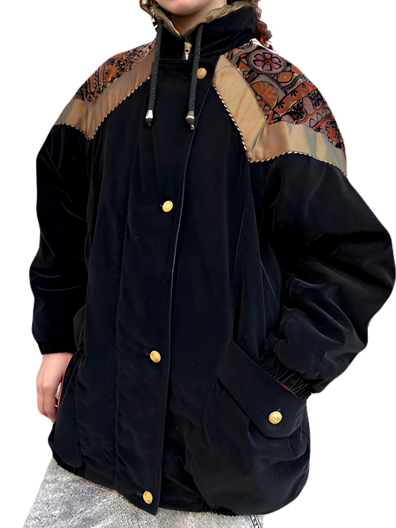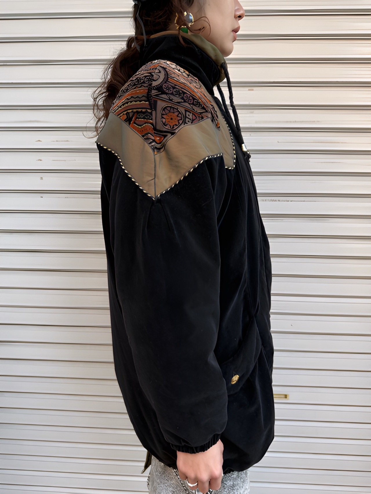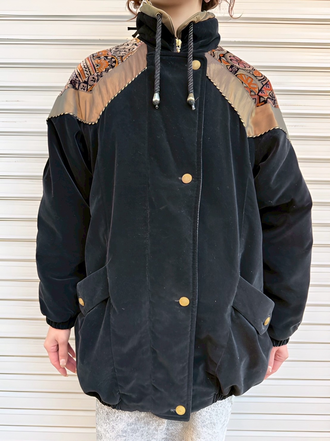 希少な漆黒ベロアの中綿入り80'sブルゾン。ヒップが隠れる丈感も希少です。