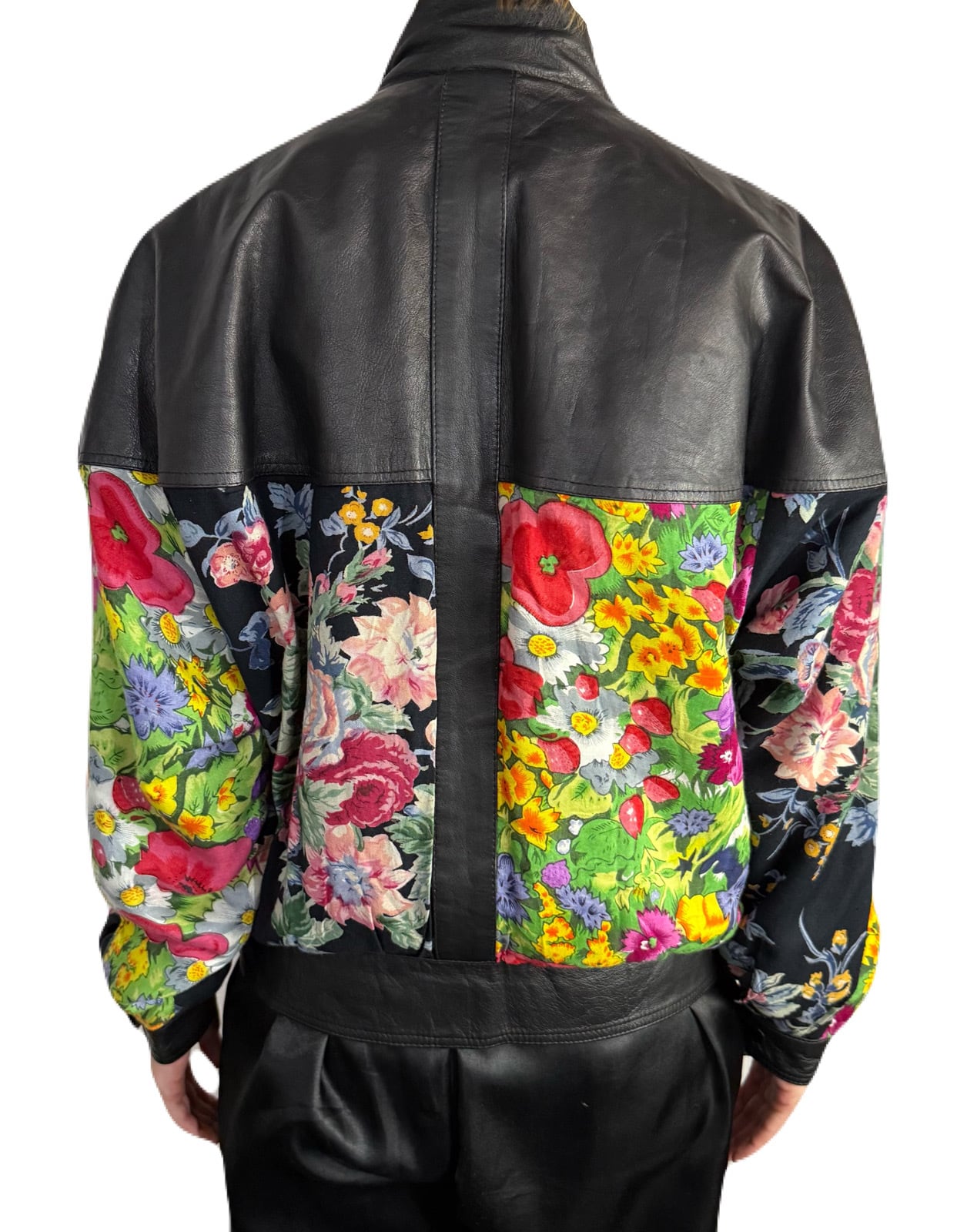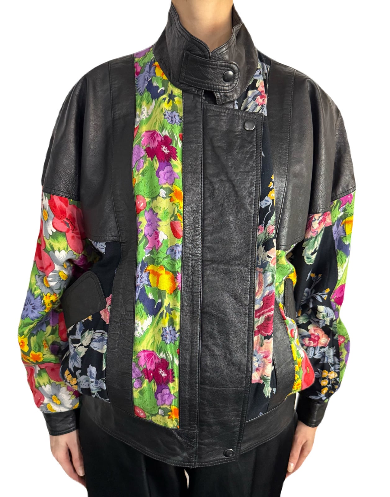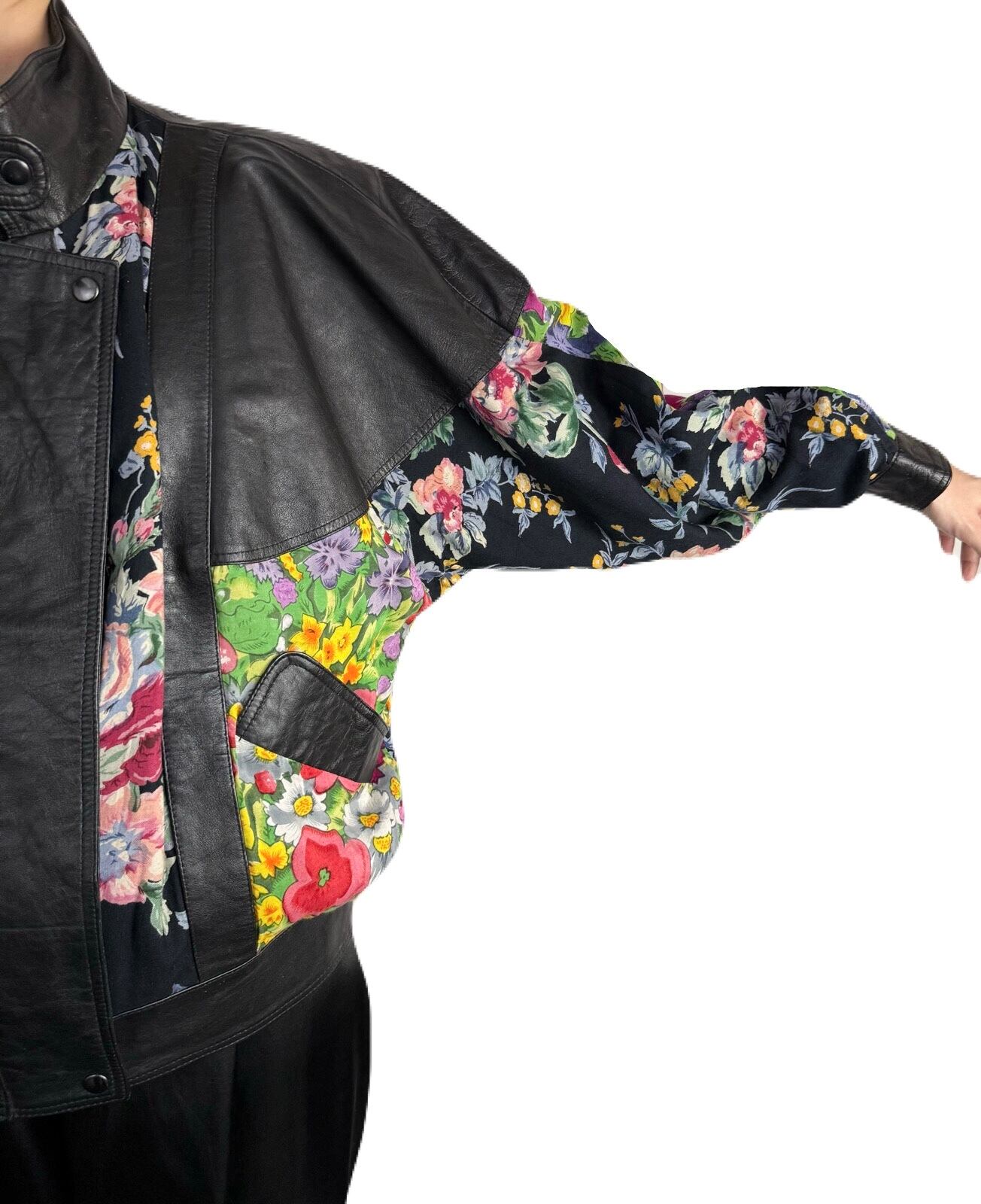 80’s フラワーパッチワークレザーブルゾン
