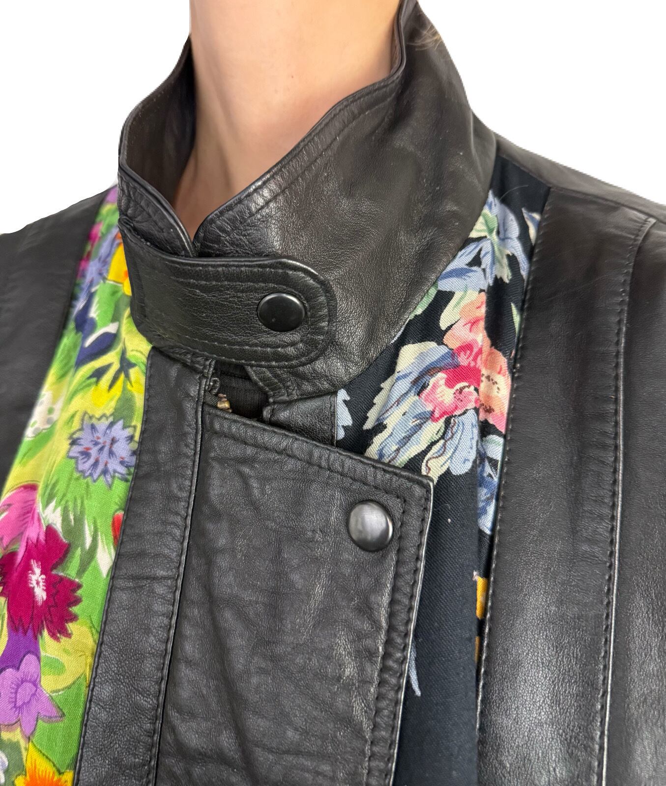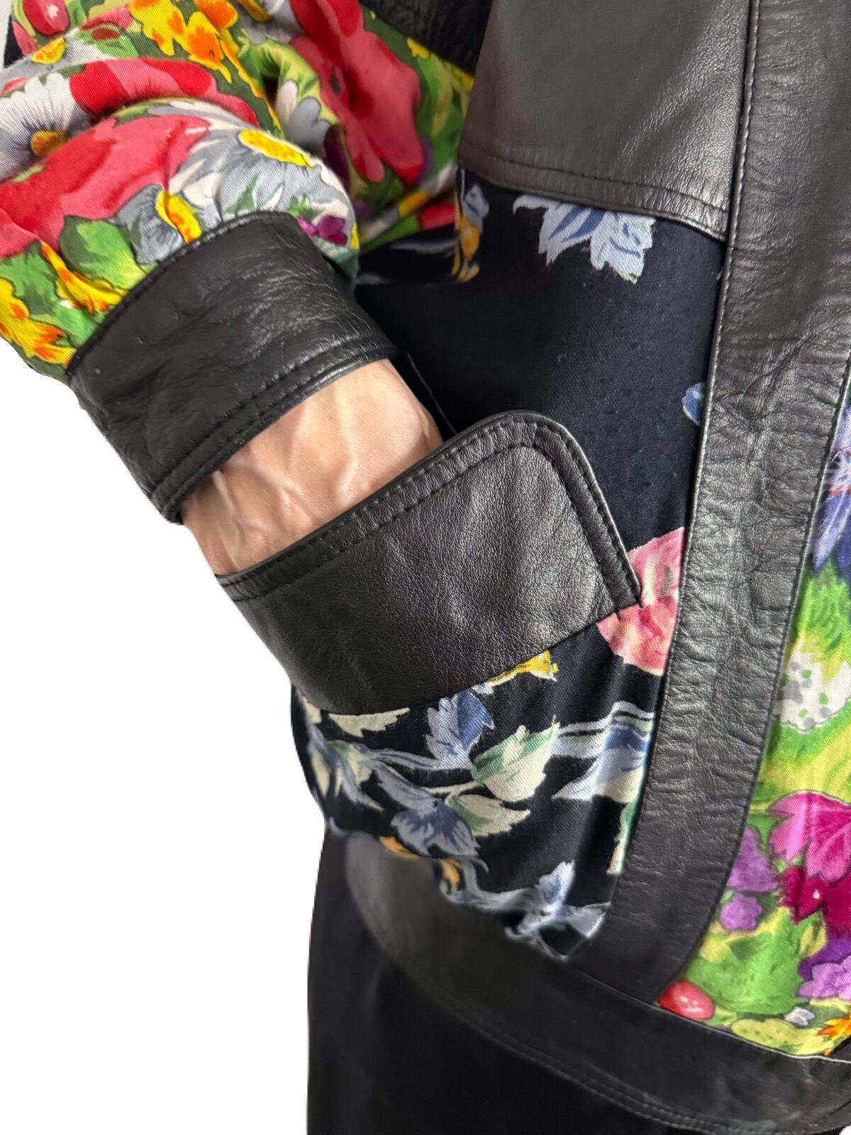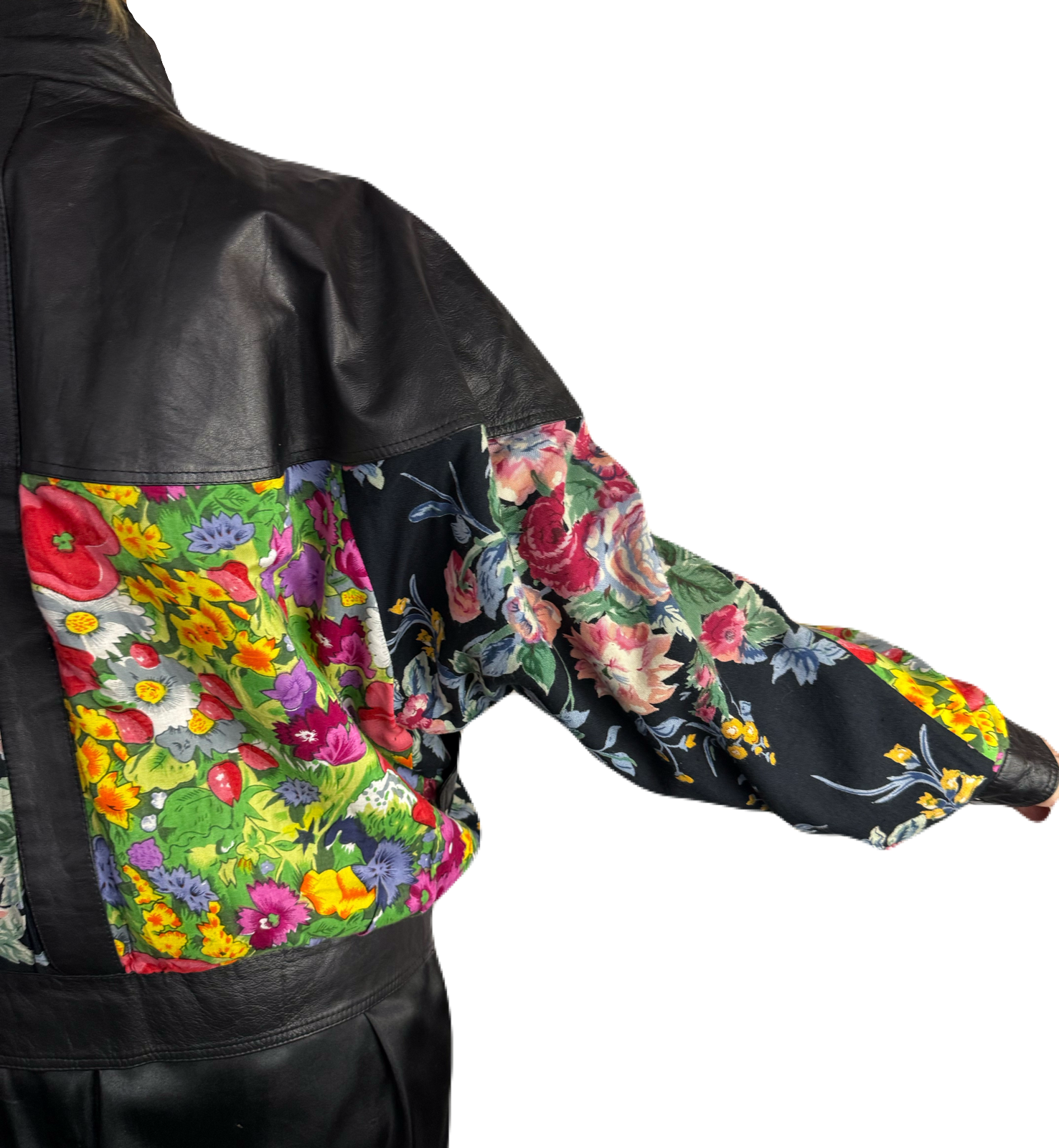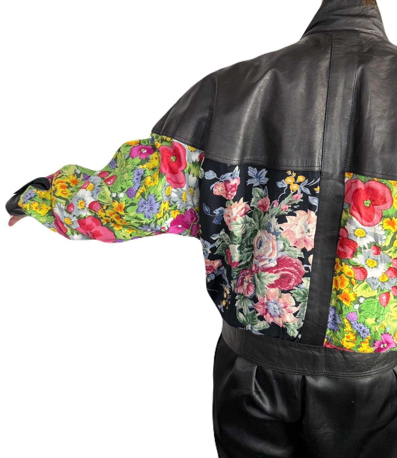 80’s フラワーパッチワークレザーブルゾン