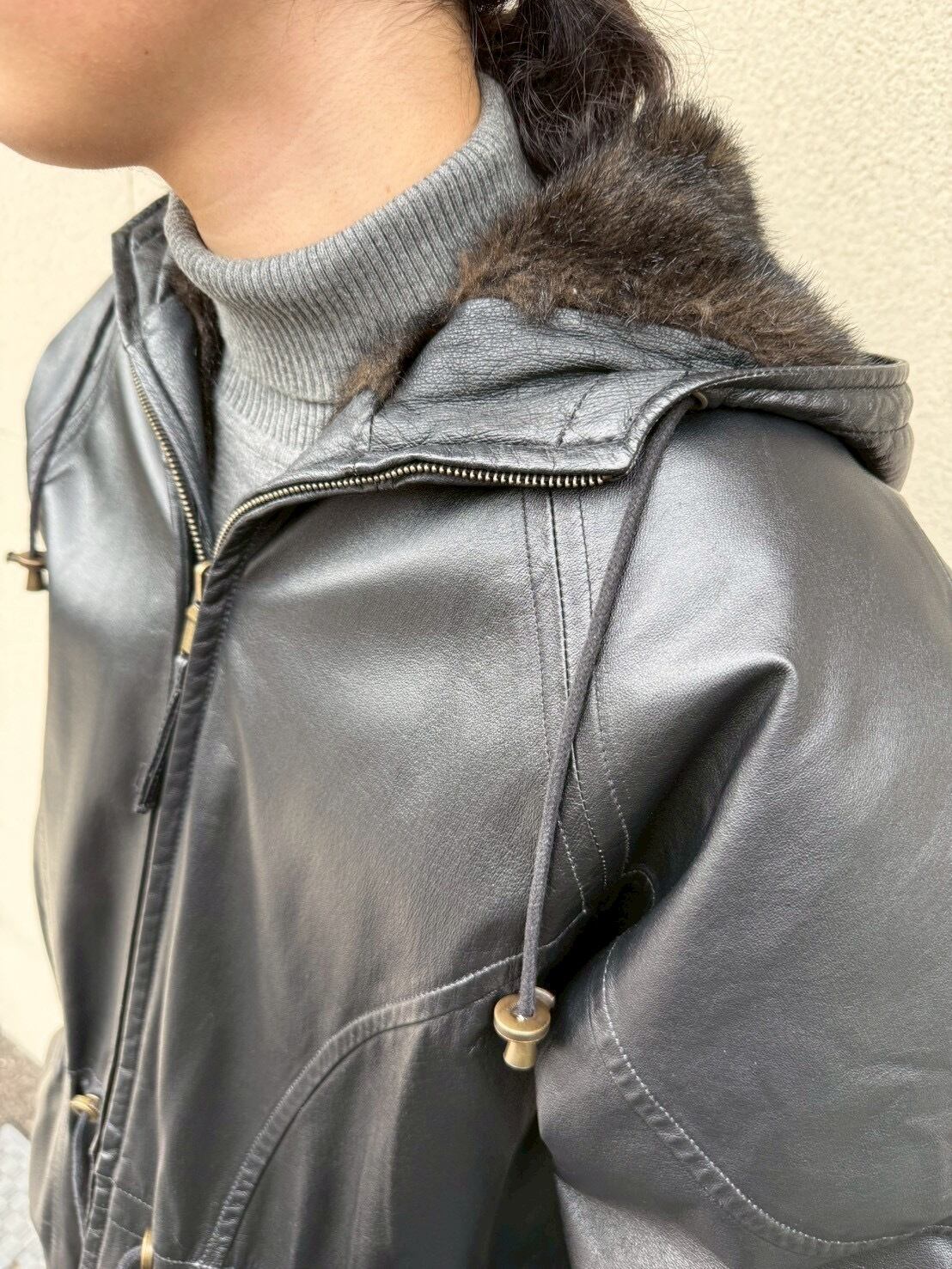 レザーのロングジャケットと トレンドのフェイクファージャケット。どちらもお洒落に活躍する最強なアイテム!大きめなフードも付き、機能性とファッション性を兼ね備えたリバーシブルアウターです。
