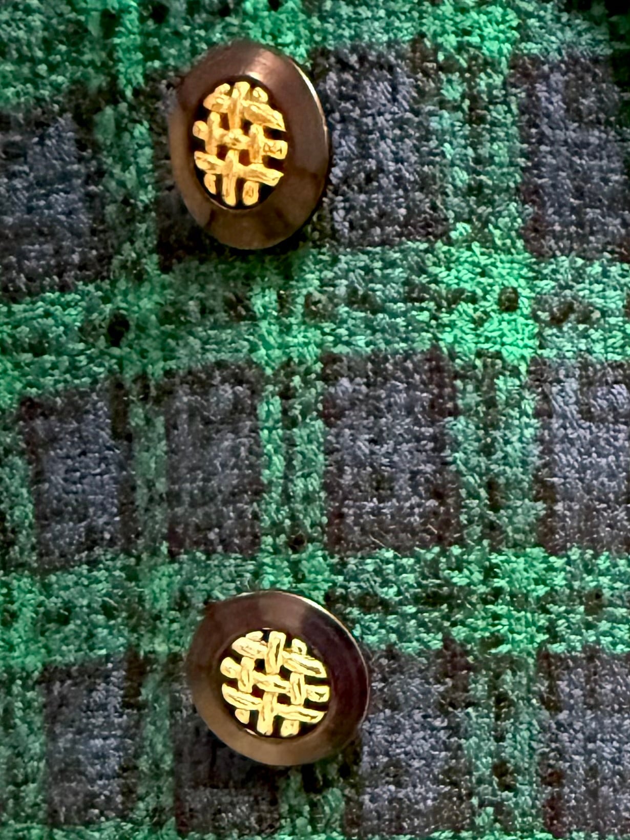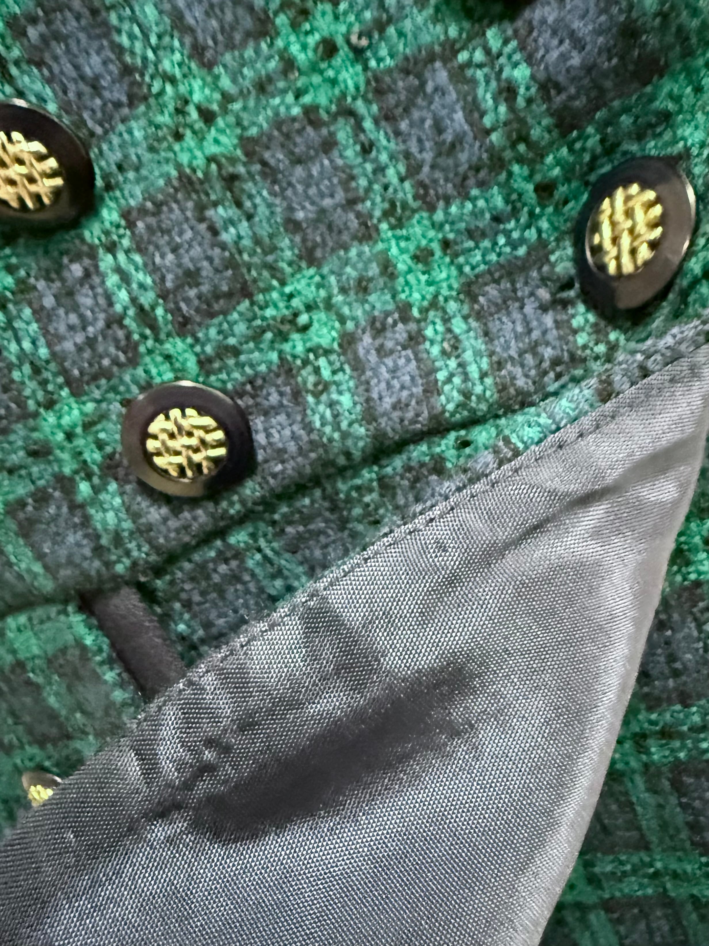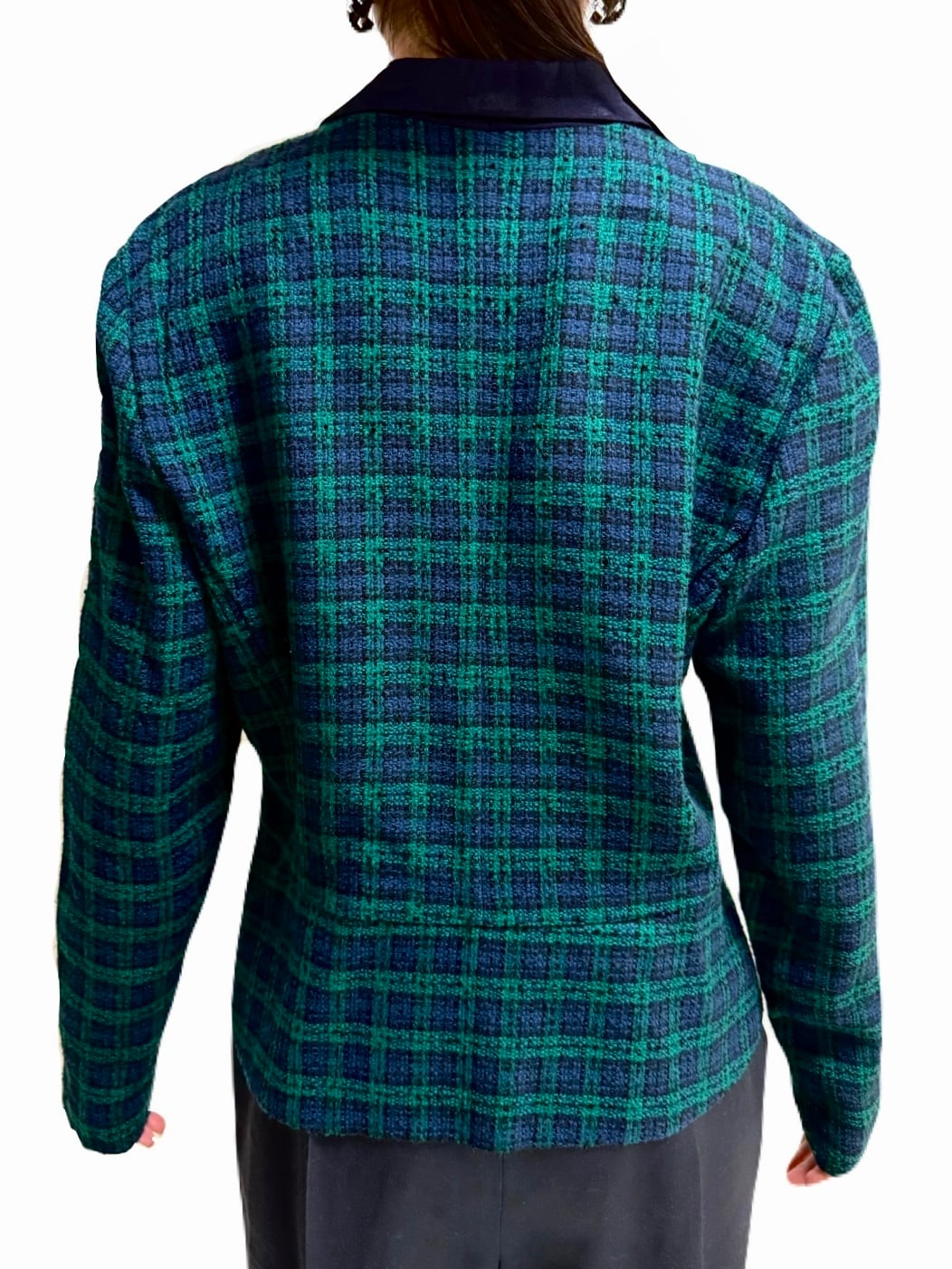 ブラックウォッチのタータンチェックに、ゴールドボタンが映える、80‘sヴィンテージジャケット。