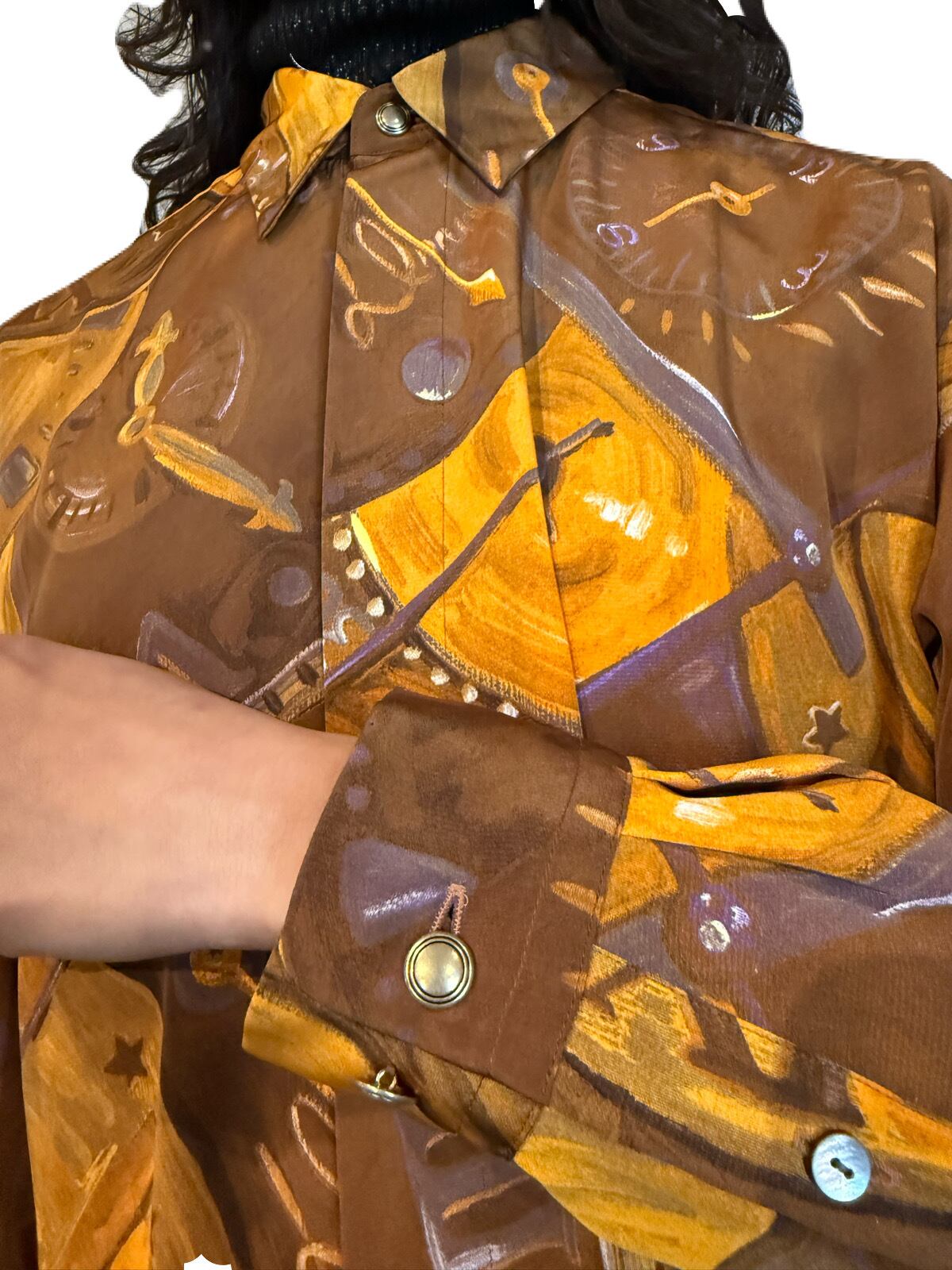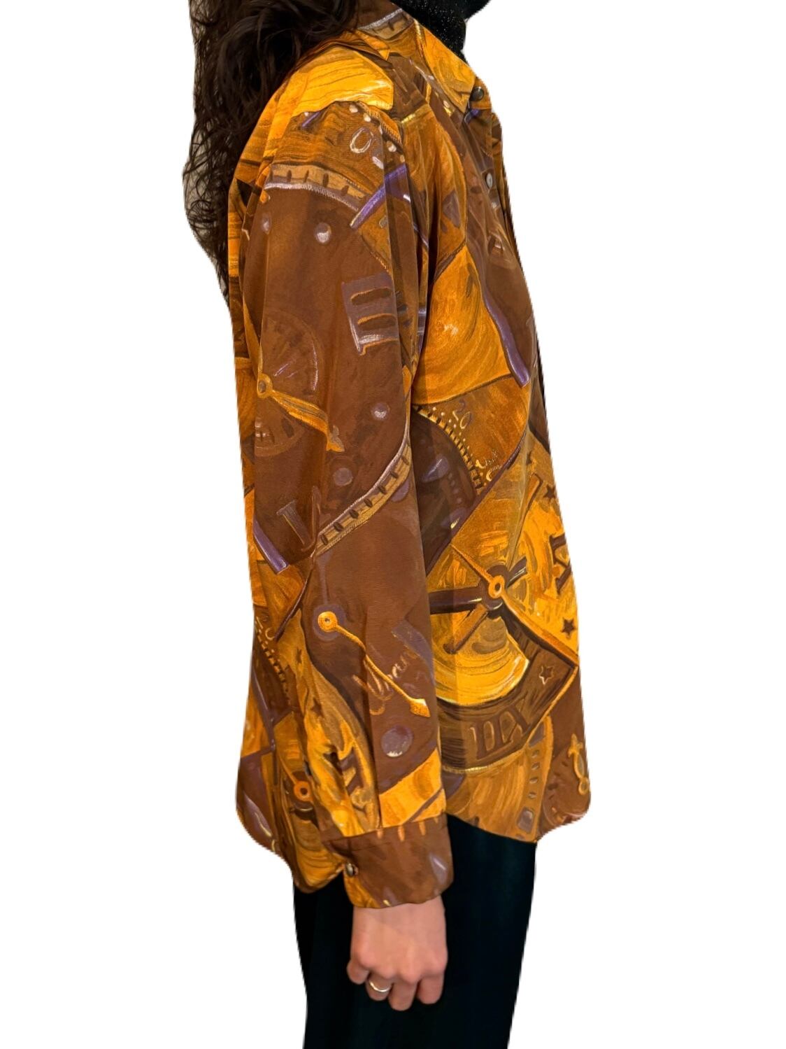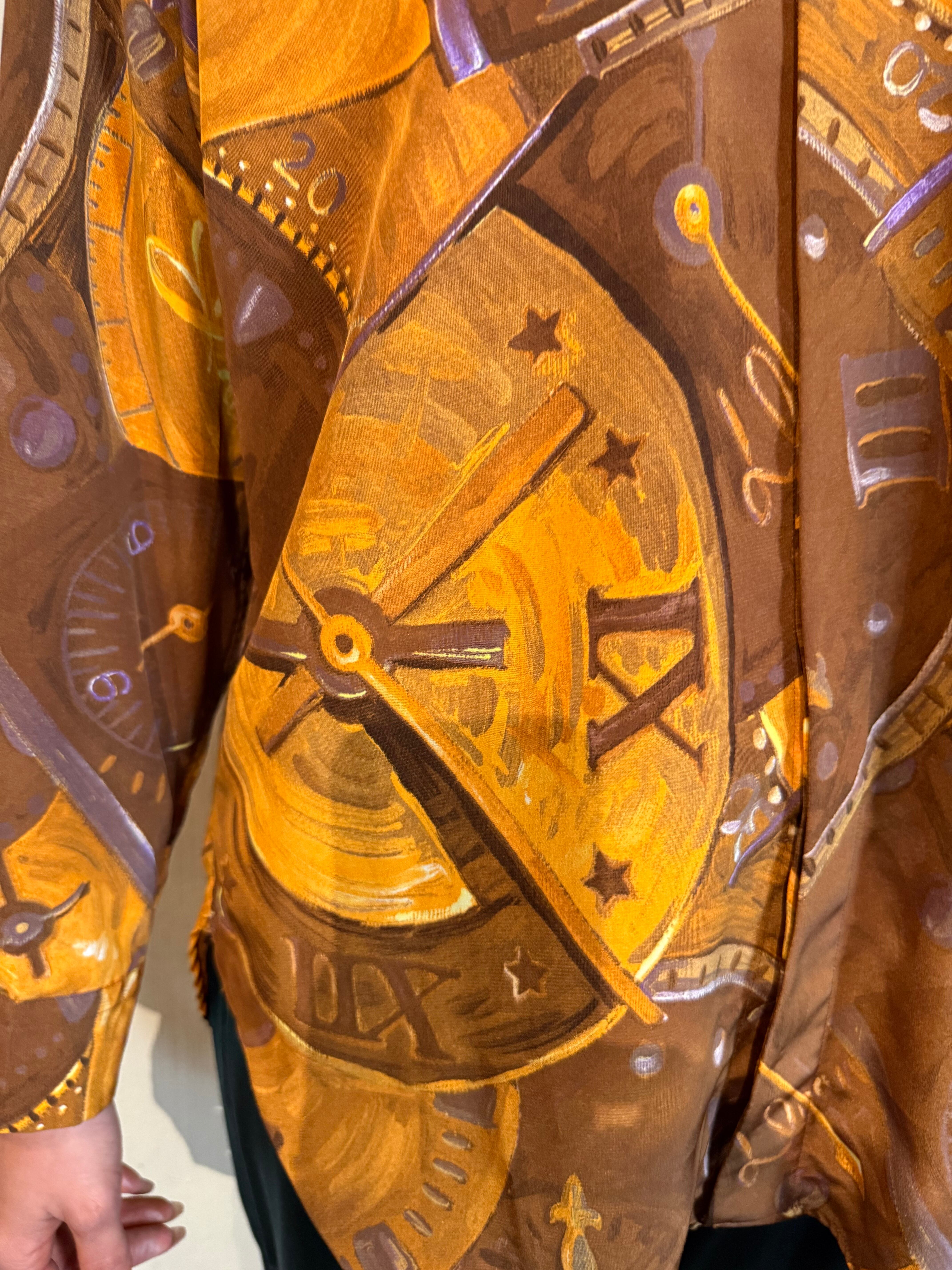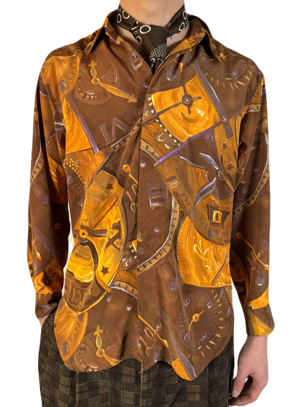 大胆な構図によるアーティスティックな時計柄。ファンタジックさを感じさせる 星やローマ数字の文字盤が素敵なヴィンテージシャツ。