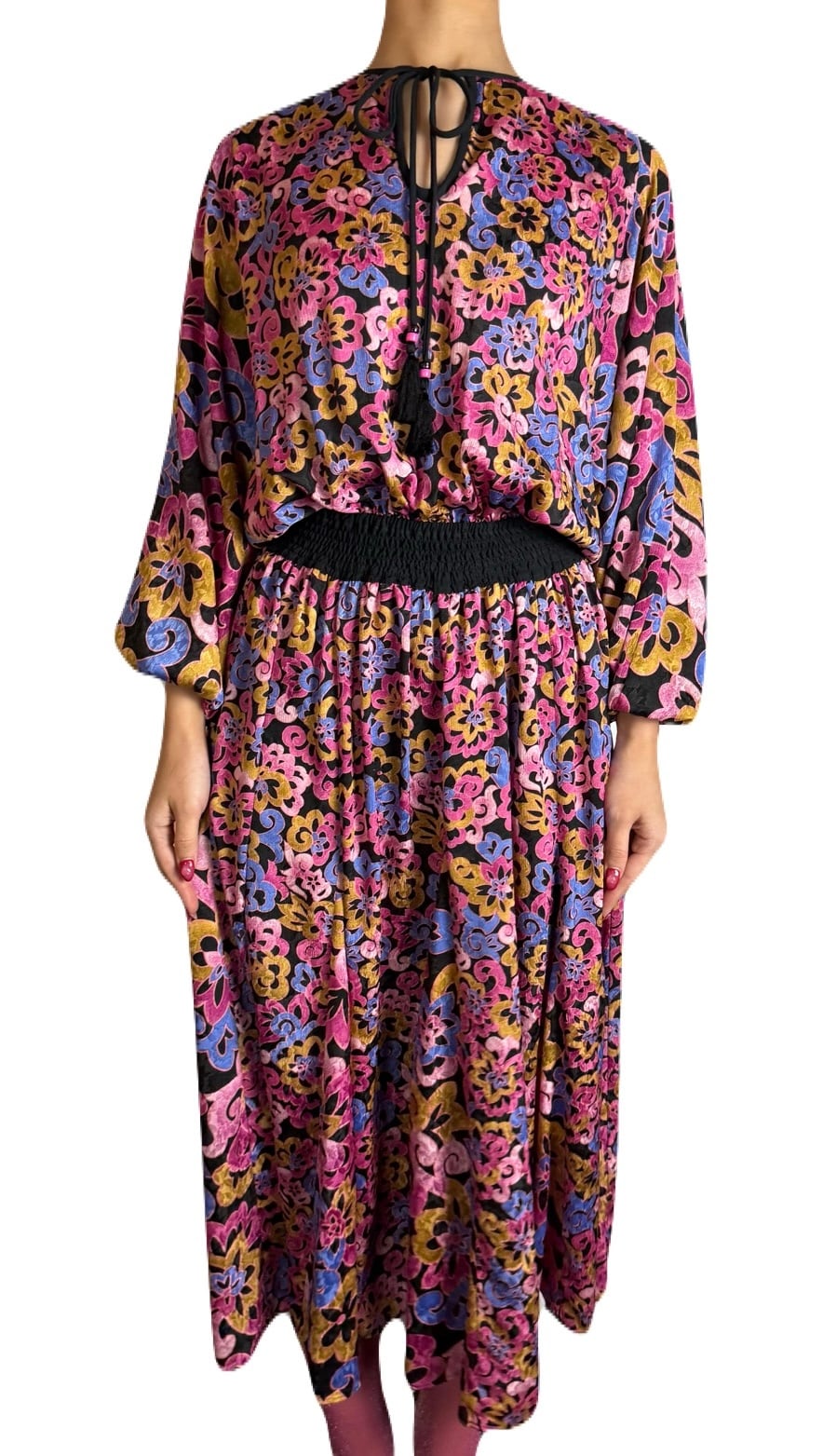 シグニチャーのタッセル、ドルマンスリーブの丸みのあるシルエット、シャーリングで優しくブラウジングされたウエスト。ダイアンらしさが際立つシンプルデザインのワンピースです。