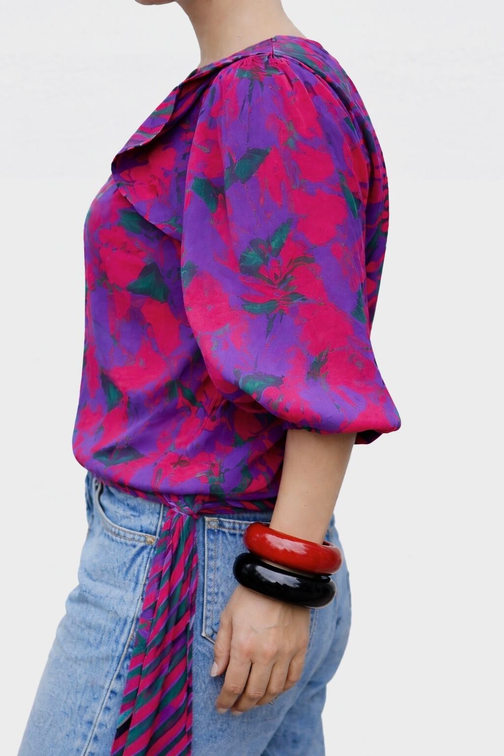 優しいバルーン袖と、ウエストの優しいブラウジングは、ナチュラルでフェミニンなシルエットをつくります。