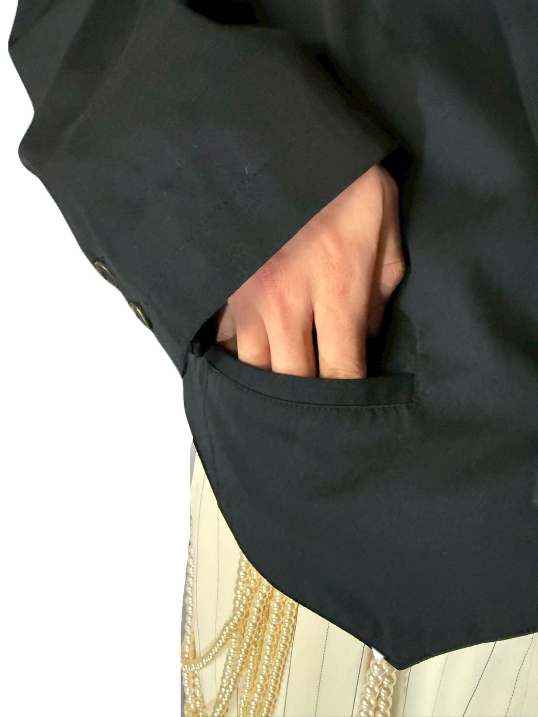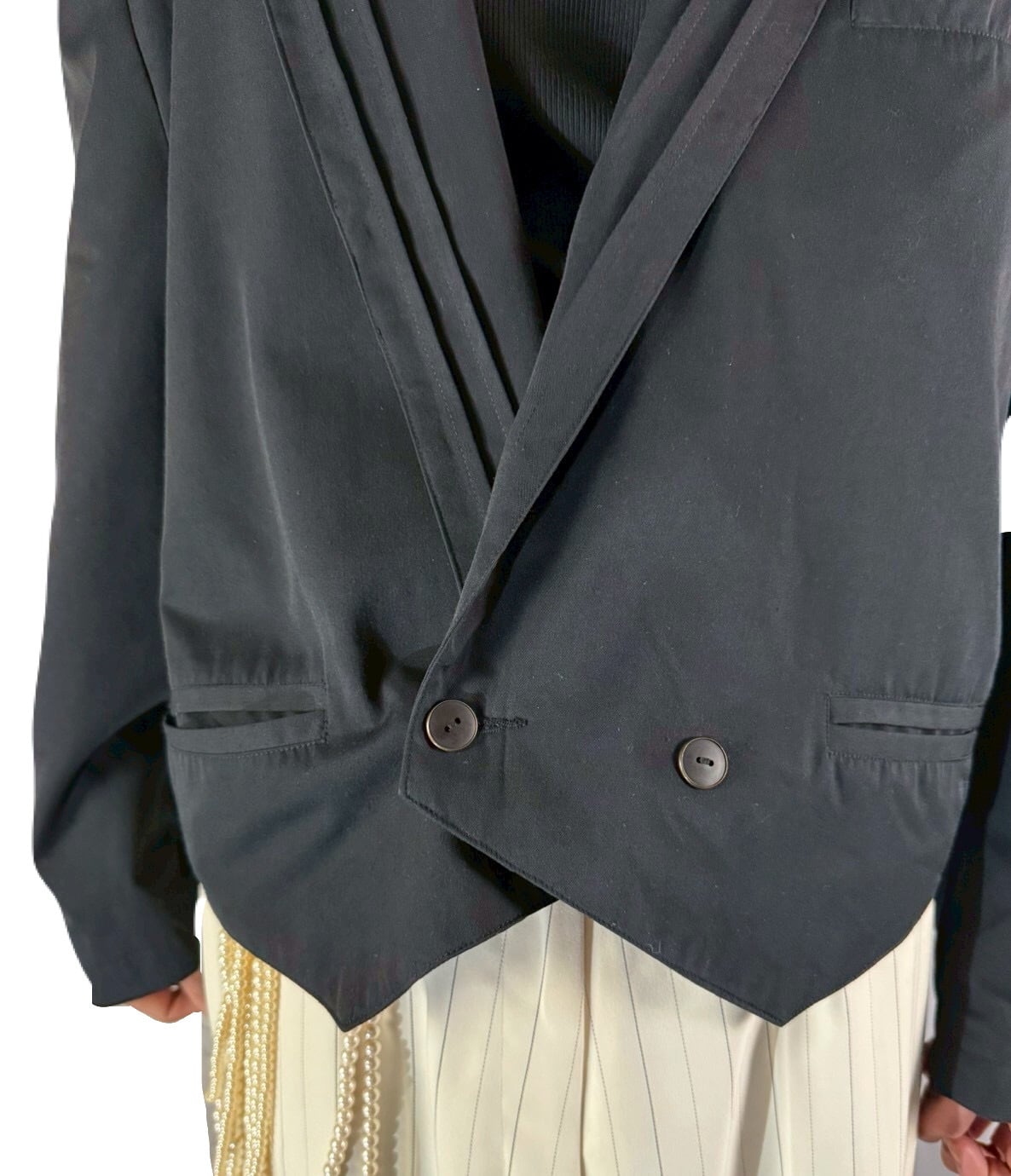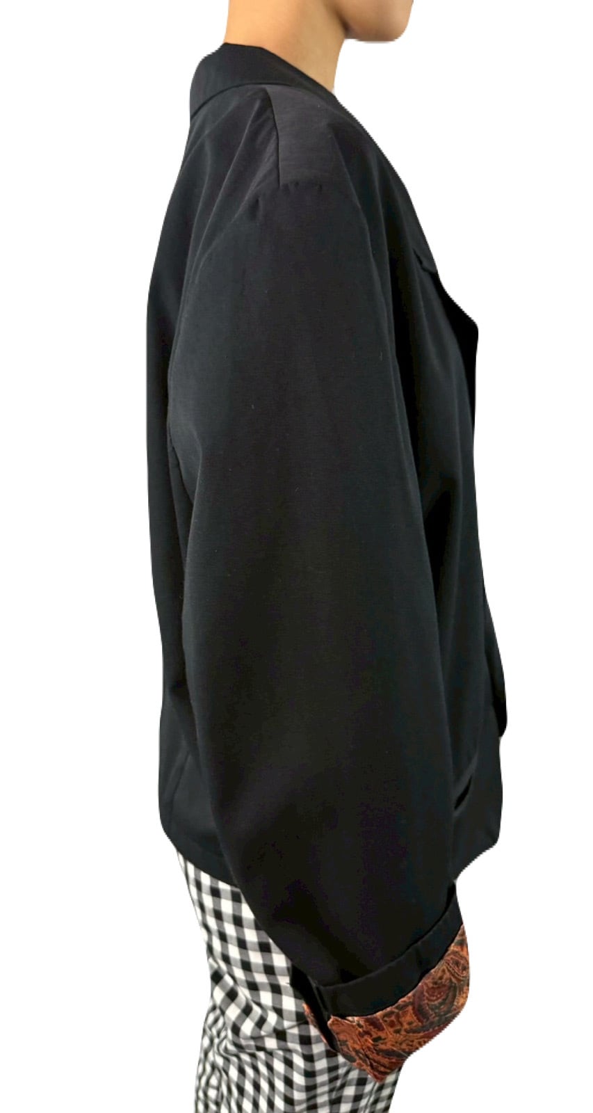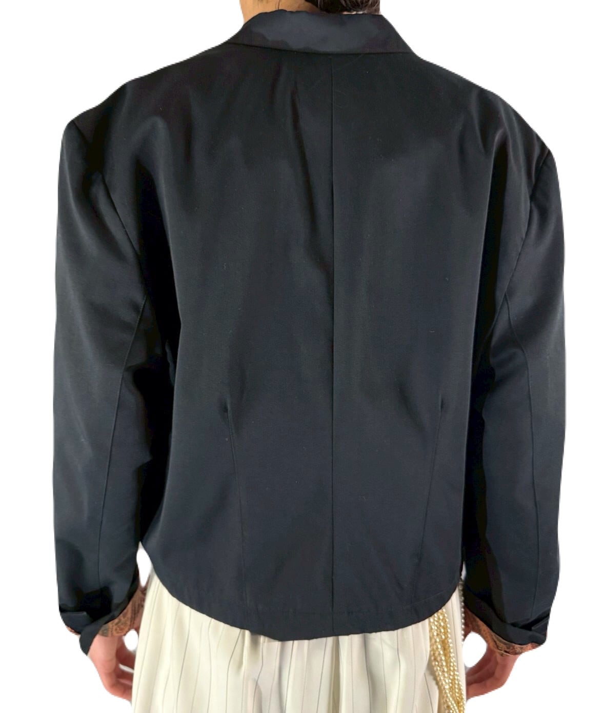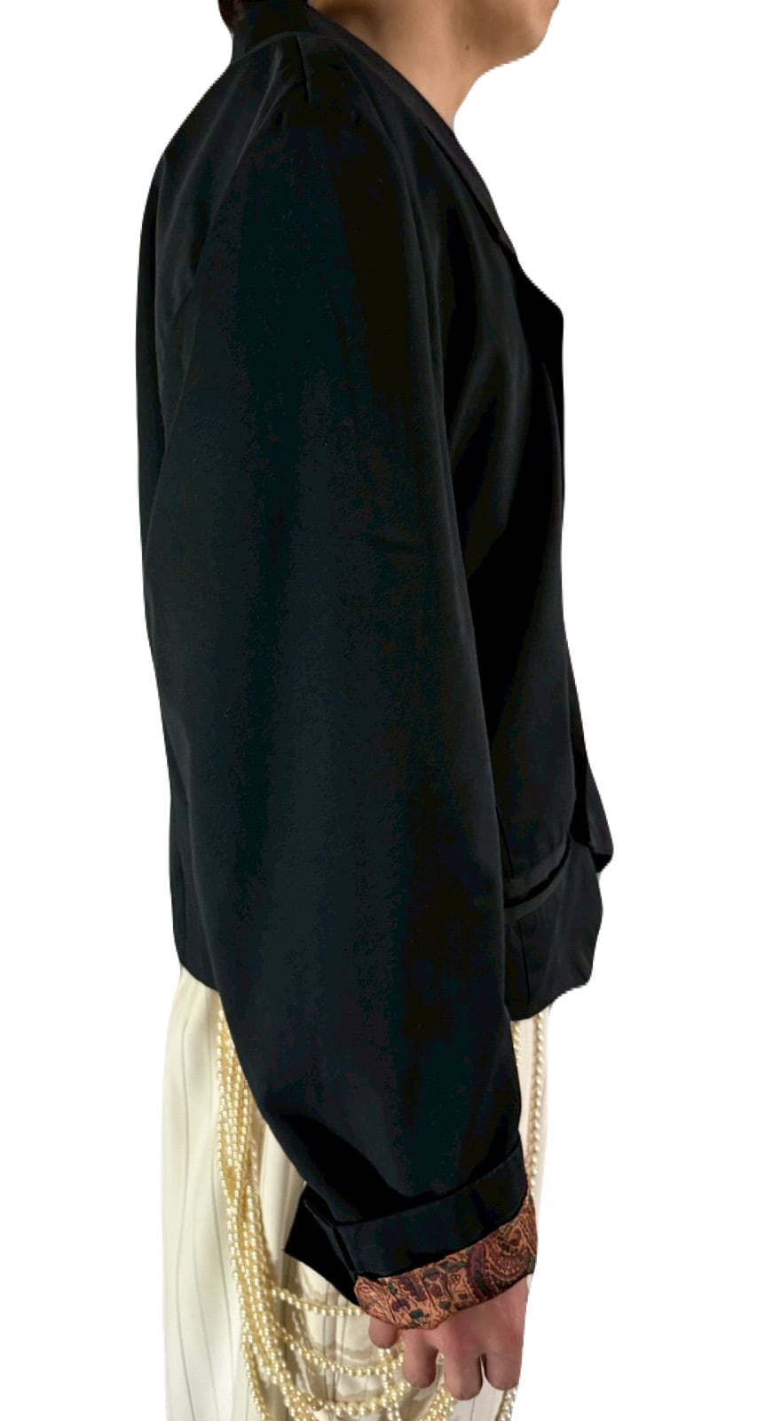 クラシックなスペンサージャケットからインスパイアされた、カジュアルブラックショートジャケット。