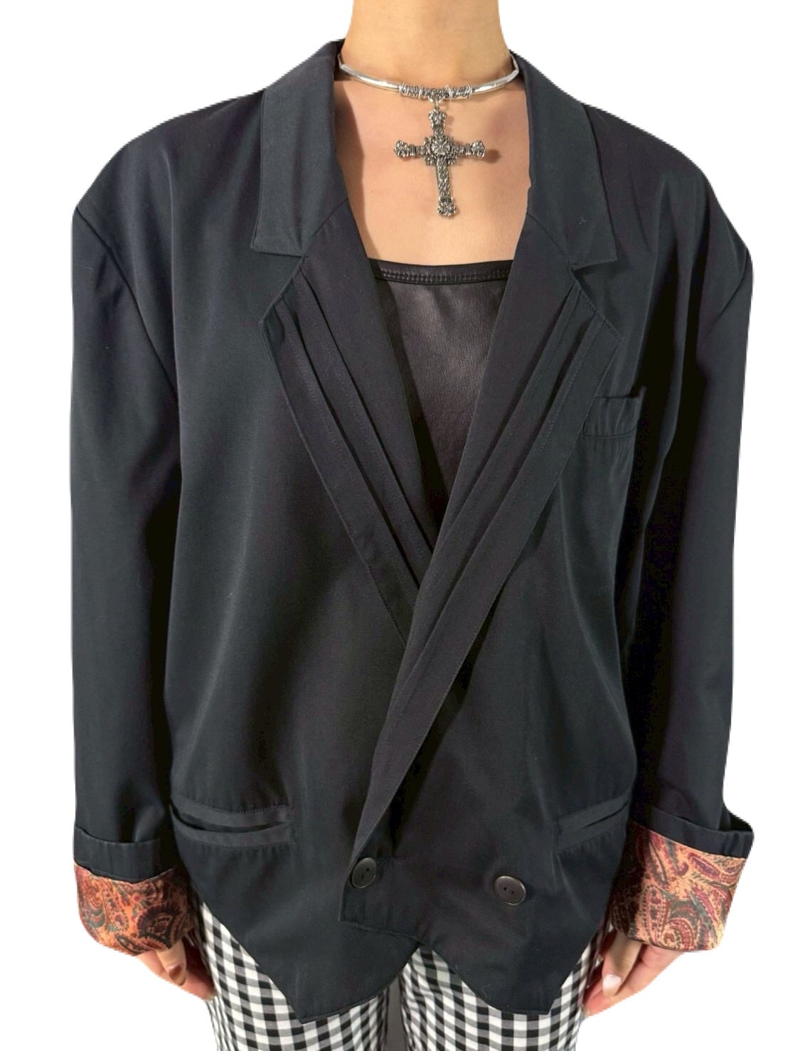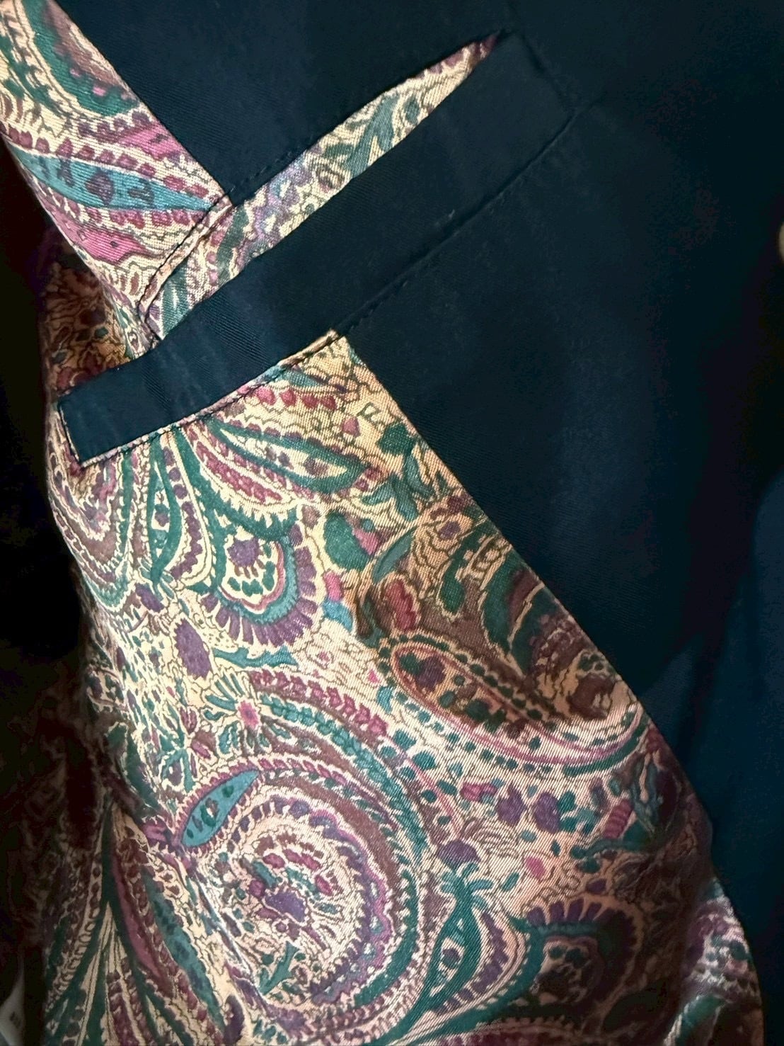 随所にクラシックさを感じさせるこちらは、裏地がペイズリーだったりと、細部までお洒落なポイントが溢れています。あえて袖口を折り、ペイズリーを見せて着用するのもおススメです。