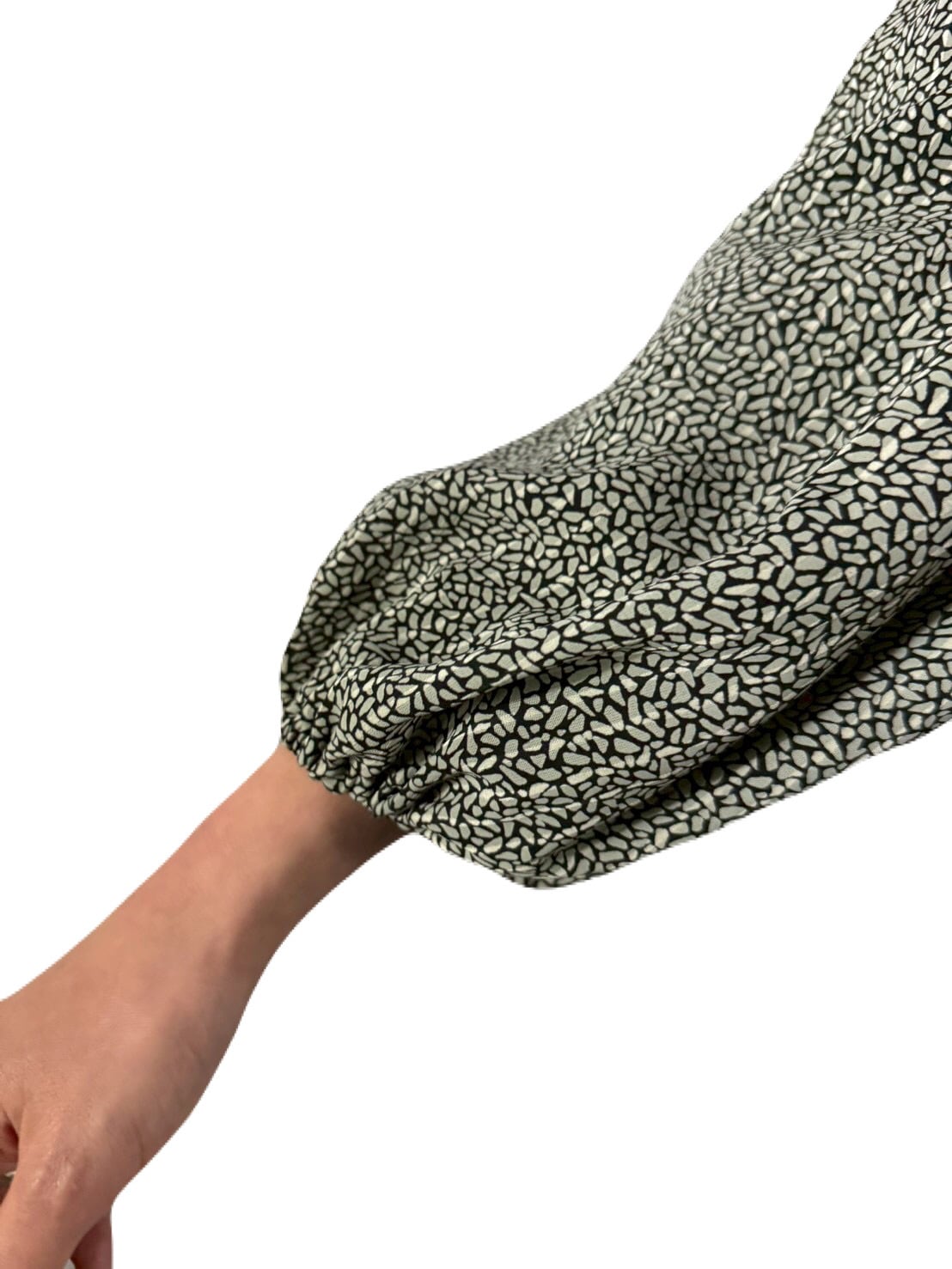 モノトーンのジオメトリック柄にピンストライプがさりげなく織り込まれ、奥行きのあるテキスタイルデザイン。