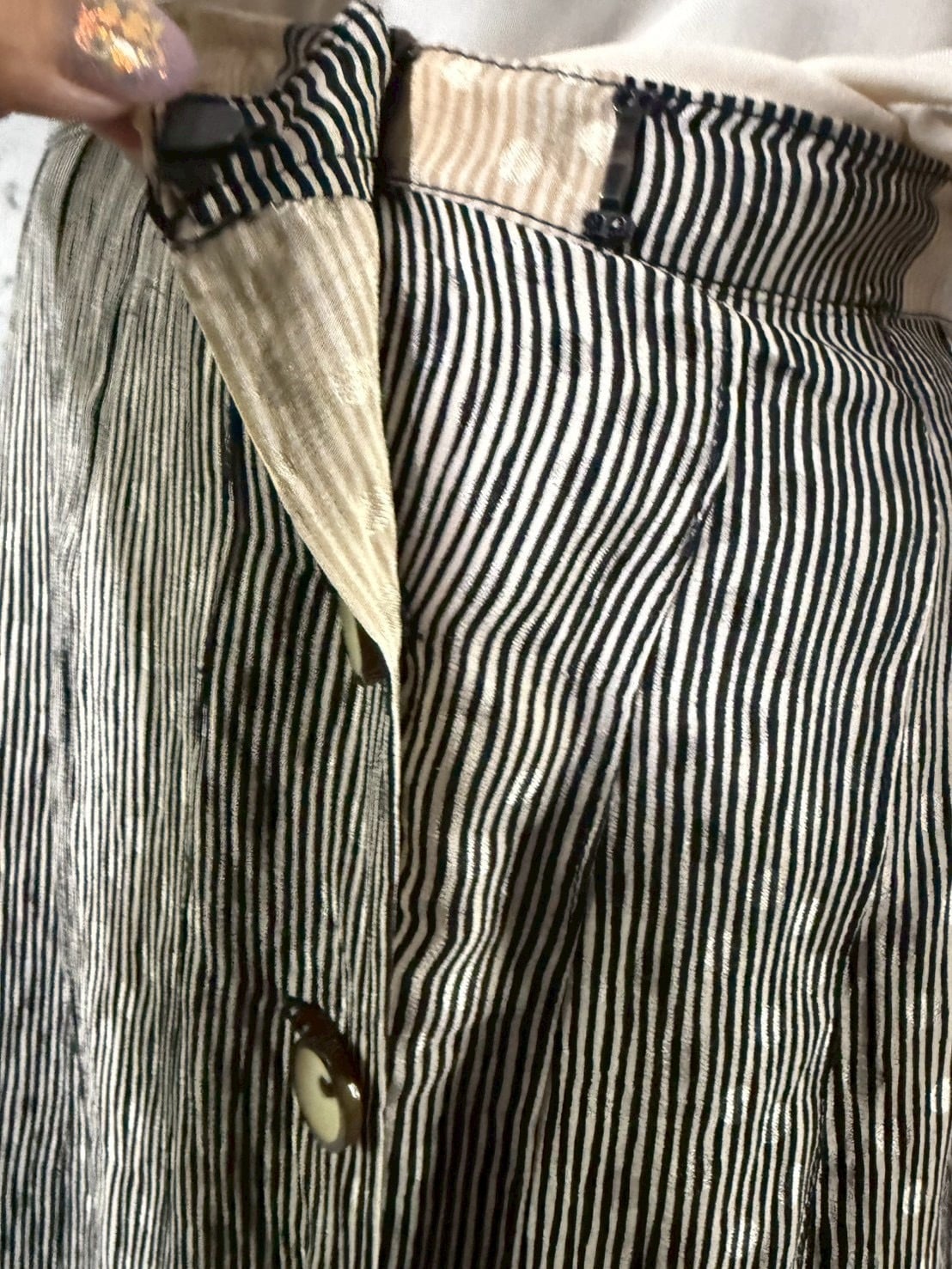 ピンストライプ シルクプリーツスカート