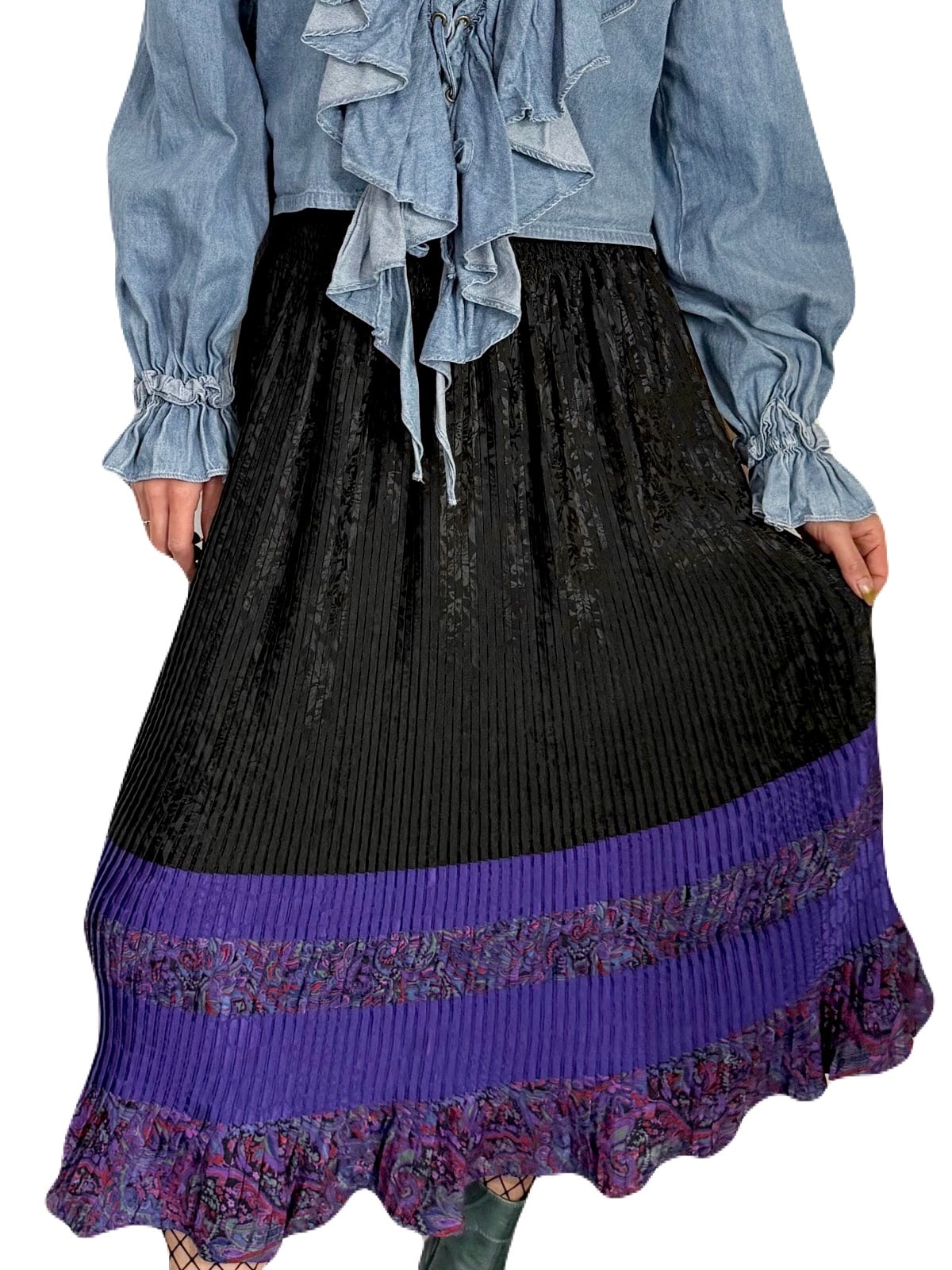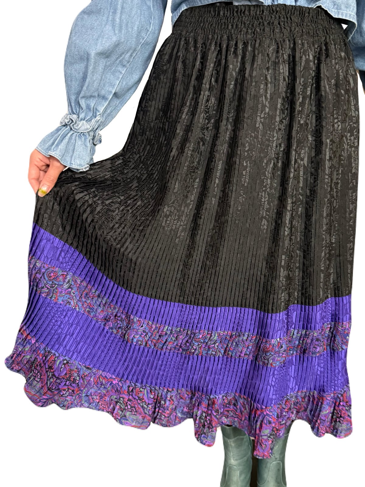 Diane Freis ブラックxパープル プリーツスカート