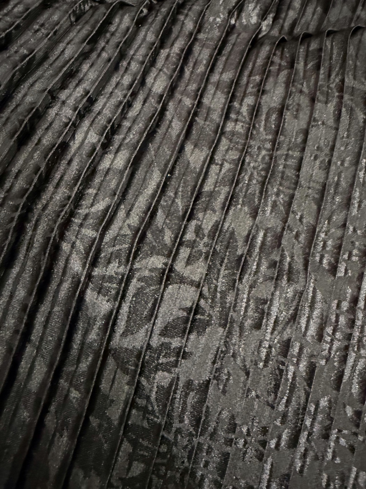 キリッとしたブラックとパープル。エキゾチックさのあるDiane Freisのプリーツスカート。