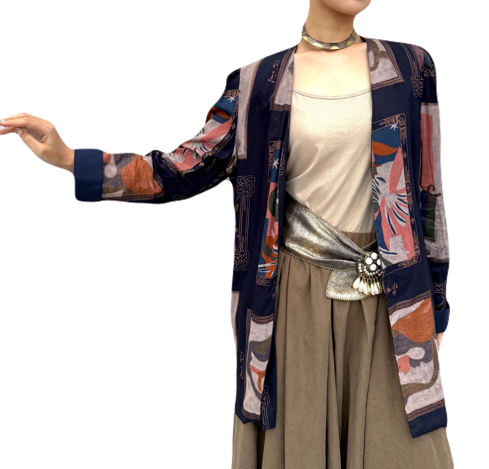 合わせのないオープンフロントですので、テキスタイルデザインを存分に楽しみながら着用いただけます。