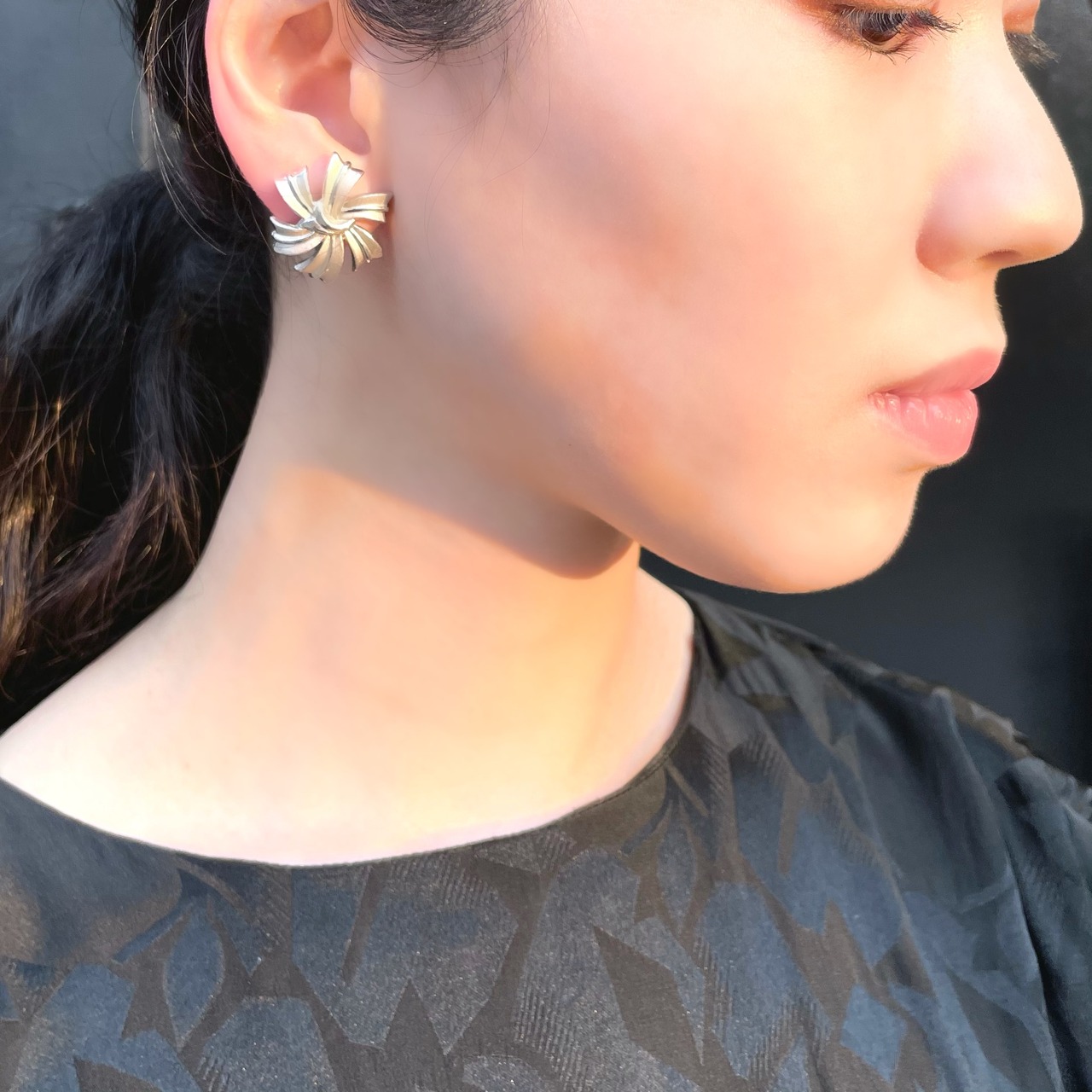 風車のような、リボンのような可愛らしいデザインのイヤリング。