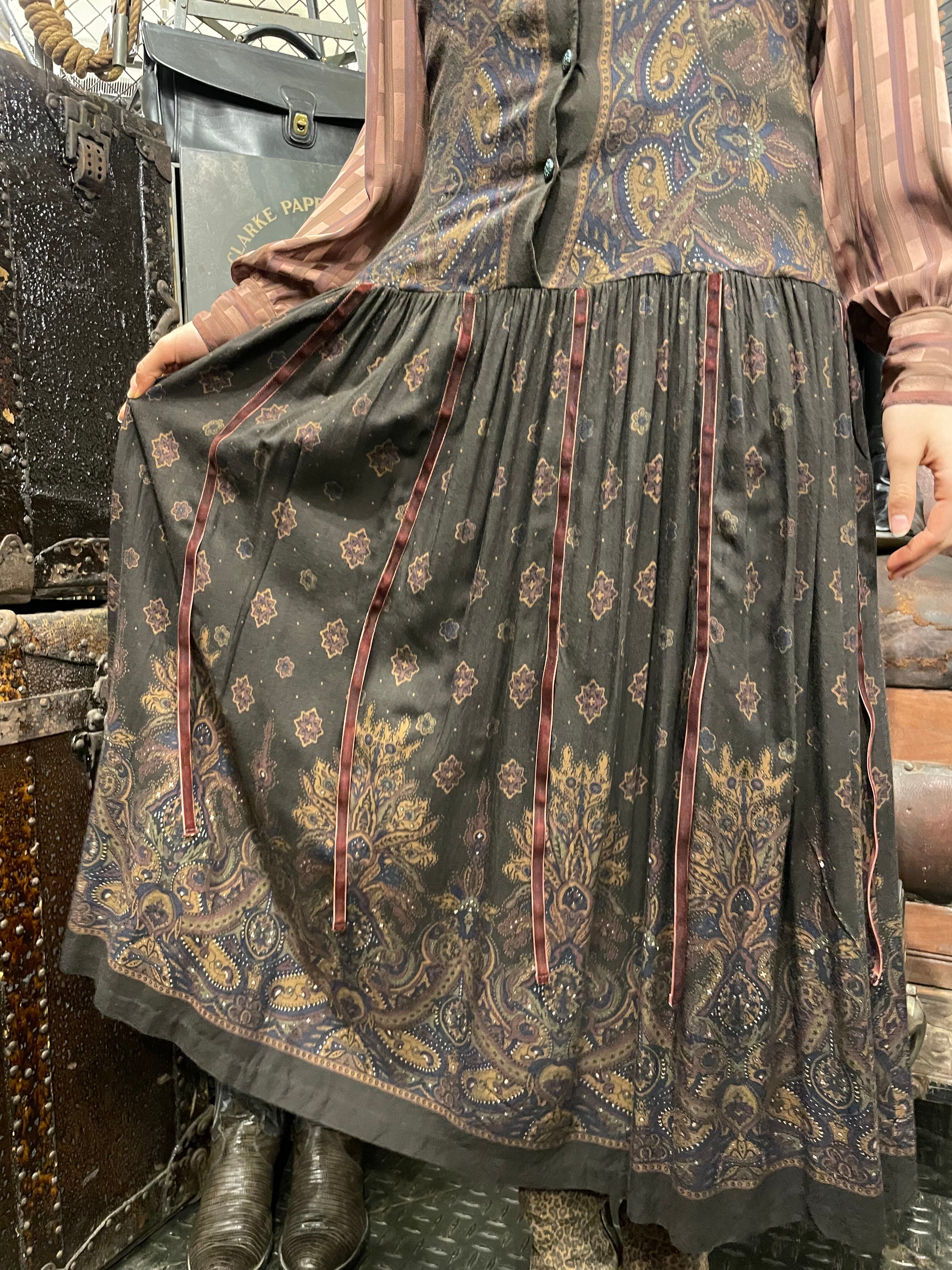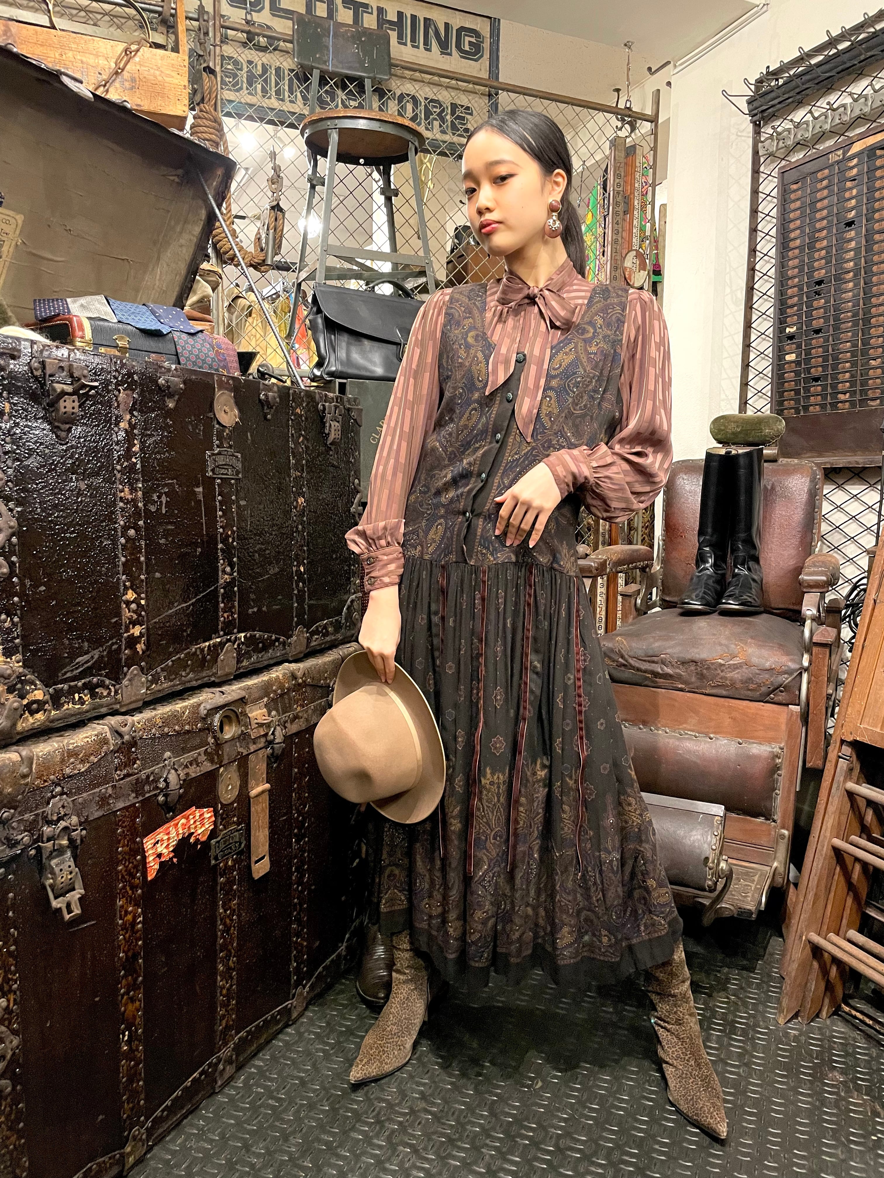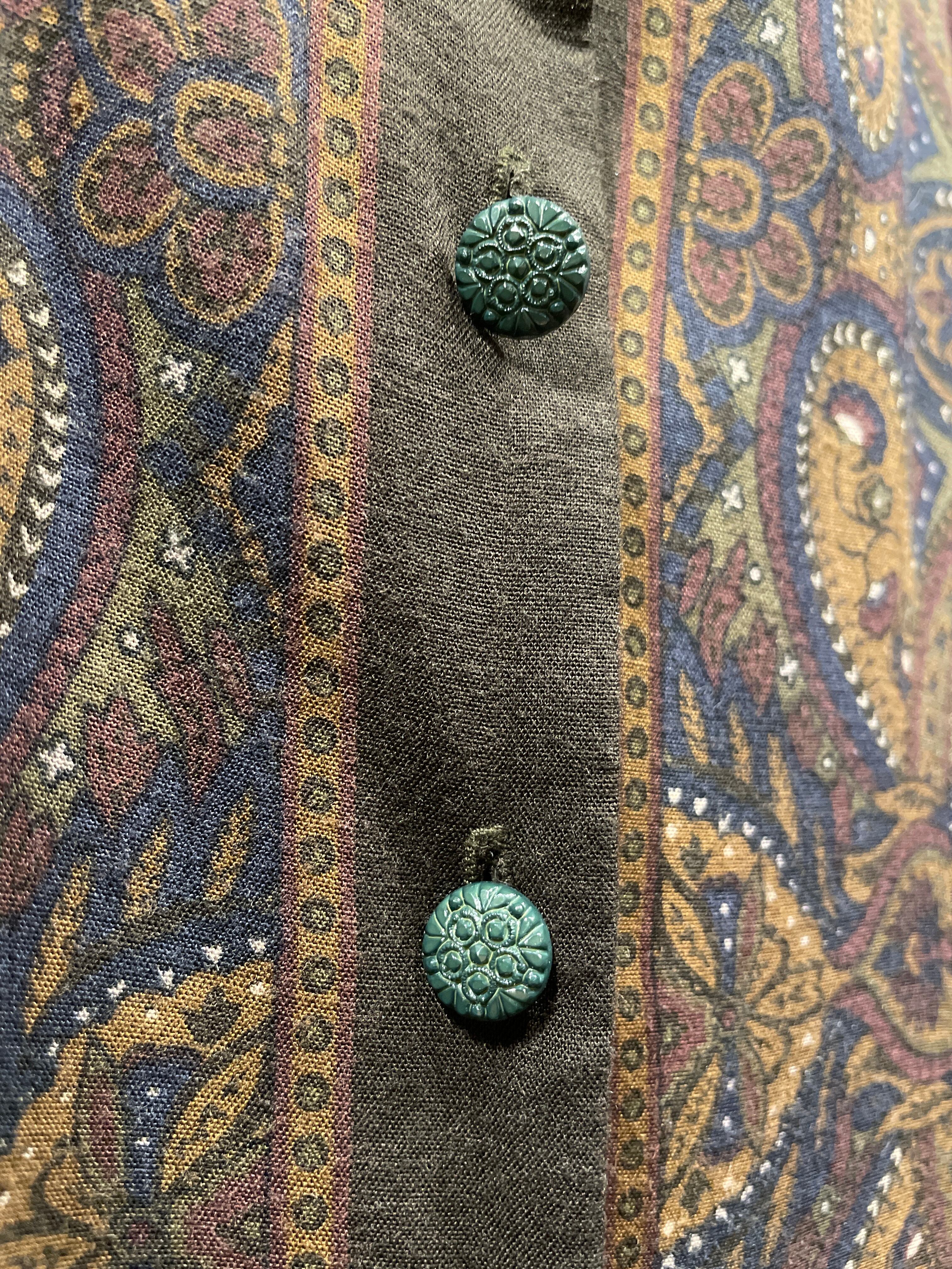総柄ペイズリー柄ではなく、身頃のフロントと、裾模様にペイズリーを配している為、メリハリのあるデザインに仕上げられています。
