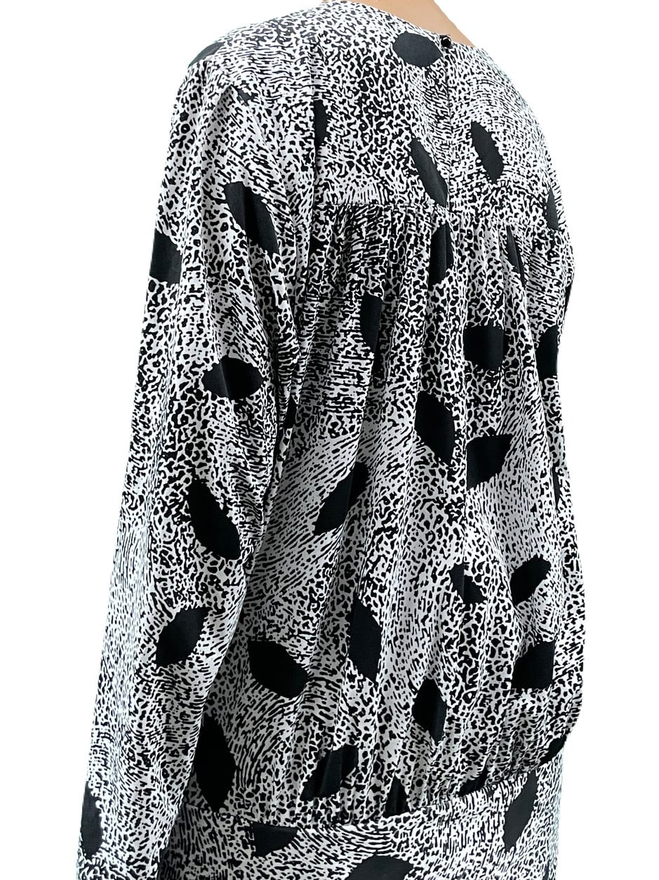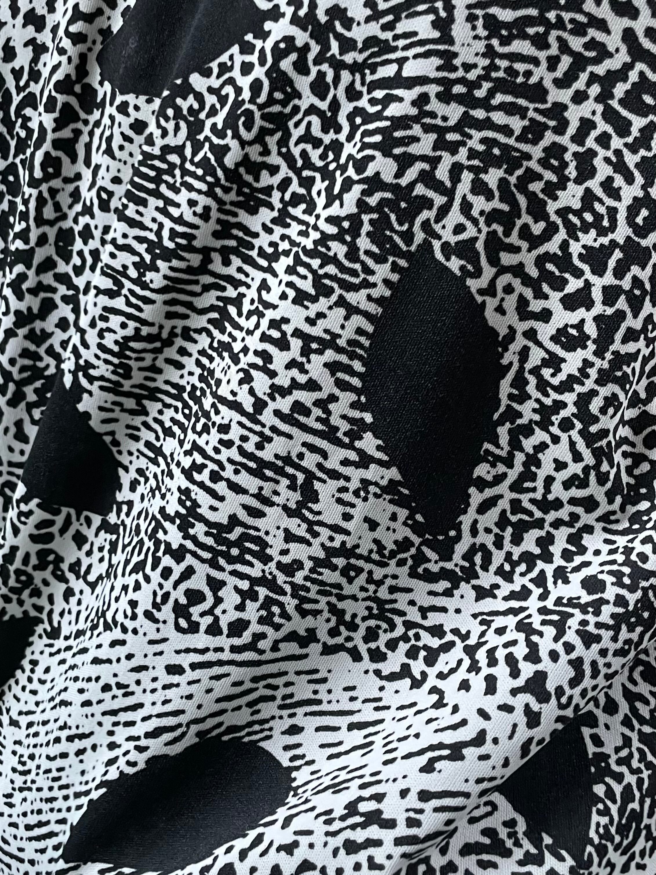 その細かな模様をベースにリーフ形のような…アニマルを意識したような ブラックの印象的なシェイプが散りばめられています。
