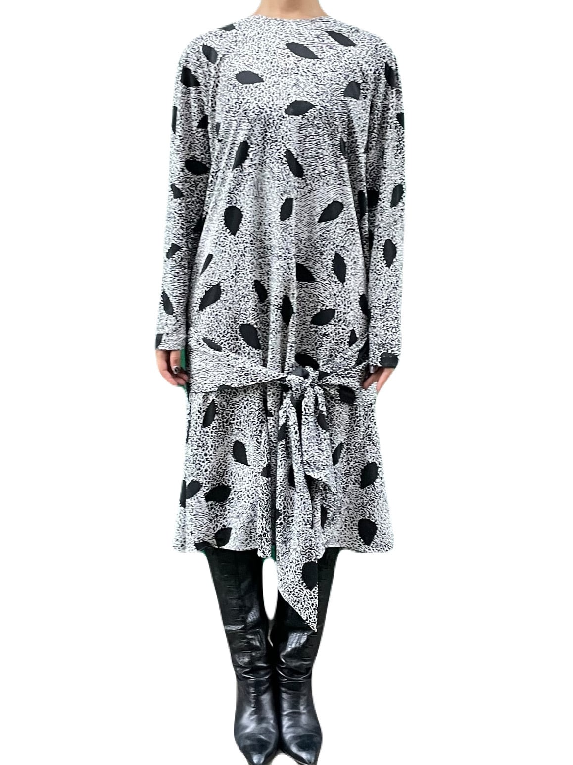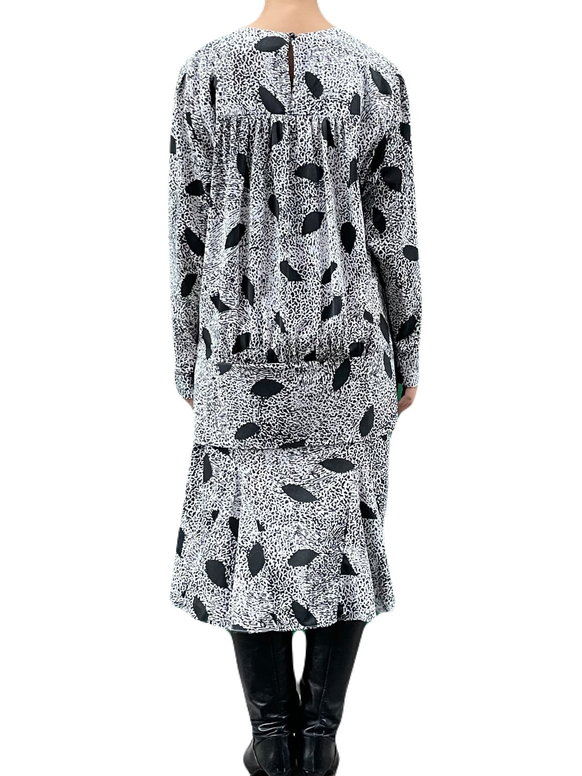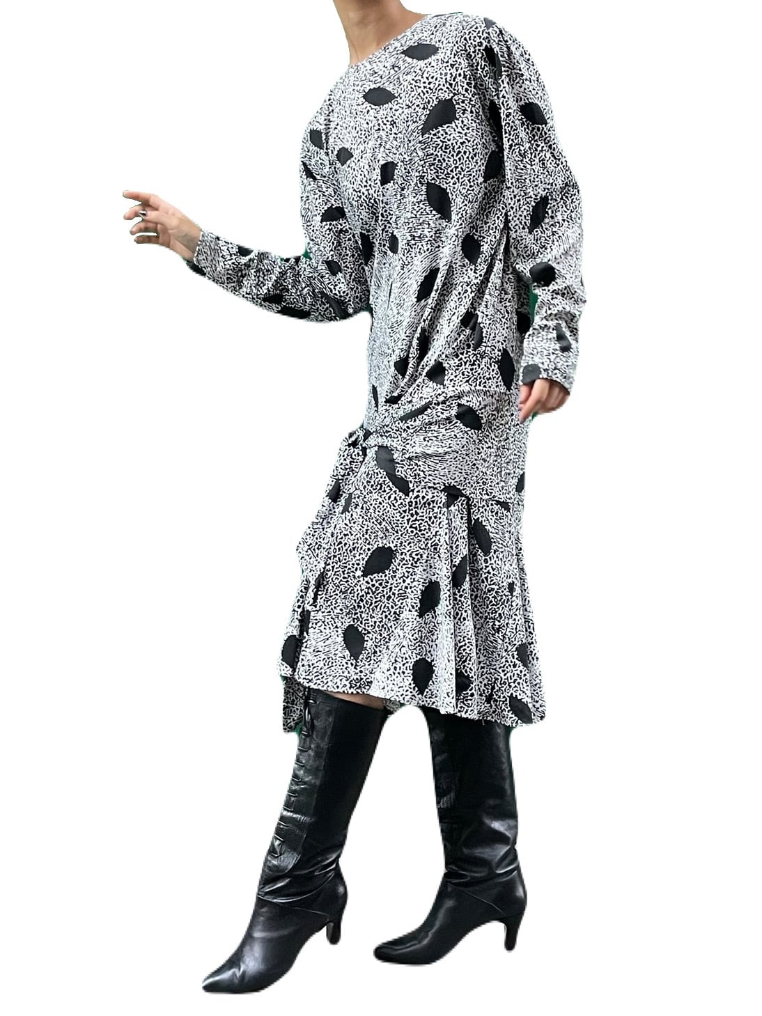 80’sヴィンテージならではの お洒落なフォルムのブラック&ホワイトのモノトーンワンピース。