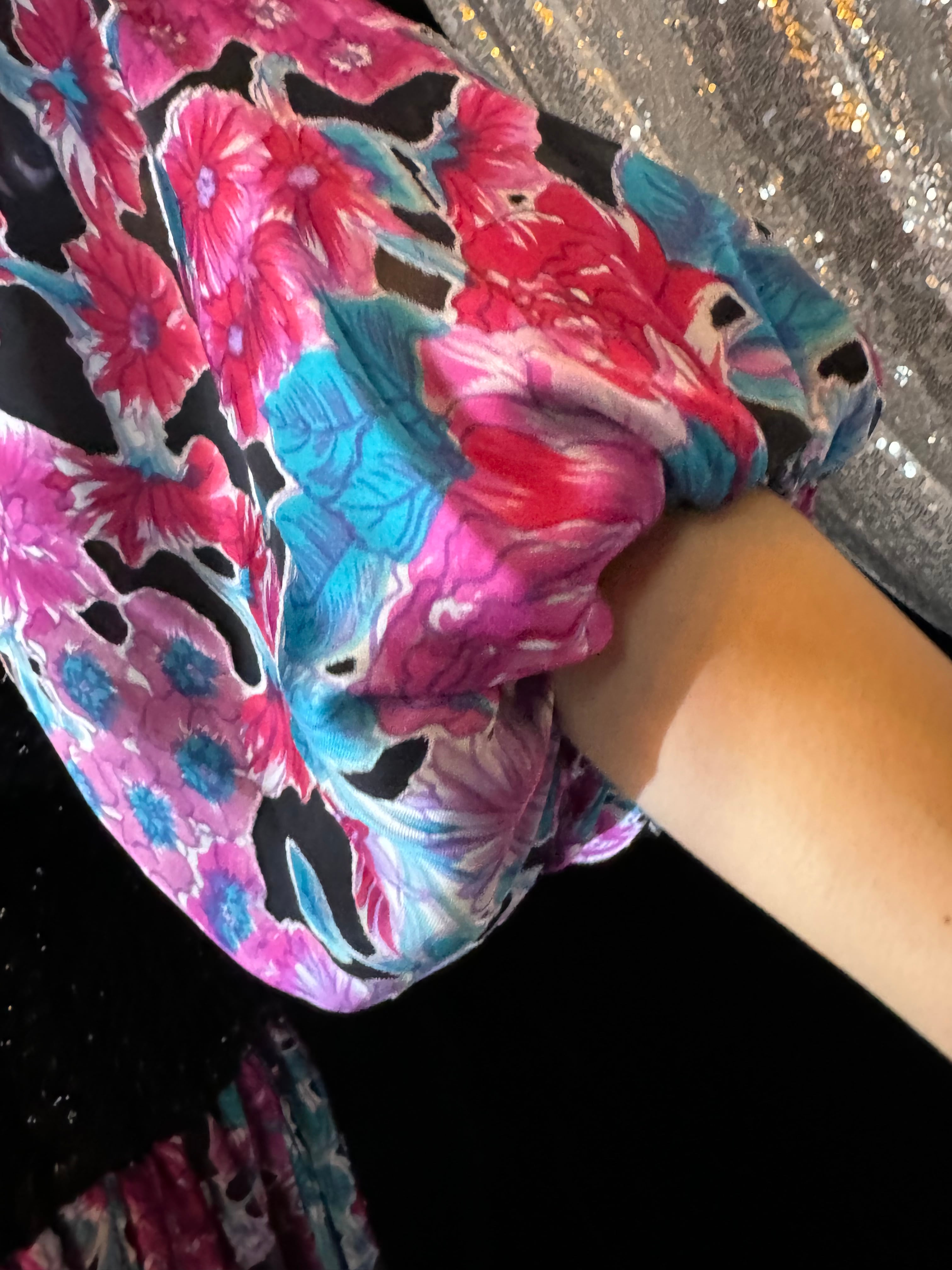 フラワープリント×ベロアのシックなデザイン。