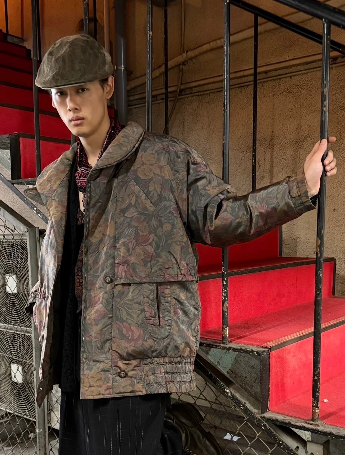アンティークフラワーがプリントされた希少なダウンブルゾン。