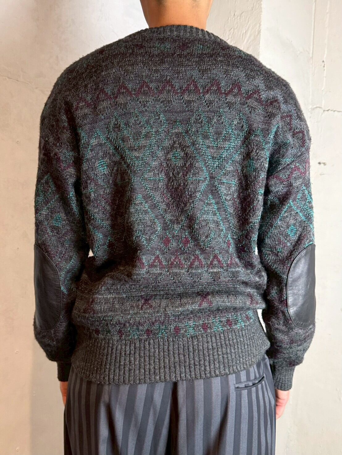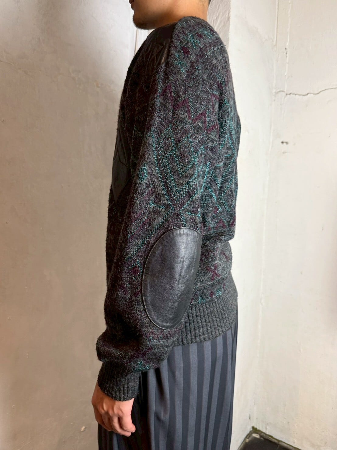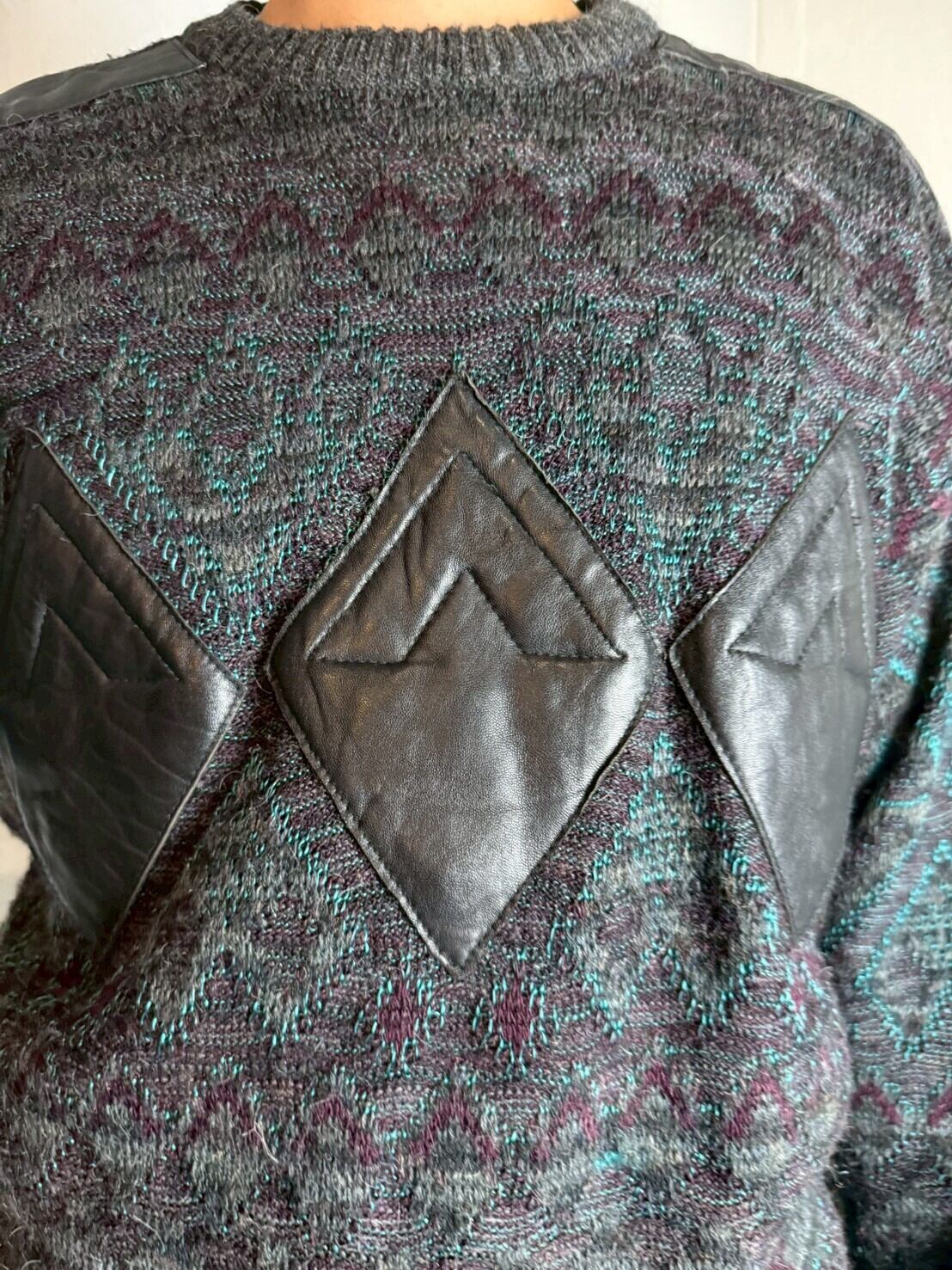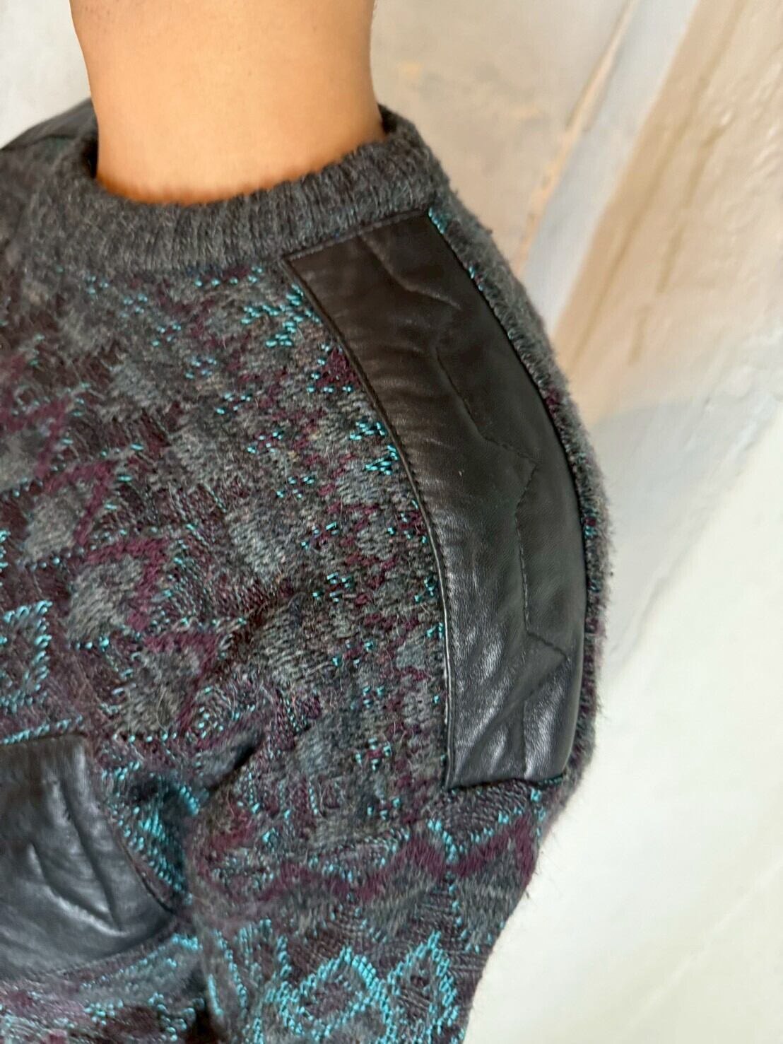 ジオメトリックレザーパッチセーター