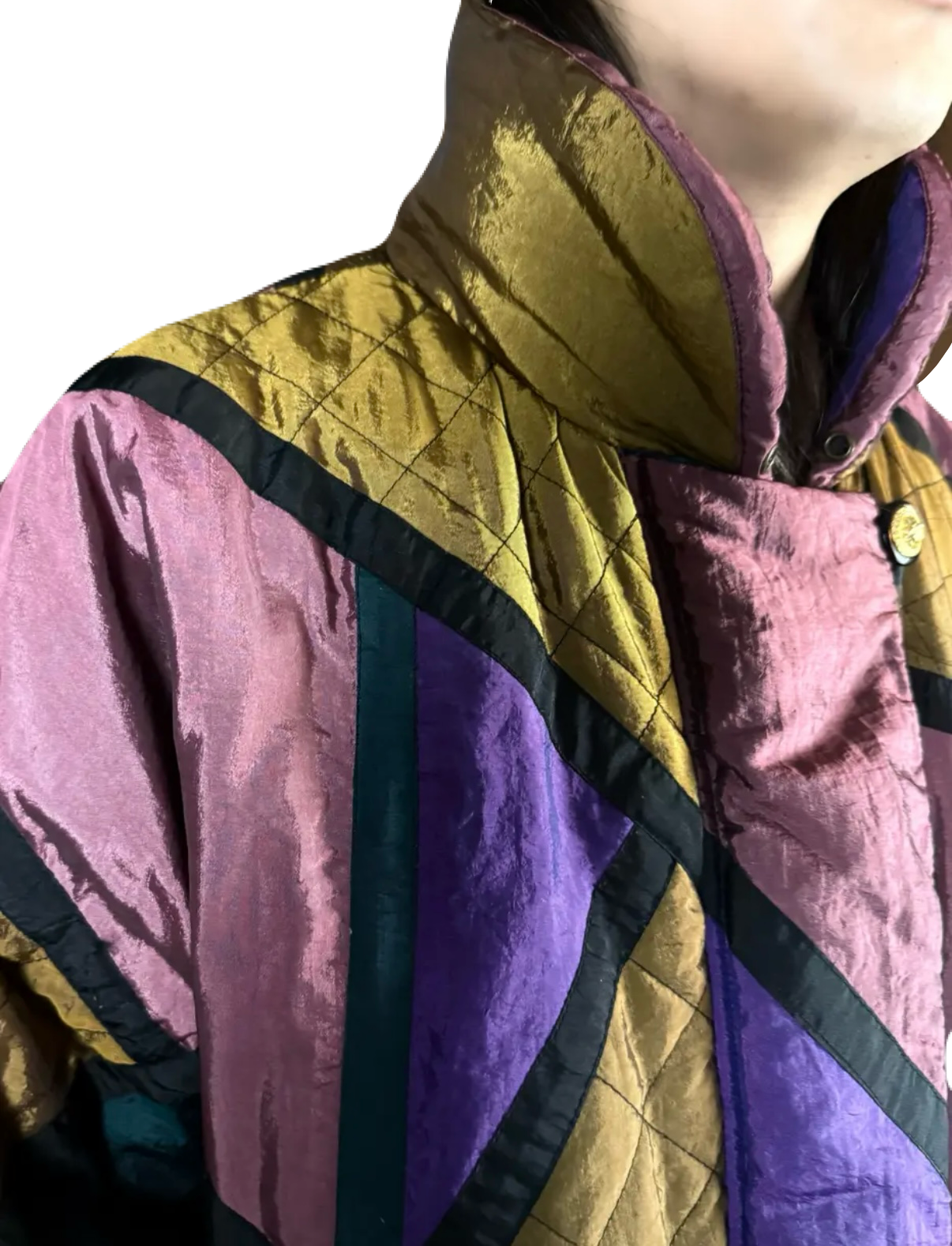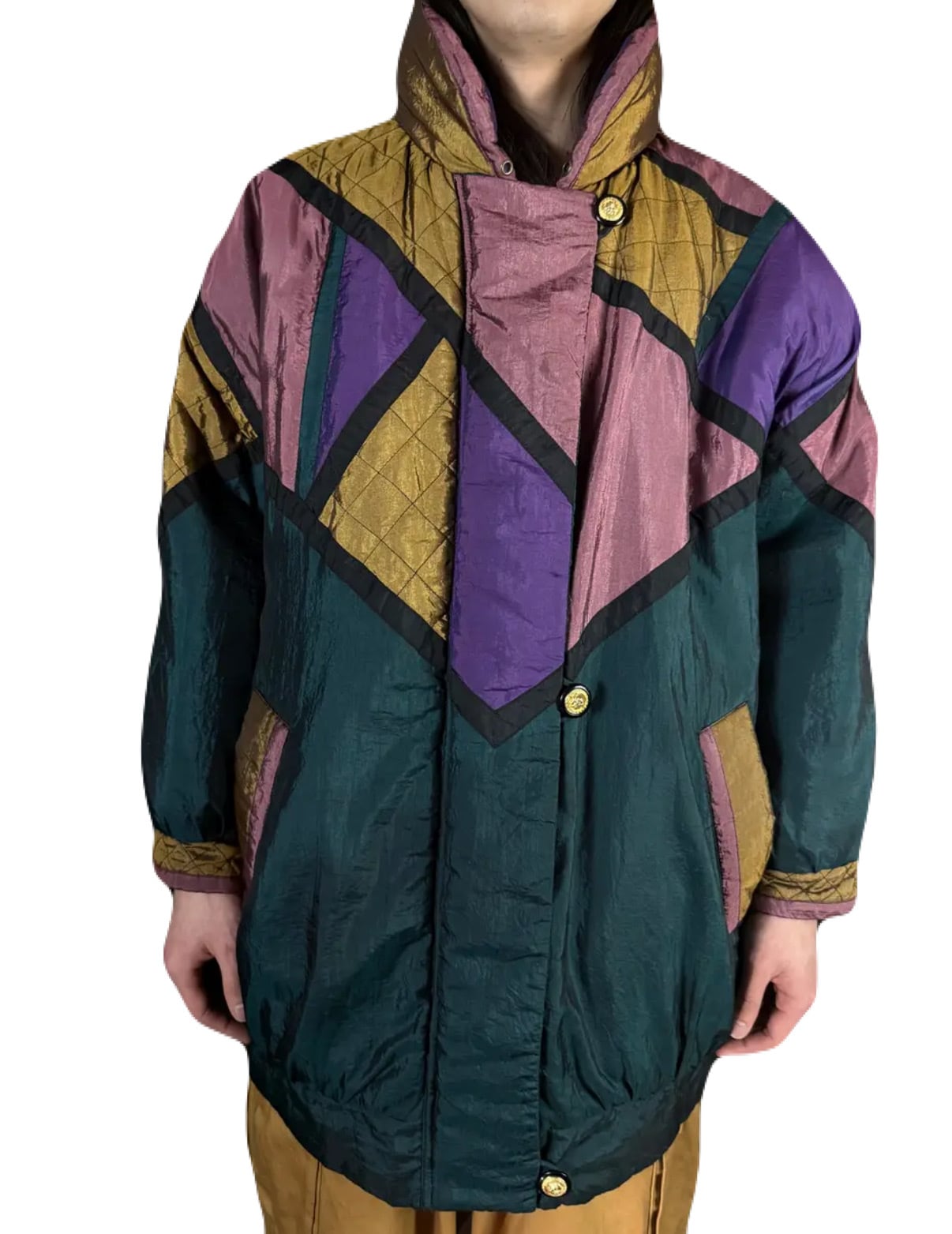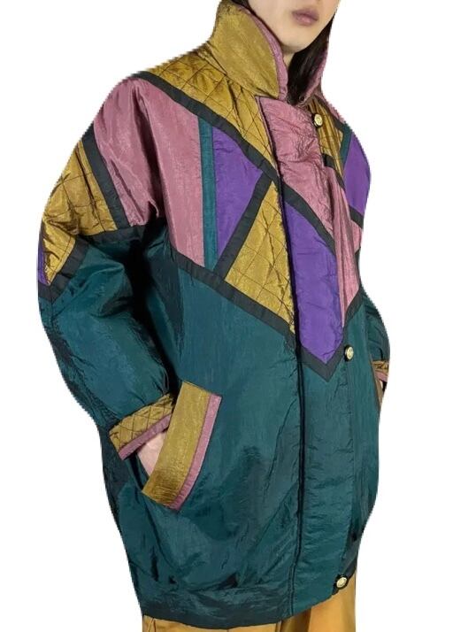 80’sらしさのある絶妙なカラーブロック。モダンアートを纏うような中綿入りロングブルゾン。