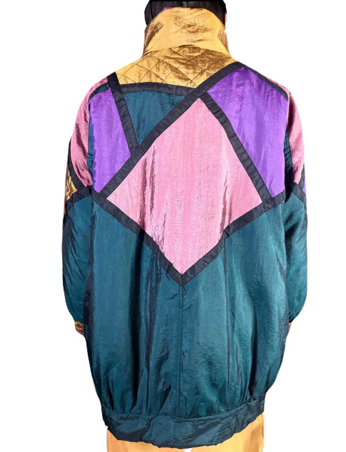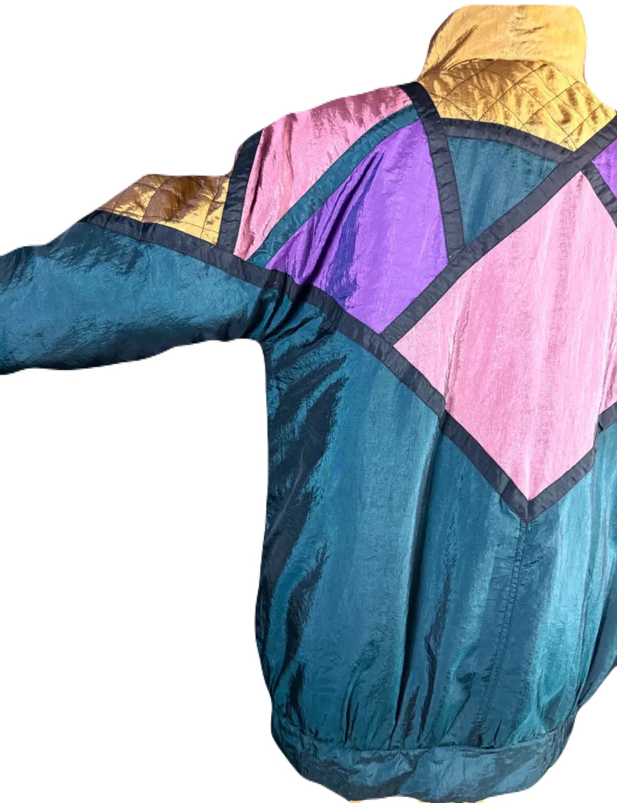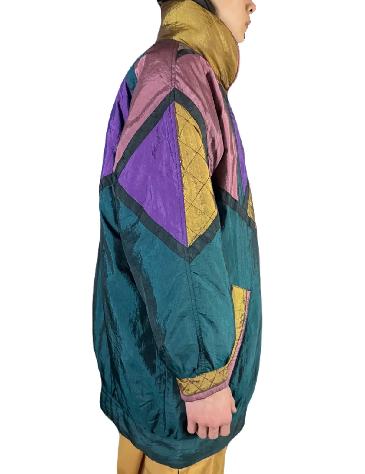 80’sらしさのある絶妙なカラーブロック。モダンアートを纏うような中綿入りロングブルゾン。